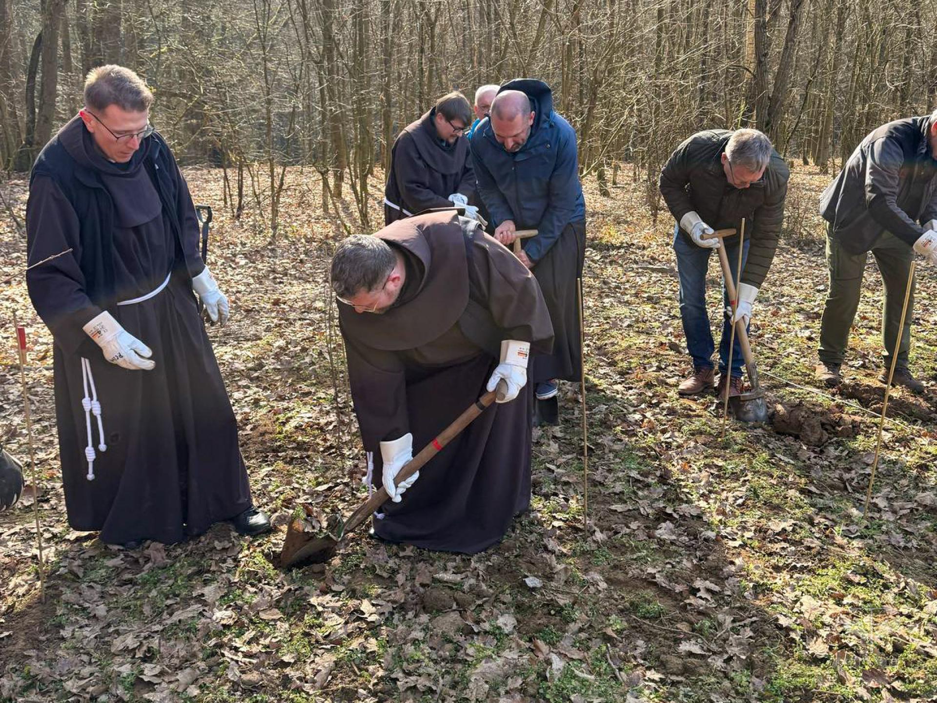The representative of the Forest Keepers, Martin Seits, then explained the technical details and why oak cuttings and not other trees were the best in that particular environment, giving historical and biological reasons, describing how long the cuttings grow, what benefits they bring to the fauna and flora and for what purposes the oaks can be used in the church. Finally, the friars of the fraternity read the text of the Canticle of the Creatures and, immediately after, all together they began to plant an oak forest.