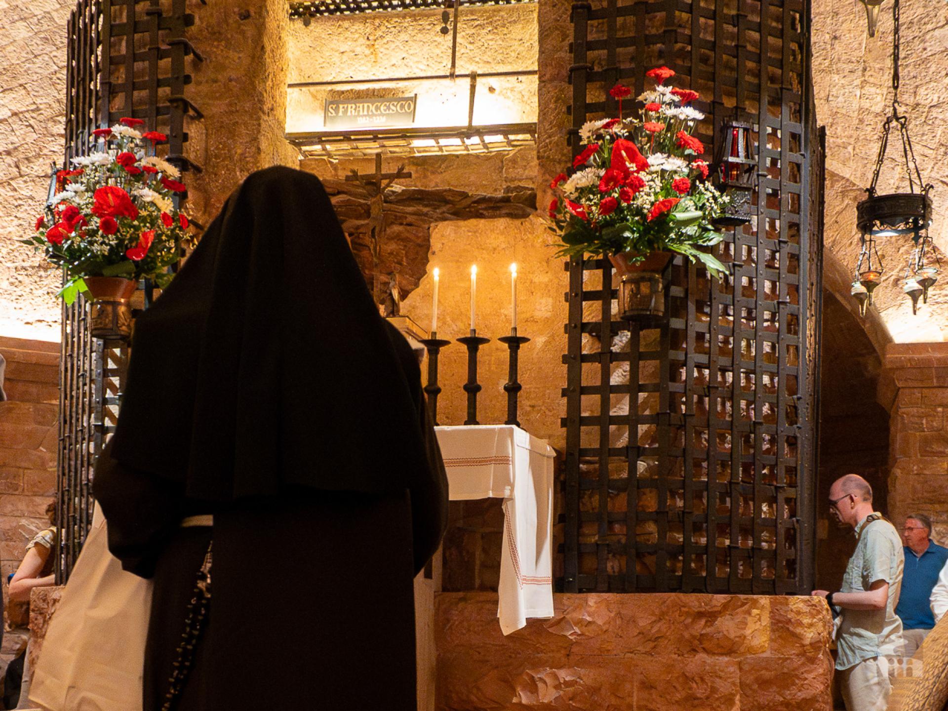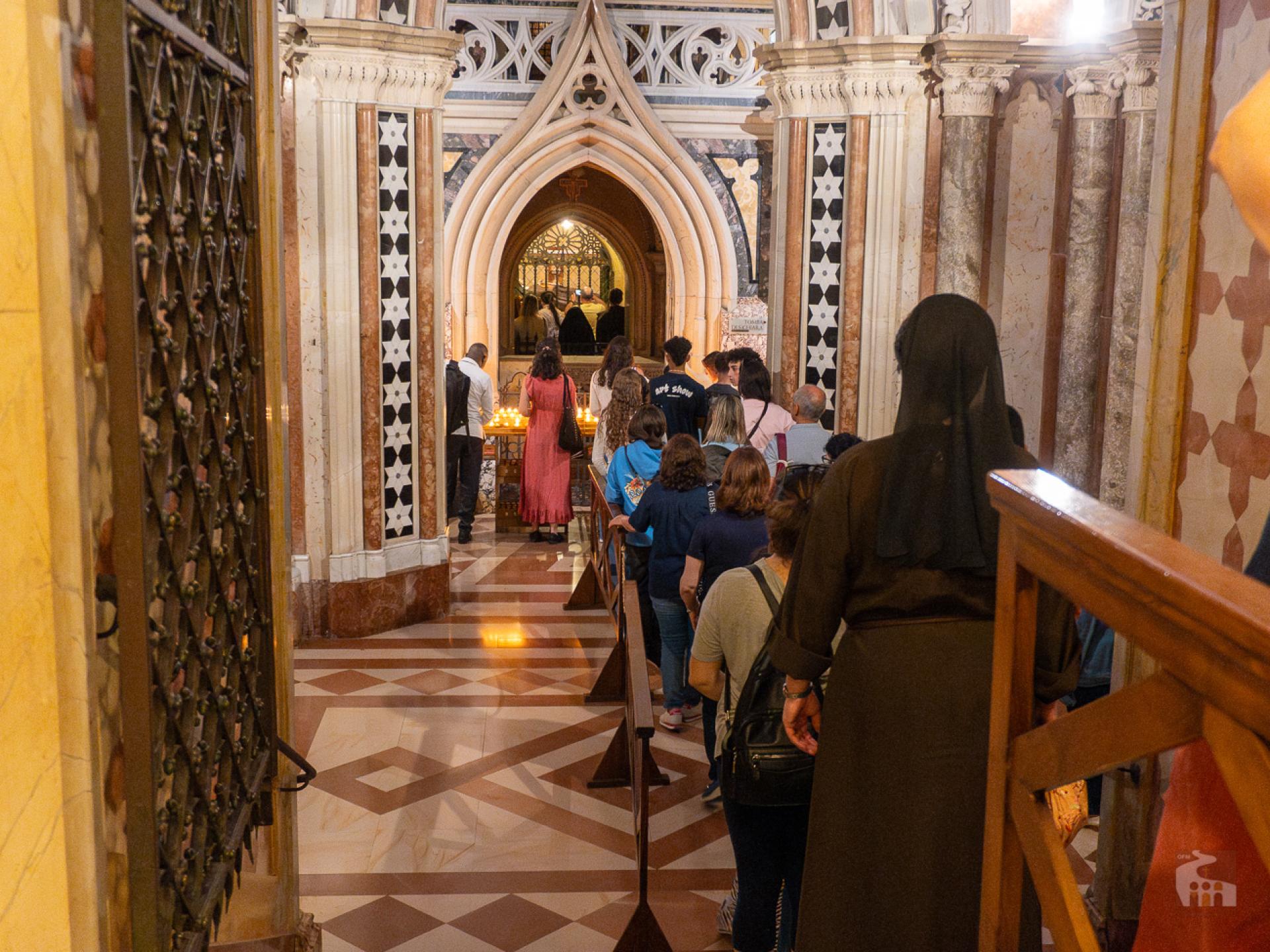 Afterwards, the group moved to the Basilica of Saint Clare, where they experienced a profound moment of prayer with the "O High and Glorious God" and praises to the Most High God. The participants also had a time of personal prayer before the Crucifix of San Damiano and the tomb of Saint Clare. The day continued with individual visits to other significant Franciscan sites in the city.