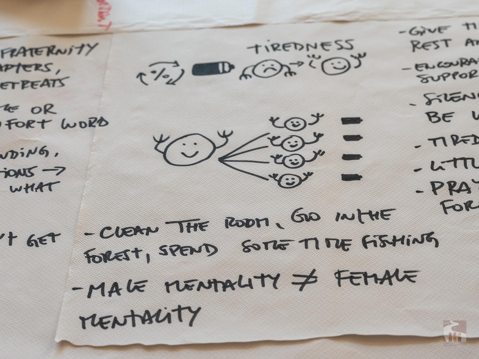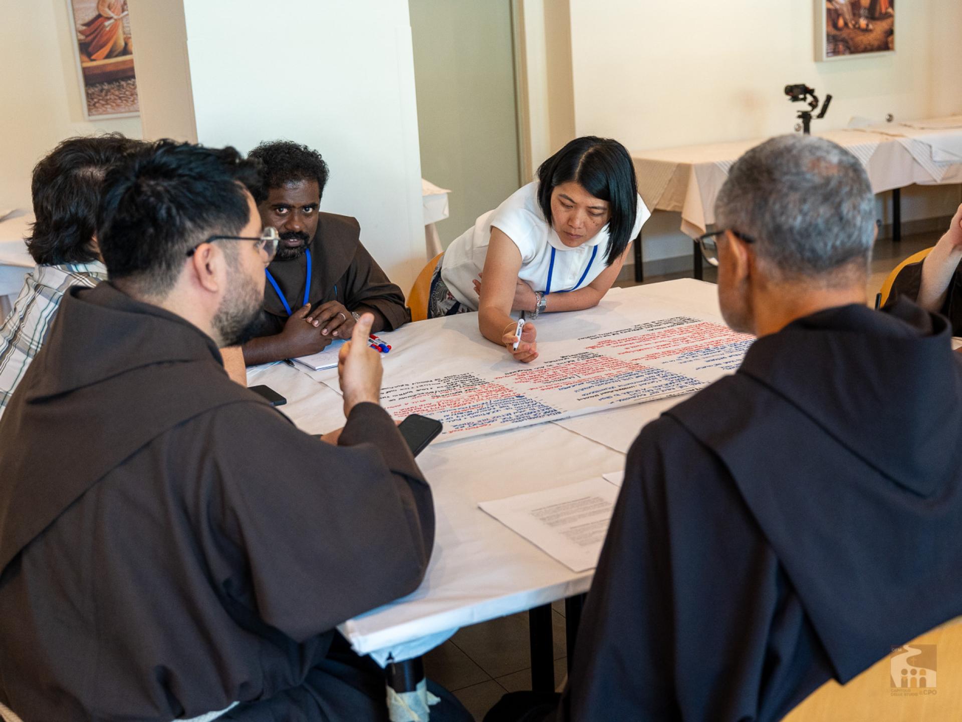 The dialogue and discussion within the World Café tables were fueled by these challenges, accompanied by the provocations left by Prof. Ribón and the questions of the Instrumentum Laboris that invited reflection on the concept of "outgoing Church" and its connection with the Franciscan charism, the experiences of shared mission that have strengthened the sense of brotherhood in the community, and finally the importance of fraternal relationships as a source of motivation and support in times of difficulty.