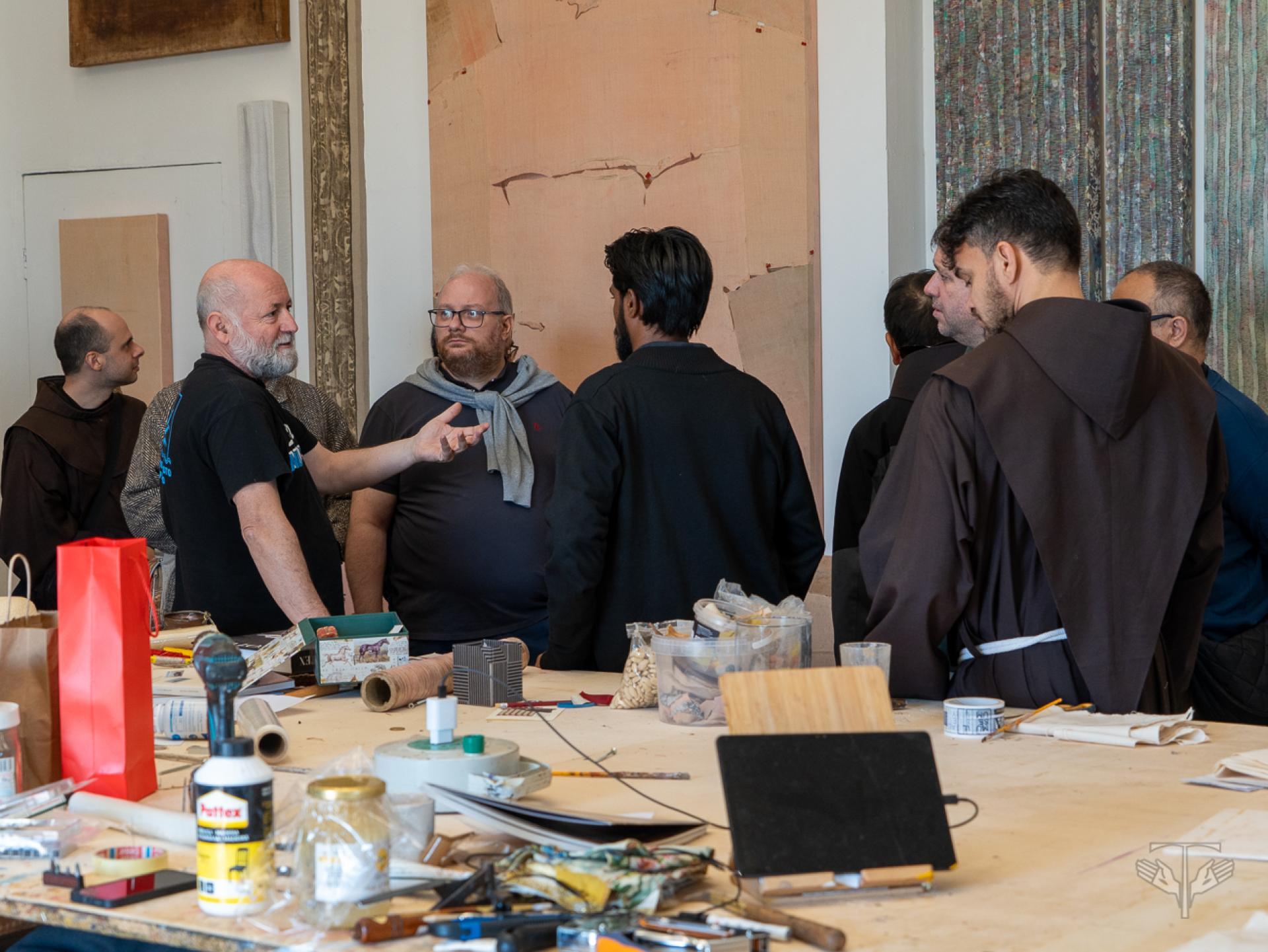 This year, in celebrating the eighth centenary of the Canticle of the Creatures, the artist friars accepted St. Francis' invitation to look at the world with new eyes, capable of grasping the presence of the invisible in the visible. The Canticle, in fact, continues to be a source of inspiration and creativity, an invitation to recognise the beauty of reality and to return it to the wounded world, with a spirit offraternity and gratitude. The call addressed to all the entities of the Order was answered by 14 friars from Austria, Brazil, Colombia, Croatia, India, Italy, Mexico, the Netherlands, Poland, the Holy Land, Venezuela, and Hungary. In the richness of their different artistic expressions, they passed days of formation and sharing on the ministry of being an artist in the Order, of exchange of experiences, of confrontation with Br. Alessandro Brustenghi, tenor friar of the Seraphic Province of St. Francis of Assisi and Sardinia, and with Br. Sidival Fila, visual artist of the Province of St. Bonaventure of Lazio and Abruzzo.