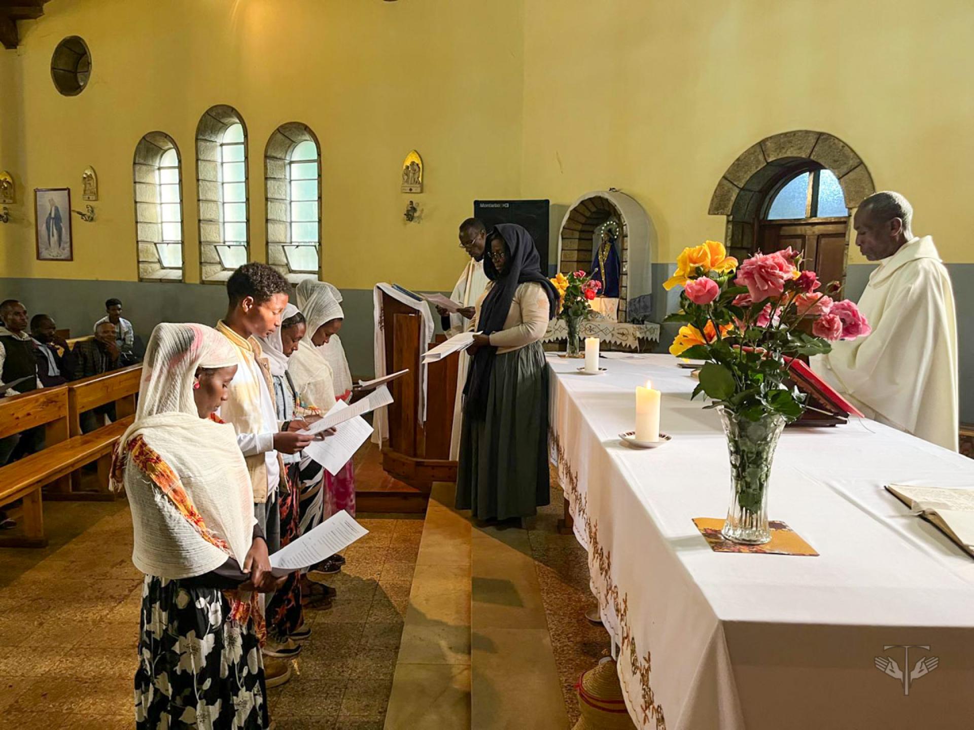 The Presidency Councilor had the joy of receiving the Profession of nine OFS members of the Sacred Heart fraternity in Addis Ababa. Afterwards, the visitators moved to the city of Konto at the Capuchin friary of Our Lady of Loreto Mariam Parish Church in Wolaita Soddo, where they began the program with the celebration of the Holy Mass presided over by the Apostolic Vicariate of Soddo in the Southern Ethiopia Region, Bishop Dejene Hidoto, OFMCap. This was followed by the welcoming ceremony of the CIOFS delegates in the hall by the Bishop, OFS, and YouFra. Then, the formation workshop began, and in the afternoon, the election of the new local Council took place.