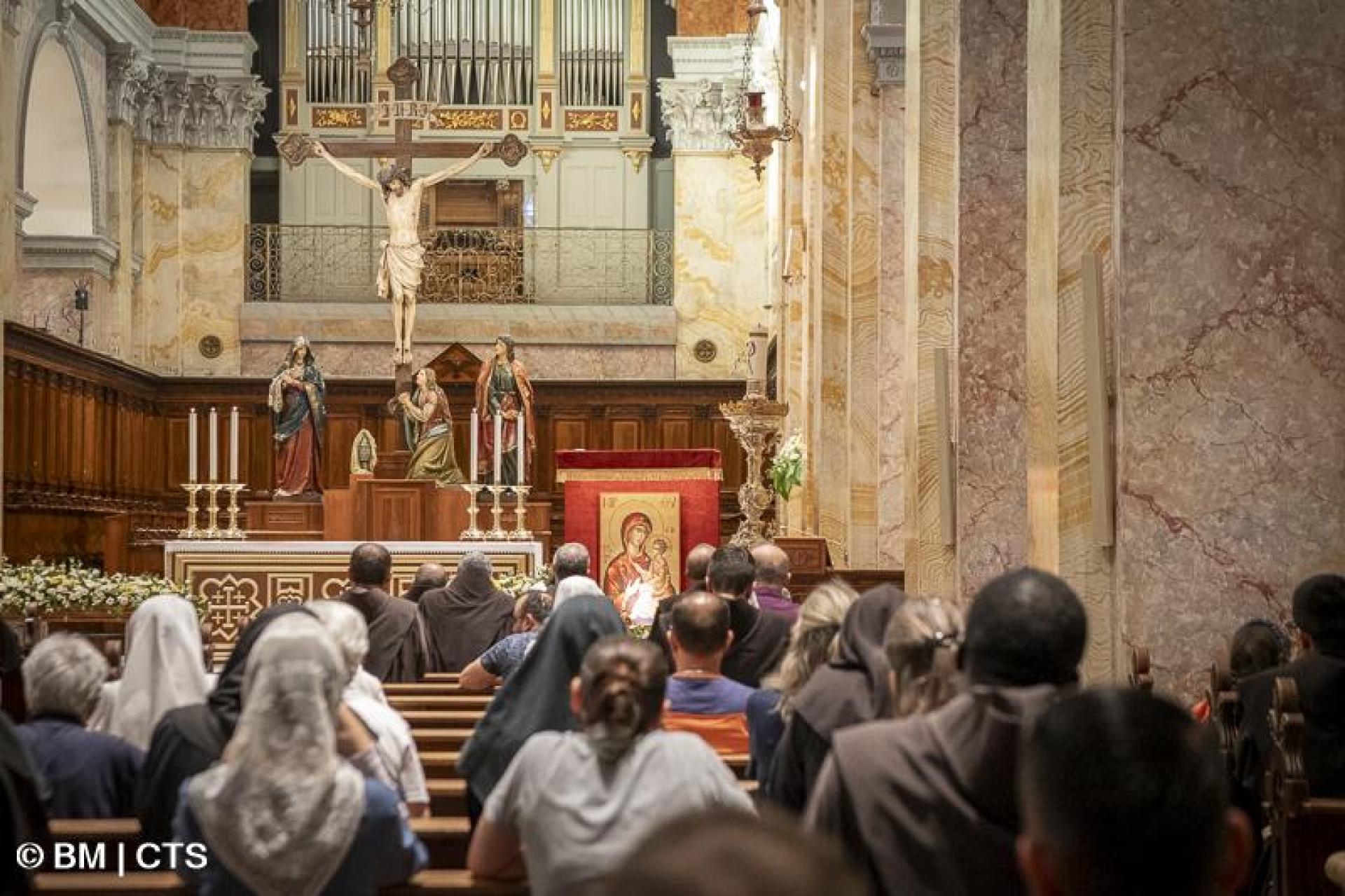 In Assisi, in the Basilica of Our Lady of the Angels in Porziuncola, the Franciscan Family and the Diocese gathered for the recitation of the Joyful Mysteries of the Rosary, presided over by Fr. Massimo Travascio, Custos of the Portiuncula, in the presence of Msgr. Domenico Sorrentino, Bishop of the Dioceses of Assisi - Nocera Umbra - Gualdo Tadino and Foligno, and of many the faithful and pilgrims.