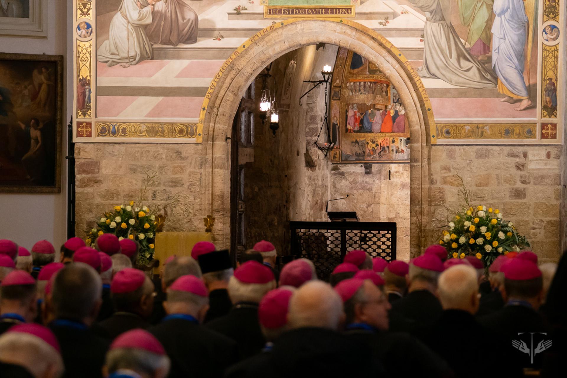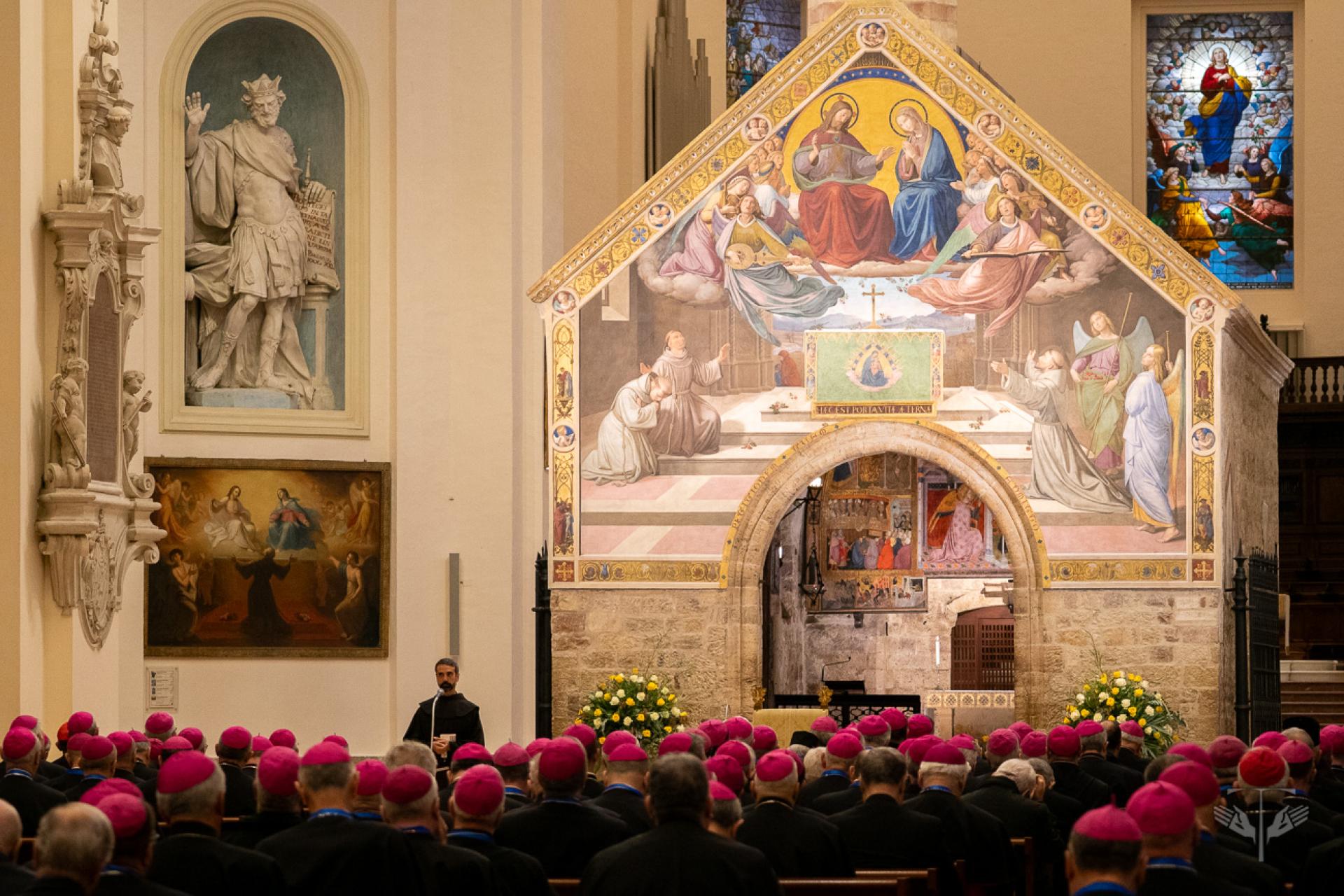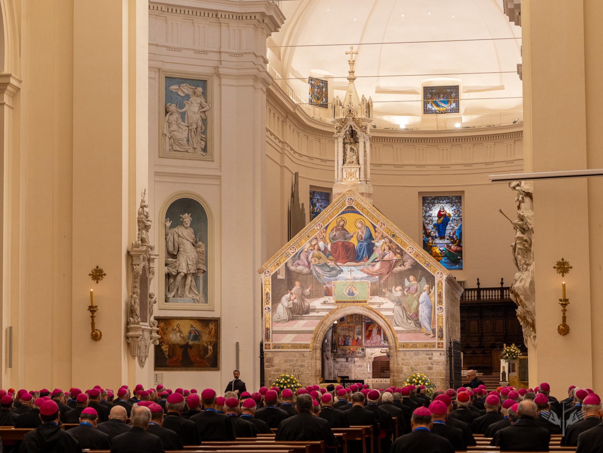 The Holy Father Leo XIV went to Assisi at the Porziuncola for the conclusion of the work of the 81st General Assembly of the Italian Bishops' Conference. The Pope was welcomed and accompanied by Br. Massimo Fusarelli, Minister General, Br. Francesco Piloni, Minister Provincial of Umbria and Sardinia, and Br. Massimo Travascio, Custos of the Portiuncula.