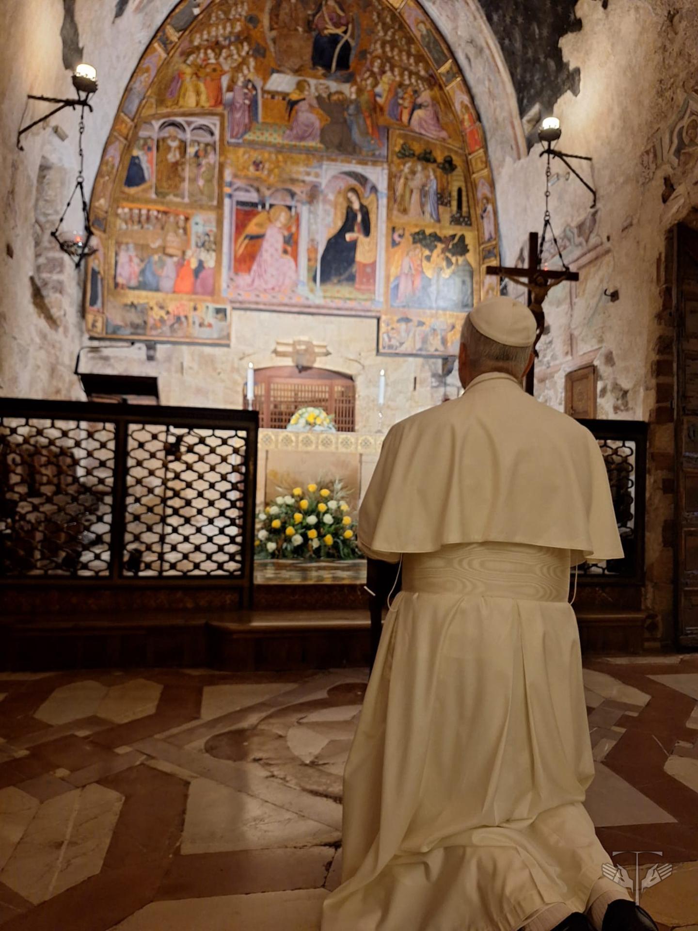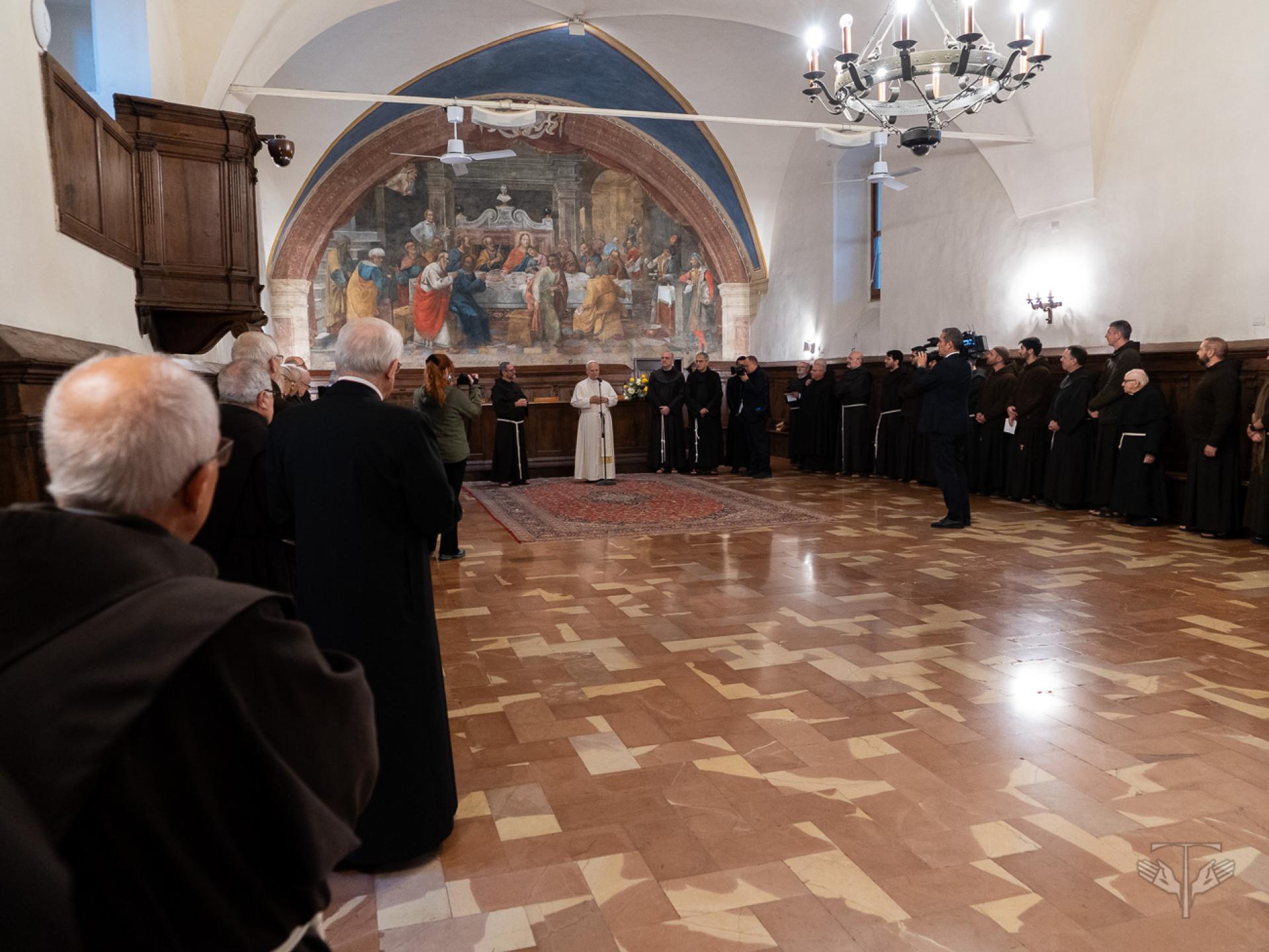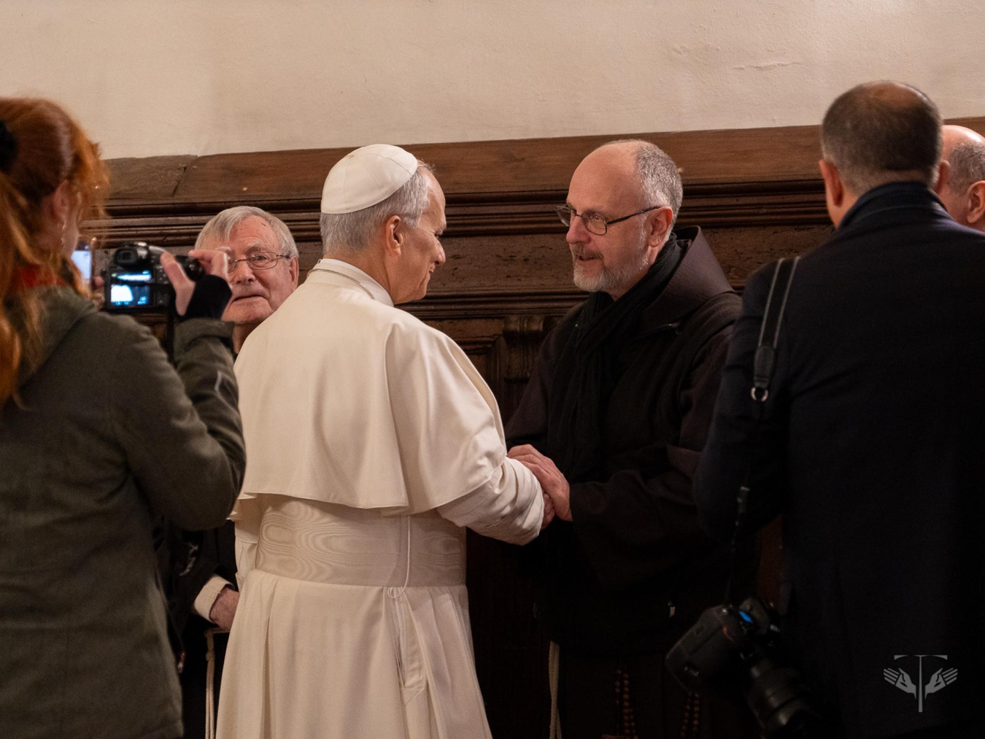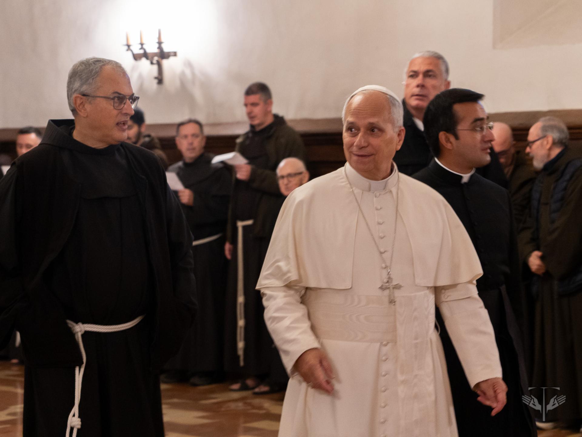 The Holy Father recalled the example of the Poverello-The Poor Man of Assisi in the very place where he lived: "In this place, St. Francis and the first friars lived to the full what, in today's language, we call 'synodal style'. Together, in fact, they shared the different stages of their journey; together they went to Pope Innocent III; Together, from year to year, they perfected and enriched the initial text". Leo XIV highlighted that "this convinced choice of fraternity, which is the heart of the Franciscan charism together with minority, was inspired by an intrepid and persevering faith", concluding: "May the example of St. Francis also give us the strength to make choices inspired by an authentic faith and to be, as a Church, a sign and witness of the Kingdom of God in the world".