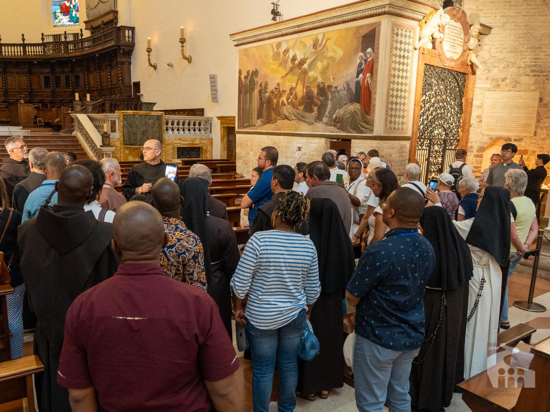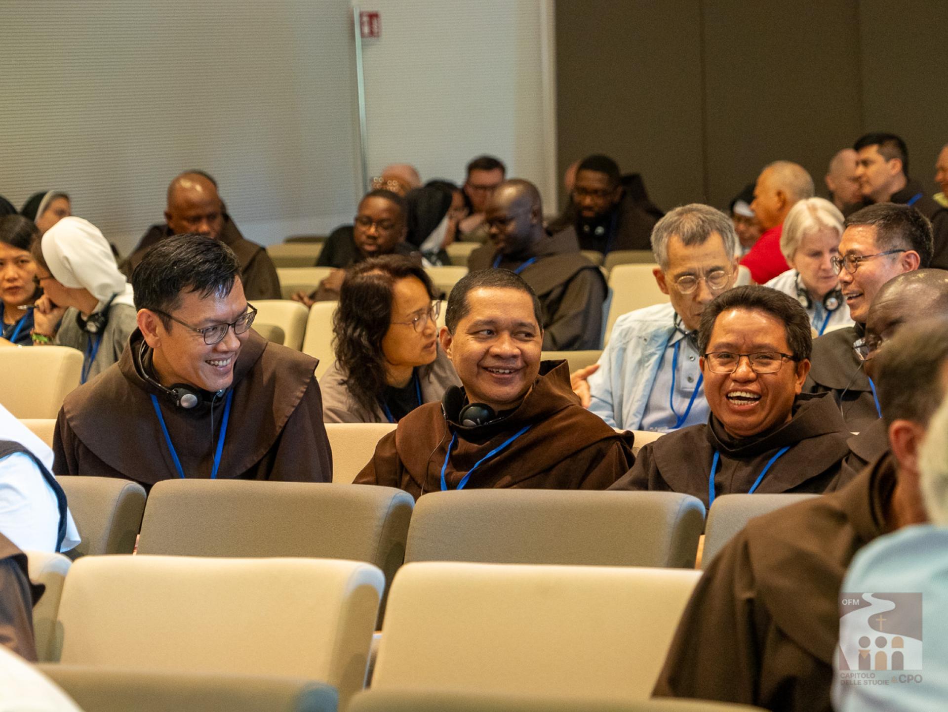 In the afternoon, after a guided tour of the Porziuncola, the assembly met in the Auditorium of the Domus Pacis for the presentation of the working methodology of the “World Café”. Starting tomorrow, in fact, the Capitulars will be divided into 18 tables and will actively participate in answering some questions in the Instrumentum Laboris, specifically three for each thematic nucleus (Charisma, Communion, Mission).