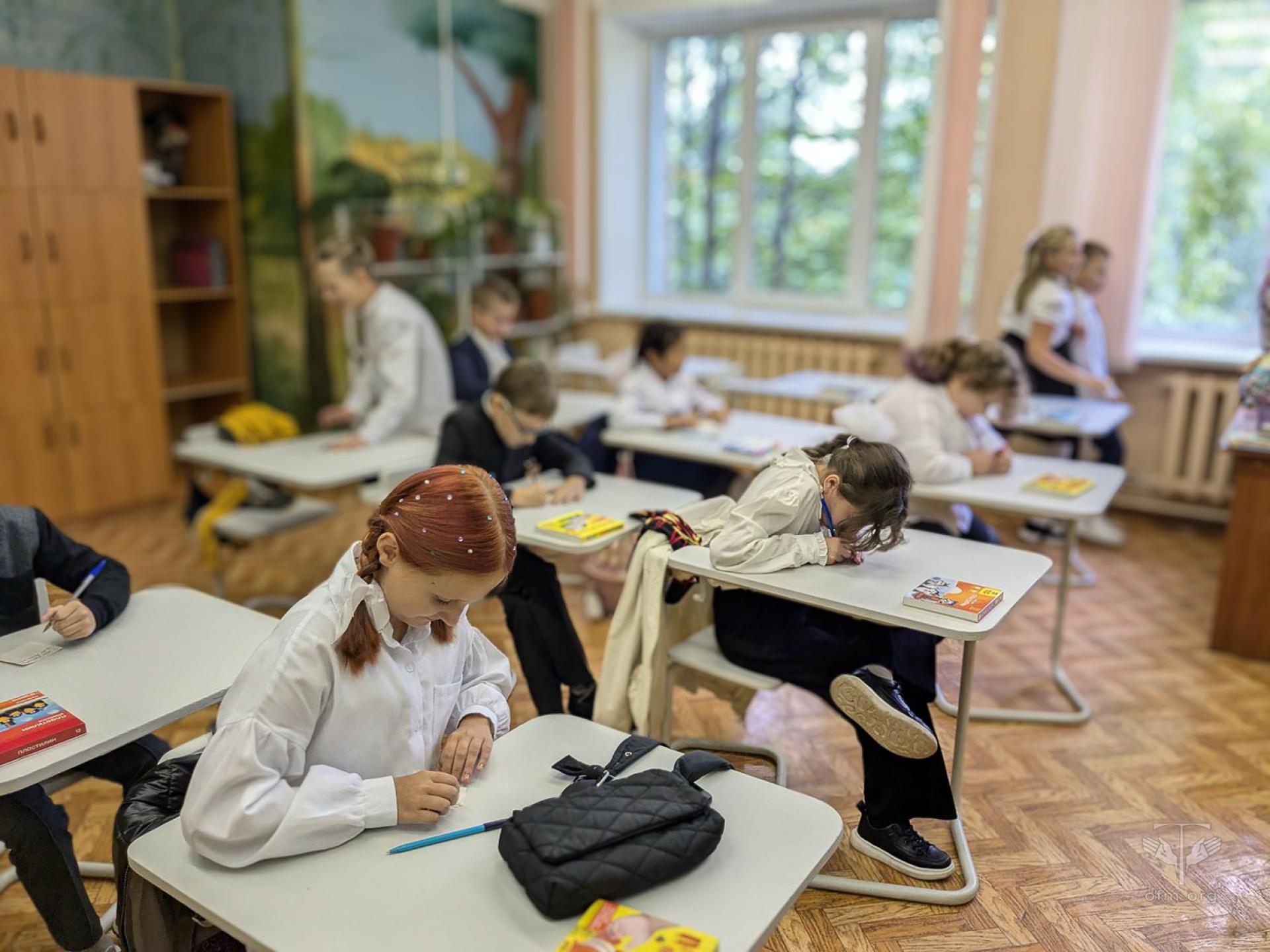 All’inizio la scuola era frequentata da bambini russi per lo più ortodossi e pochi cattolici. Ora a motivo della immigrazione dai paesi del Sud è frequentata anche da musulmani. I programmi sono standard delle scuole elementari russe. Arricchiti dalla musica, dal canto e dall’ora di Religione. La Religione si basa su temi biblici, sulle Icone delle feste, sui Nomi di Dio nel Corano e sui Dieci Comandamenti. Nella quarta classe rispondiamo alla domanda “chi è Gesù?”. Per questo leggiamo il Vangelo di Marco e le più di 35 parabole e i 20 miracoli operati da Gesù.
