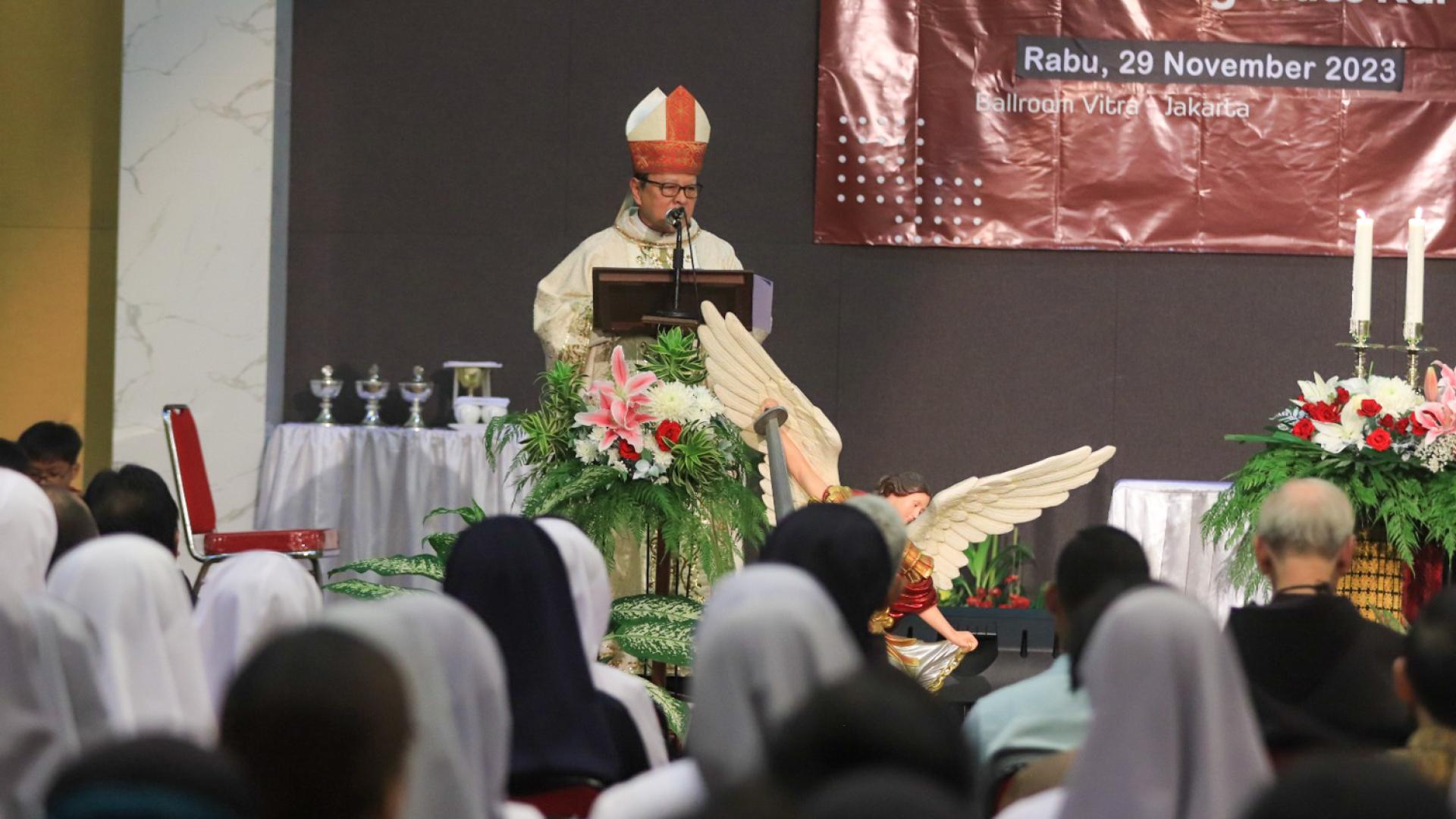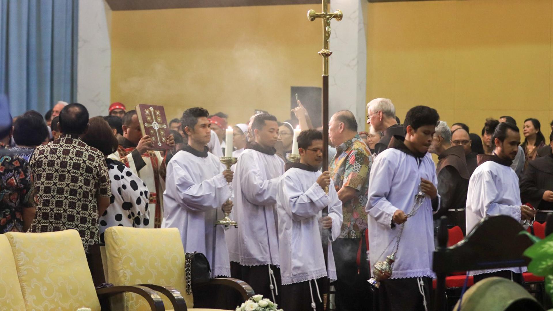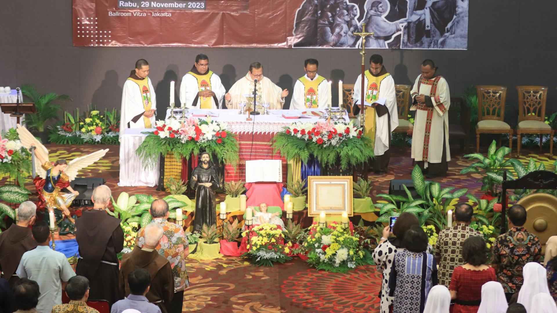 Il culmine di tutte le attività è stata la Celebrazione Eucaristica del 29 novembre, presieduta dal Vescovo dell’Arcidiocesi di Giakarta, il Card. Ignatius Suharyo. Era accompagnato da fr. Mikael Peruhe OFM (Ministro provinciale), fr. Daniel Klau Nahak OFM (Vicario provinciale), p. Benedictus Hari Juliawan SJ (Provinciale dei Gesuiti in Indonesia), fr. Agustinus L. Nggame OFM e il diacono Yohanes Wahyu Prasetyo OFM.