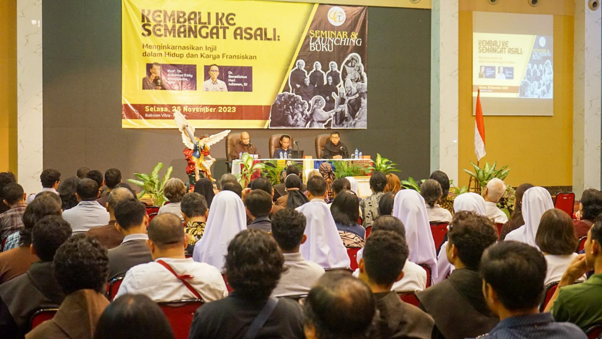 Poi, il 28 novembre 2023, nello stesso luogo, si è svolto il seminario dal titolo “Ritorno allo spirito originario: incarnare il Vangelo nella vita e nell’opera dei francescani”. Il seminario, che ha coinvolto la Famiglia francescana dell’Arcidiocesi di Giakarta e della Diocesi di Bogor, nonché la popolazione, ha presentato due relatori, fr. Antonius Eddy Kristiyanto, OFM (un francescano professore di Storia della Chiesa) e p. Benedictus Hari Juliawan, SJ (Provinciale dei Gesuiti in Indonesia e Docente presso l’Università Sanata Dharma). Allo stesso tempo è stato lanciato un libro che è un’antologia, dal titolo “Rivitalizzare la vita francescana”. Scopo del libro è riflettere insieme sul 40° anniversario della Provincia indonesiana di San Michele Arcangelo, sull’800° anniversario della Regola e sull’800° anniversario del Natale di Greccio.