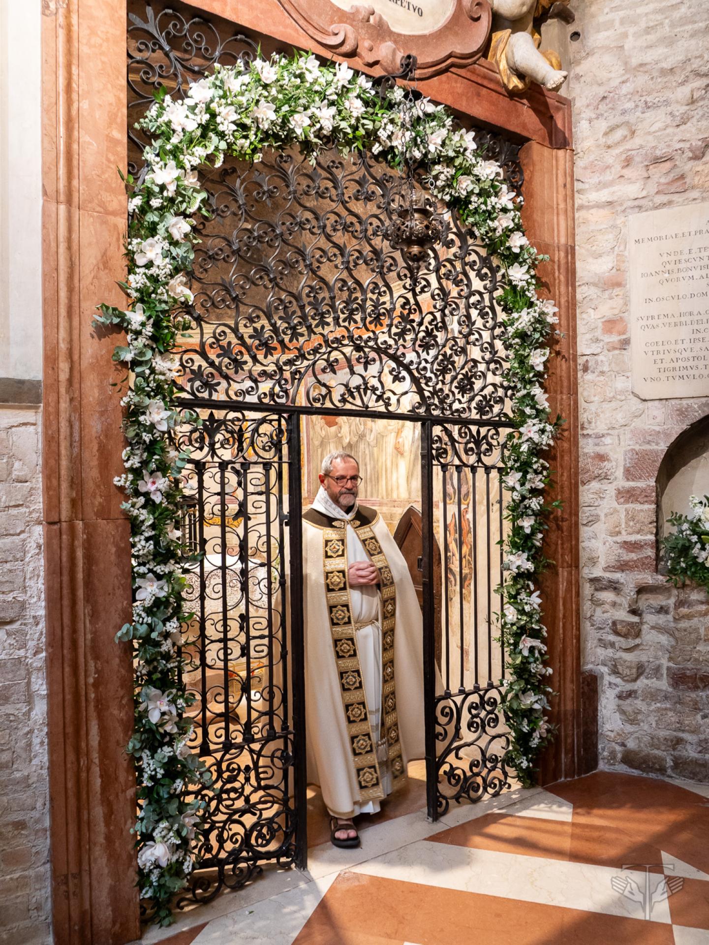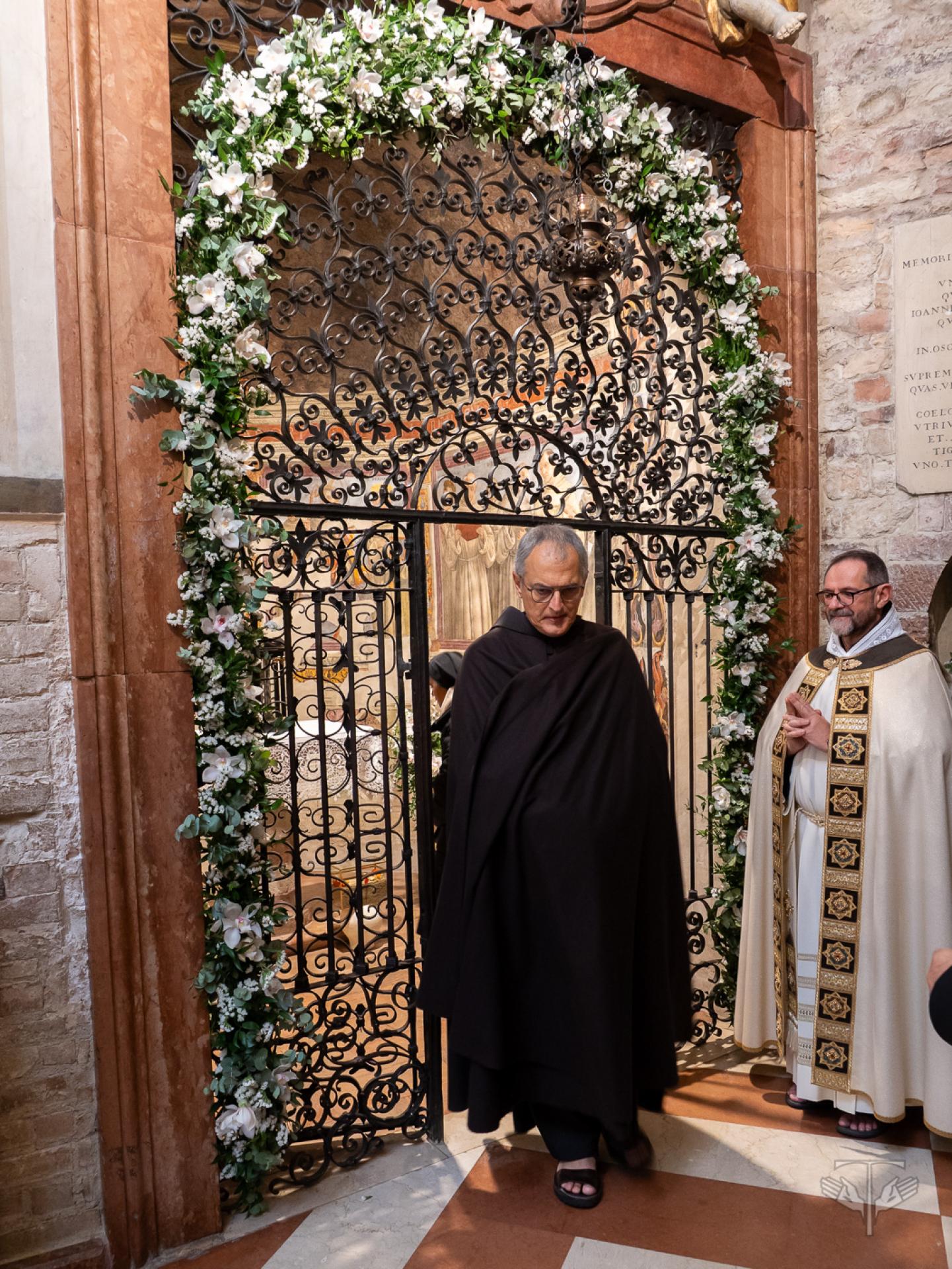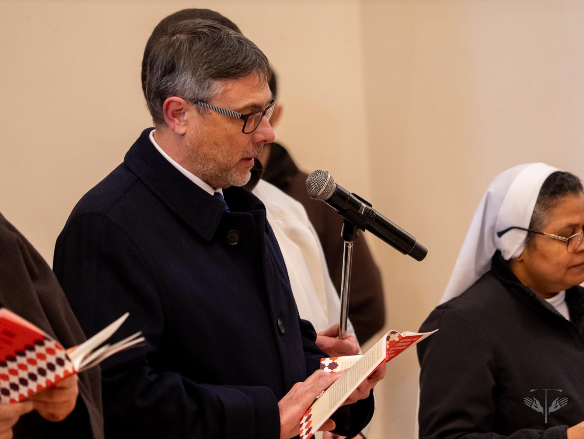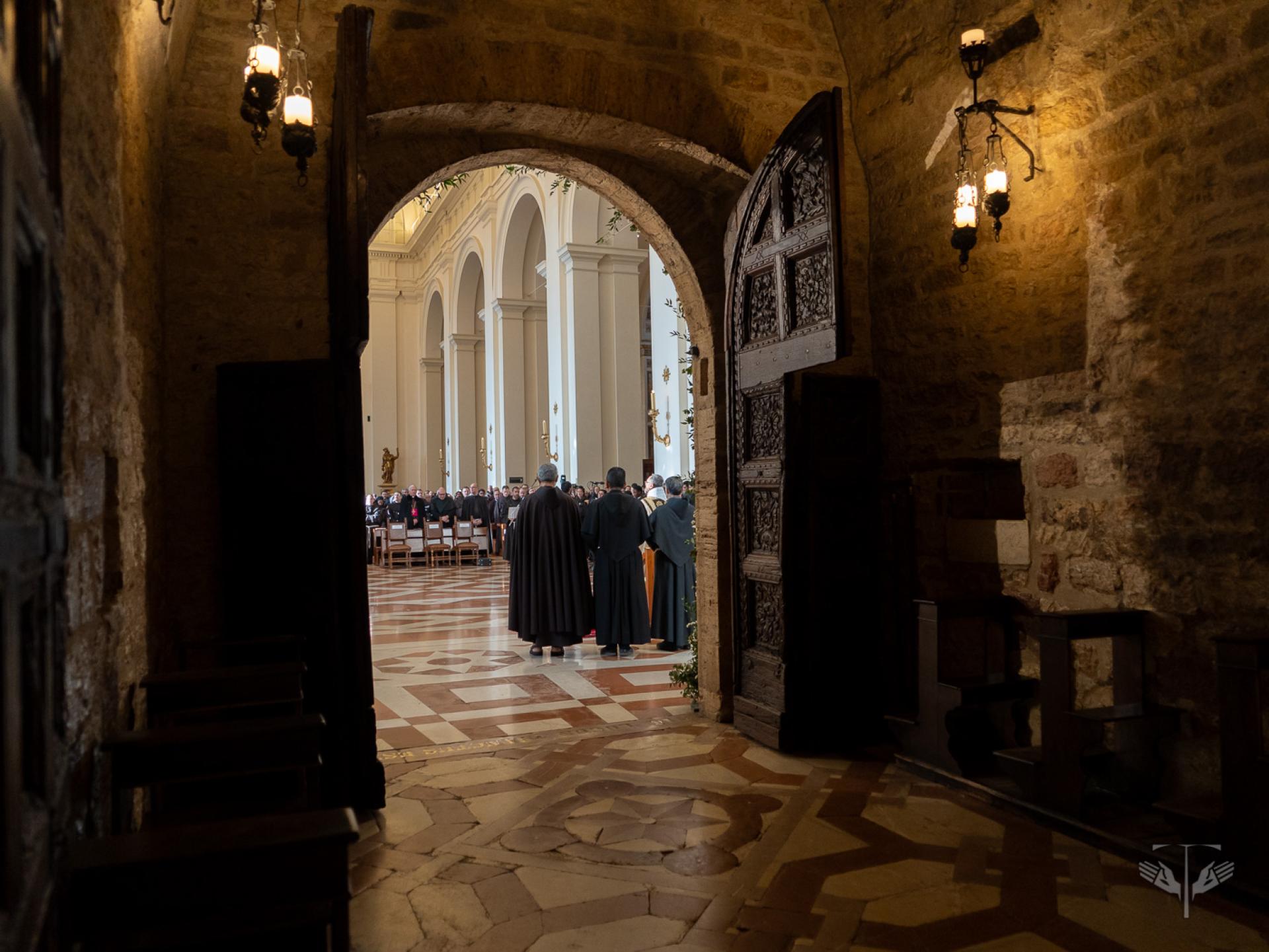 Il rito di apertura è iniziato con un gesto concepito come ponte simbolico e spirituale tra il Centenario della composizione del Cantico delle Creature (2025) e il Centenario del Transito (2026). Riprendendo le ultime due strofe del Cantico (quelle dedicate alla riconciliazione e a sorella morte corporale), in memoria della riconciliazione tra il vescovo e il Podestà di Assisi, il Vescovo di Assisi-Nocera Umbra-Gualdo Tadino e Foligno, Mons. Domenico Sorrentino, e il Sindaco della città di Assisi, Valter Stoppini, sono entrati nella Basilica portando un cero spento, segno dell’umanità segnata dal conflitto e dalla fragilità.