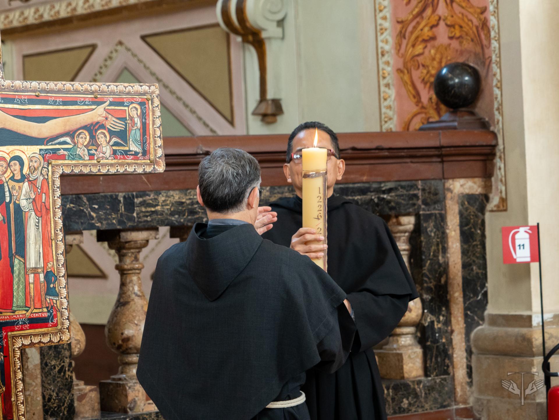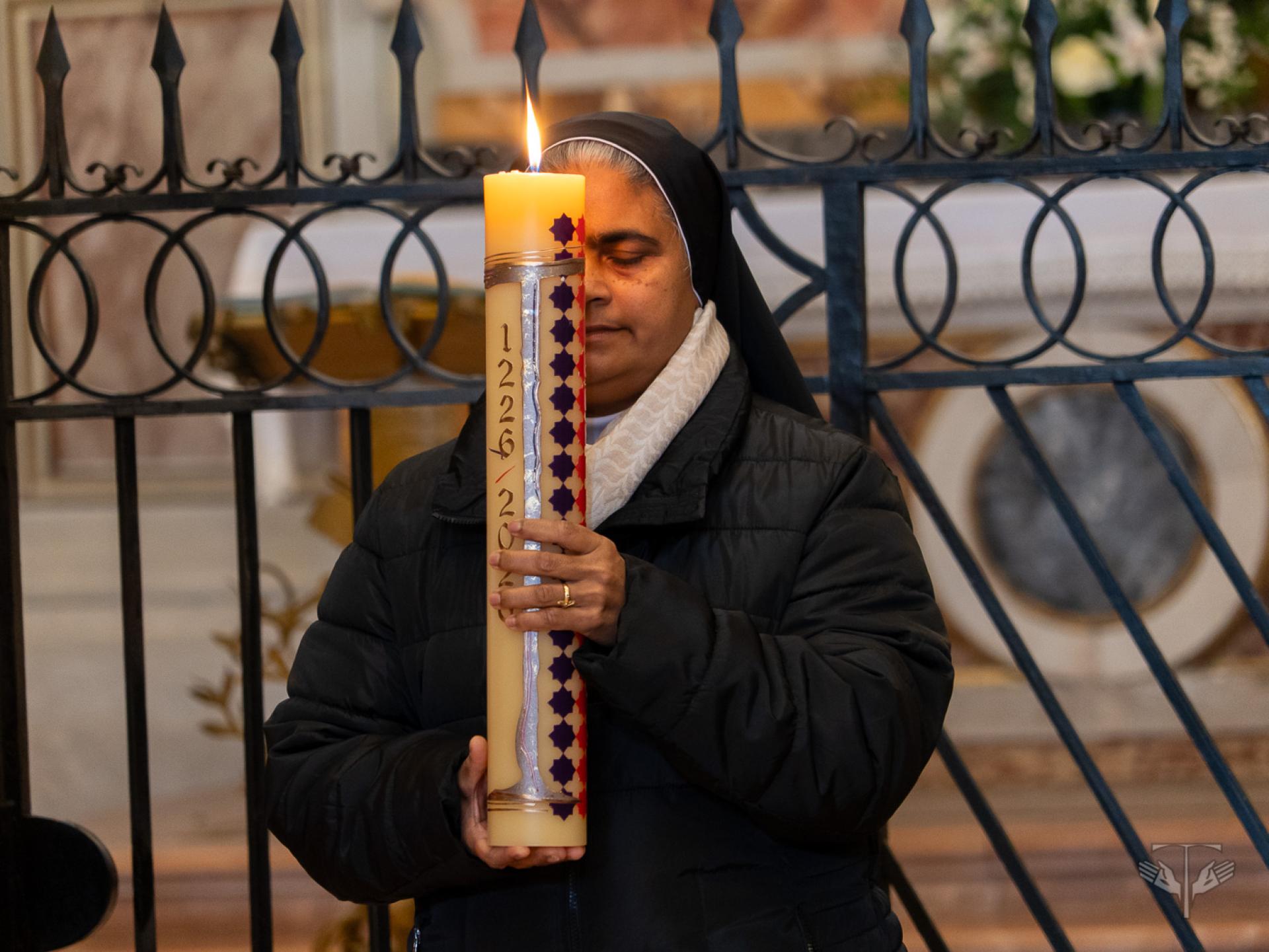La processione ha raggiunto la Cappella del Transito, luogo degli ultimi istanti terreni di Francesco, dove il cero è stato acceso al Cero Pasquale, simbolo di Cristo risorto. Da lì, la luce è stata portata alle sei stazioni laterali della Basilica, ciascuna affidata a uno dei sei rami della Famiglia francescana.