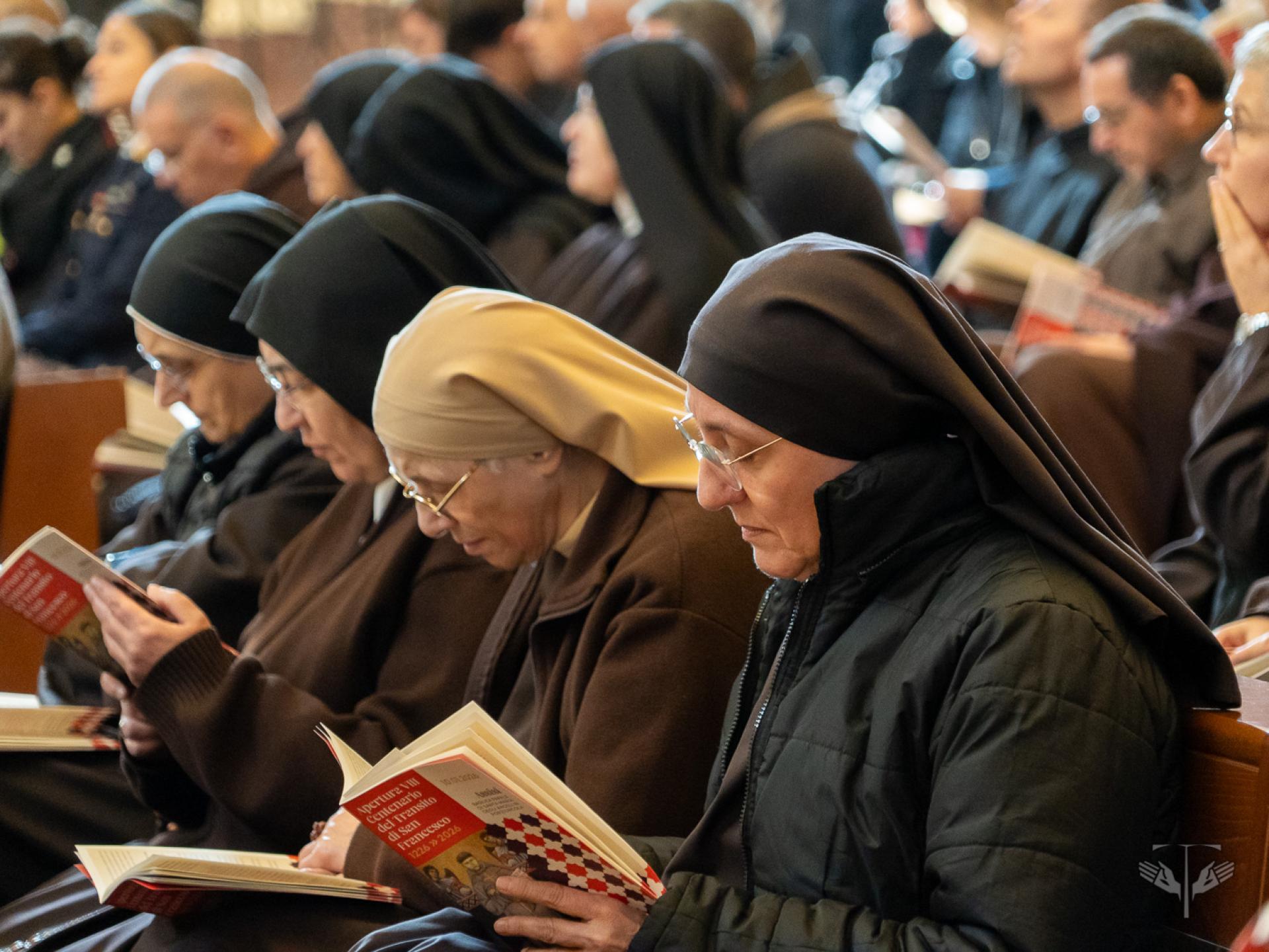 Al termine della celebrazione sono state lette le parole di Papa Leone XIV, rivolte ai Ministri generali della Famiglia francescana, nelle quali il Santo Padre ha ricordato come la testimonianza di Francesco continui a parlare al nostro tempo, segnato da guerre e divisioni: “In quest’epoca, segnata da tante guerre che sembrano interminabili, da divisioni interiori e sociali che creano sfiducia e paura, egli continua a parlare, non perché offra soluzioni tecniche, ma perché la sua vita indica la sorgente autentica della pace”. Dalla lettera è risuonato anche l’invito a lasciarci guidare dal poverello di Assisi sul cammino della riconciliazione e della pace: “San Francesco, fratello nostro, tu che ottocento anni or sono andasti incontro al sovrano giudice come un uomo pacificato, intercedi perché anche noi sappiamo riconciliarci con Dio, con noi stessi, con gli altri e con il creato”. Il Papa ha anche consegnato ai francescani una preghiera: “In questo Anno di grazia, desidero consegnarvi una preghiera affinché San Francesco d'Assisi continui a infondere in tutti noi la perfetta letizia e la concordia”.