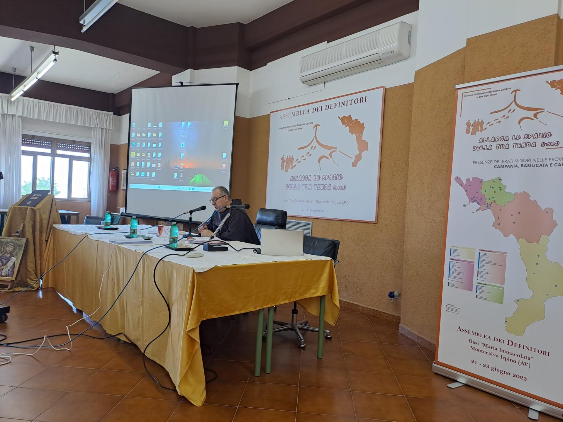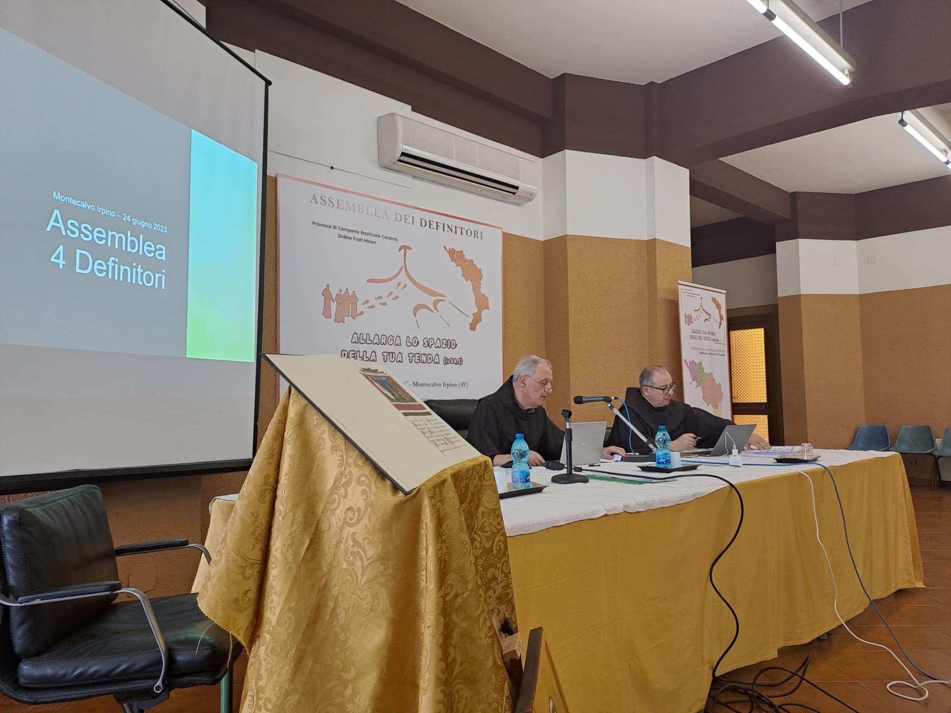 Dal 21 al 23 giugno 2023, presso l’Oasi “Maria Immacolata” di Montecalvo Irpino (Italia), si è tenuta l’Assemblea dei Definitori provinciali delle quattro Province di Campania, Basilicata e Calabria, con la presenza del Delegato generale Fr. Francesco Ielpo, nominato lo scorso mese di settembre dal Ministro generale (su richiesta dei quattro Capitoli provinciali) “per facilitare e accompagnare” il cammino delle quattro Province (dei “Santi sette Martiri” della Calabria, del “Sacro Cuore di Gesù” di Napoli-Caserta, dell’“Immacolata Concezione” di Salerno-Basilicata, di “Santa Maria delle Grazie” di Benevento-Avellino), in vista di “un progetto comune di ristrutturazione, da attuare gradualmente”.
