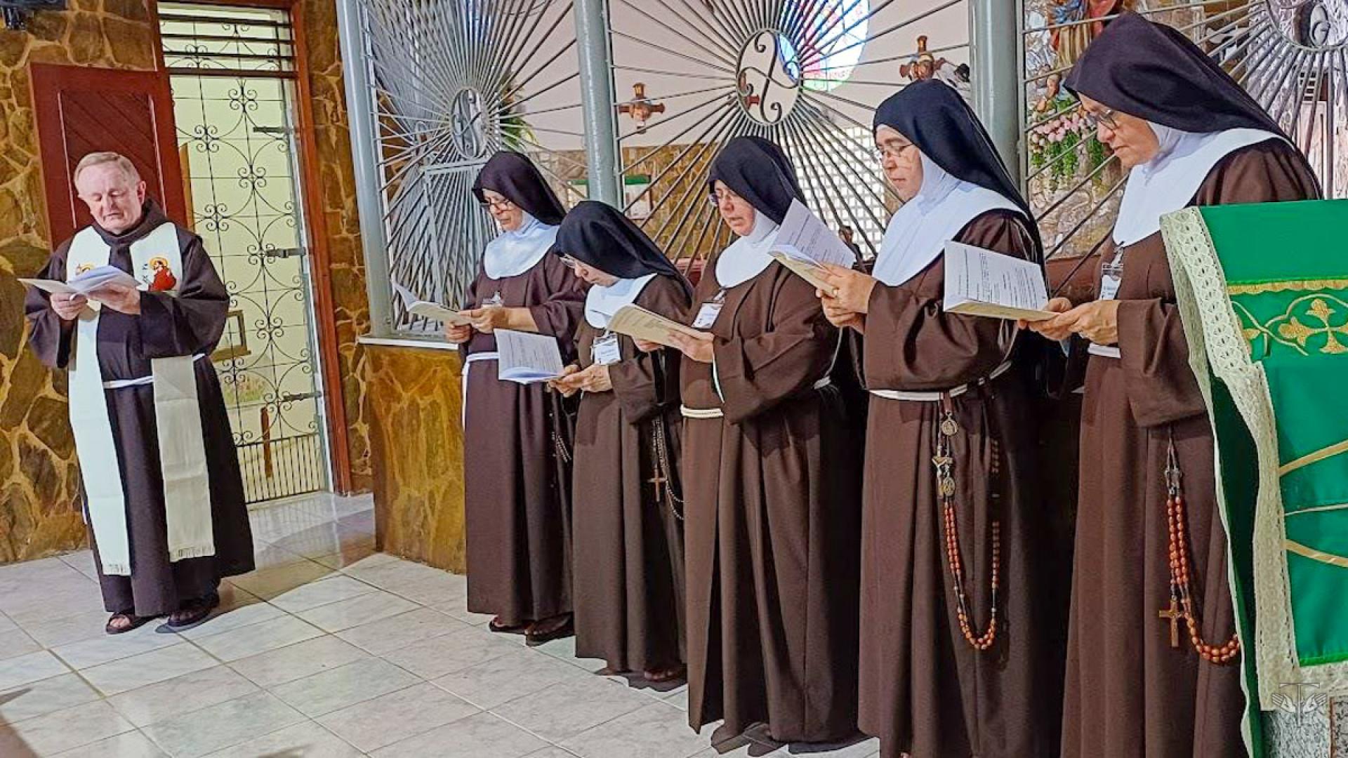 Rafforzati e, sotto l’assistenza dello Spirito Santo, Ministro generale del nostro Ordine, siamo arrivate al momento dell’elezione del nuovo governo della nostra Federazione per il prossimo sessennio, con la scelta di Suor Isabela de Santa Maria dos Anjos, OSC (Monastero Madre della Provvidenza, Cascavel/PR) come Madre Presidente, e le seguenti Consigliere: Suor Francis Lara de Jesus Hostia, OSC (Monastero di Santa Clara do Deus Trino, Brazlândia/DF), Suor Maria Karolyne de Jesus Crucificado, OSC (Monastero Santa Clara, Belo Horizonte/MG), Suor Maria Francisca, OSC (Monastero di San Damiano, Porto Alegre/RS) e Suor Maria Auxiliadora do Pai Eterno, OSC (Monastero Fraternità San Francesco di Assisi, Mossoró/RN).