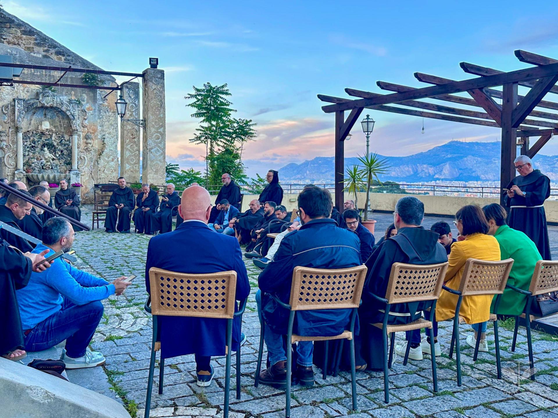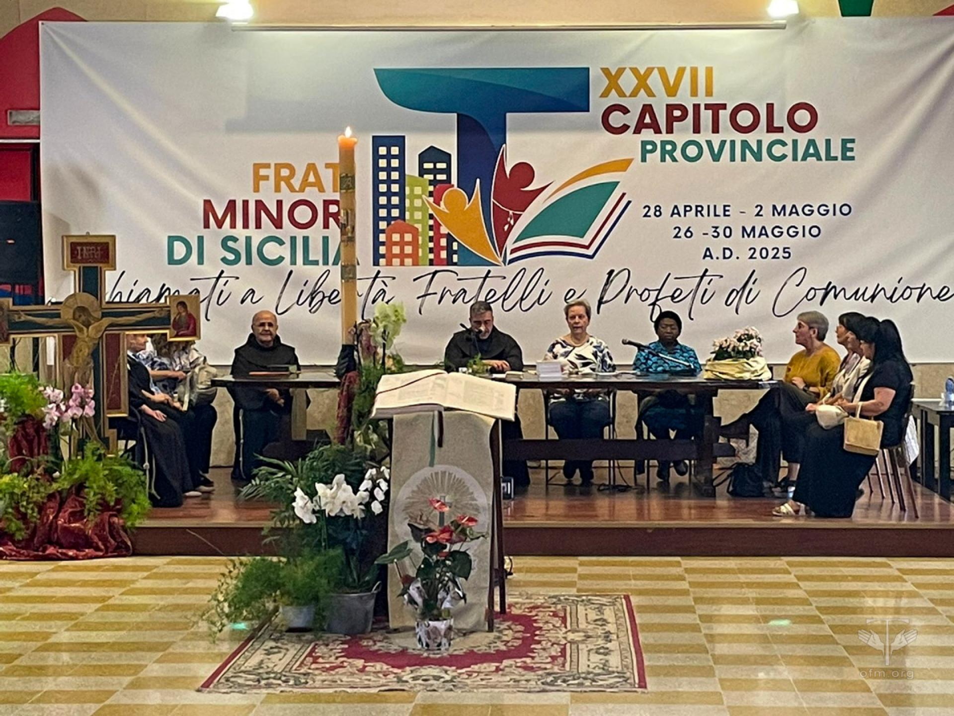Negli ultimi giorni di Capitolo alcuni fratelli e sorelle sono venuti a trovare i frati capitolari per un momento di dialogo e confronto: il Ministro provinciale di Malta, Fr. Anthony Chircop, circa il cammino di conoscenza che le Province di Malta e Sicilia da poco più di un anno hanno iniziato a percorrere; il Ministro regionale OFS e GiFra, per guardare insieme ai frati a dei cammini condivisi nell’ambito dell’annuncio del Vangelo nella società di oggi; il Movimento “Presenza del Vangelo”, l’Istituto Secolare Missionarie “Presenza del Vangelo” e la Fraternità Francescana della Speranza “S. Elisabetta d’Ungheria”, realtà con le quali la Provincia condivide il cammino di sequela secondo l’intuizione di Francesco d’Assisi.