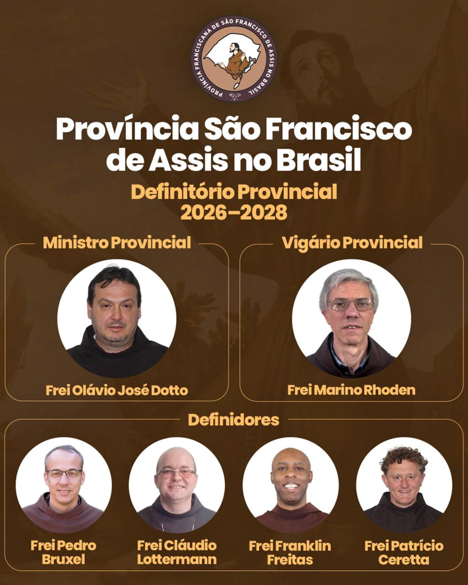 Per il sessennio 2026-2031, Fr. Olávio José Dotto, OFM è stato scelto come Ministro provinciale e Fr. Marino Pedro Rhoden, OFM come Vicario provinciale. Per il triennio 2026-2028, Fr. Pedro Geremias Bruxel, OFM, Fr. Cláudio André Lottermann, OFM, Fr. Franklin Francisco Silva de Freitas, OFM, e Fr. Patrício Ceretta, OFM, sono stati scelti come Definitori provinciali.