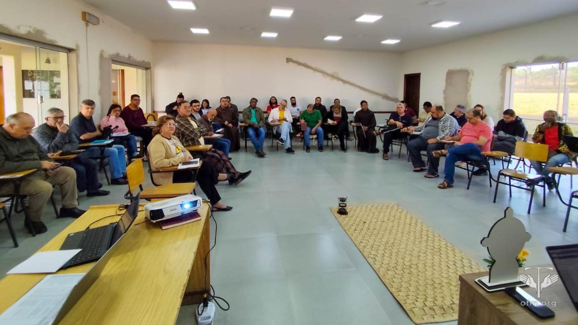Come introduzione e provocazione per le successive riflessioni che sarebbero scaturite, ci siamo avvalsi della collaborazione di alcuni facilitatori, da remoto, che nei loro interventi hanno preparato i partecipanti all’incontro. Abbiamo vissuto quattro momenti: il primo animato da Fr. Rodrigo de Castro Amedée Péret, OFM, che ha riflettuto sul tema “Il Mistero della Creazione – Preparazione dello scenario teologico (Ecologia Integrale)”; il secondo con Fr. Gustavo Wayand Medella, OFM, Vicario provinciale della Provincia francescana dell’Immacolata, che ha affrontato il tema “Ridimensionamento a partire dall’evangelizzazione e nuove forme di presenza oggi”. La terza riflessione è stata fatta da Suor Vânia Martins, FNSA, con il tema “Spiritualità dagli 800 anni delle Stimmate di San Francesco - da La Verna ai nostri giorni”. Infine, abbiamo accolto il Definitore generale per l’America Latina, Fr. César Külkamp, OFM, che ha presentato una riflessione su “Le chiamate del carisma francescano oggi nella nostra storia - Vita, Missione, Evangelizzazione e Ridimensionamento”.