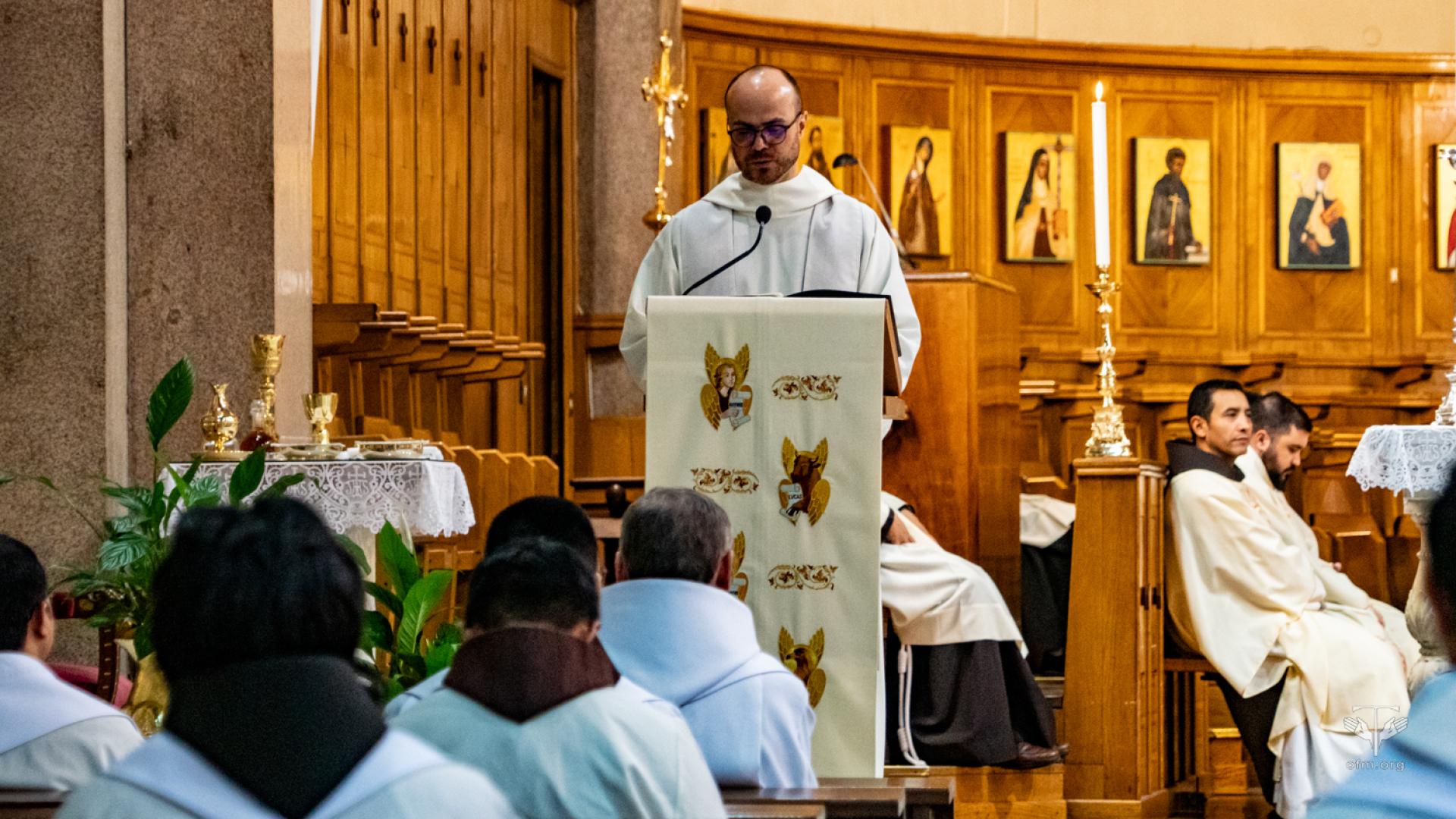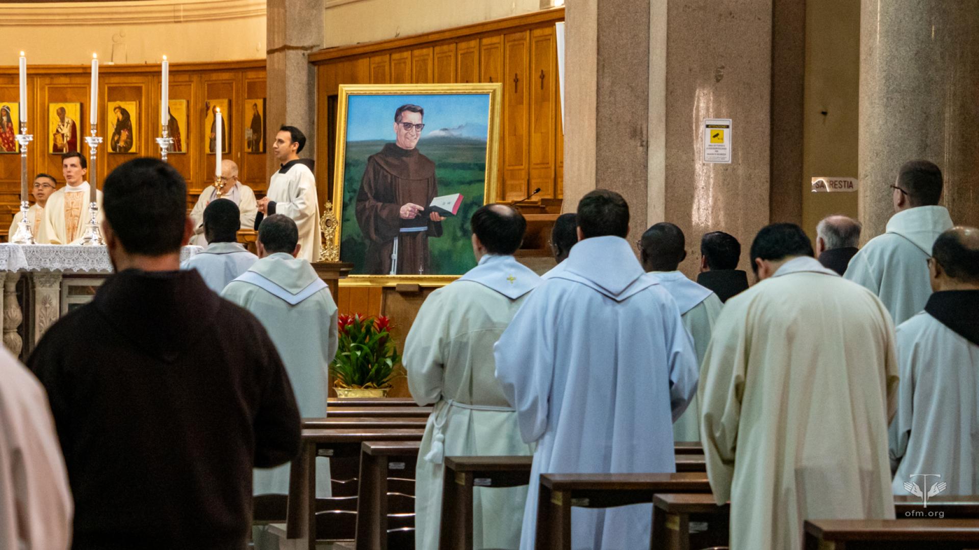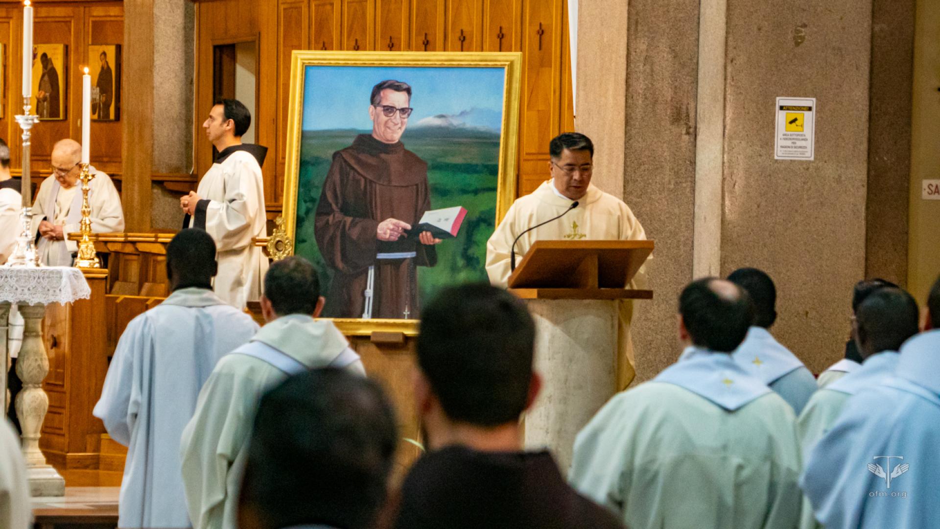 All'inizio della celebrazione il rettore Fr. Angel Montoya ha letto il saluto del Ministro Generale Fr. Massimo Fusarelli. Nel suo messaggio ha detto ai frati: “Desidero ricordarvi la forza mite e incrollabile di questo umile frate minore, che ha attraversato il mondo a partire dal suo piccolo villaggio, per diventare eco e presenza della parola di salvezza del Vangelo”. Ha concluso il saluto dicendo: “Con questi sentimenti vi auguro una buona celebrazione e un bel momento fraterno, perché l'esempio del Beato Gabriele Maria continui a ispirare il tempo che trascorrete a Roma per gli studi, senza mettere tra parentesi la vita evangelica dei frati minori, che è la nostra vocazione e la sorgente della nostra vera gioia, da restituire a molti quando rientrerete nelle vostre Entità”.