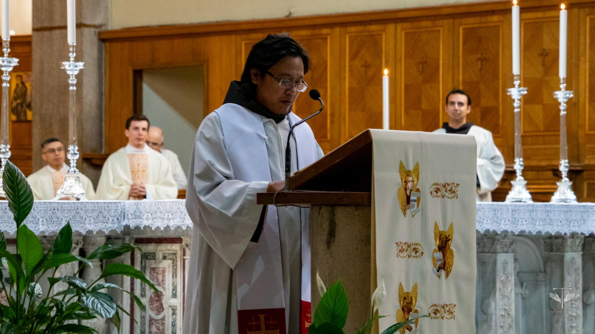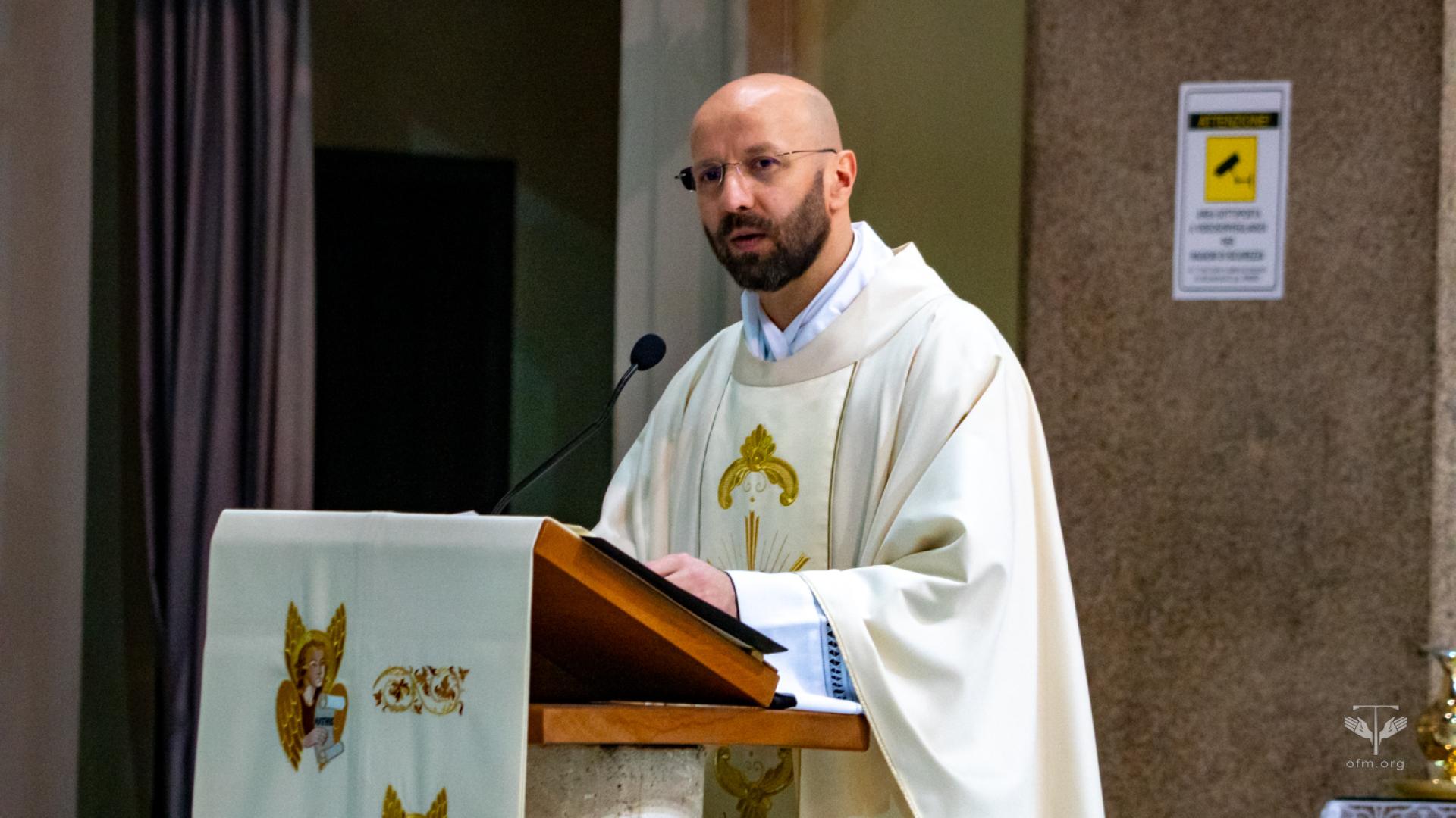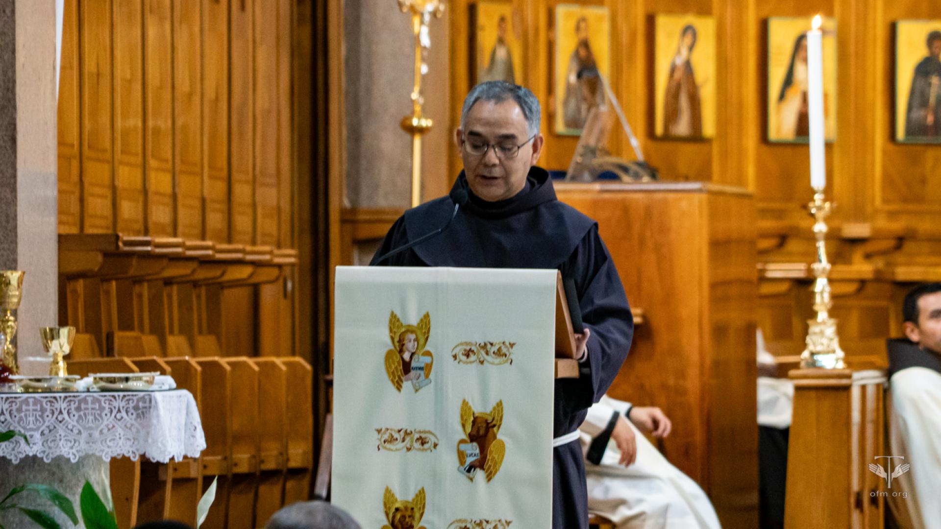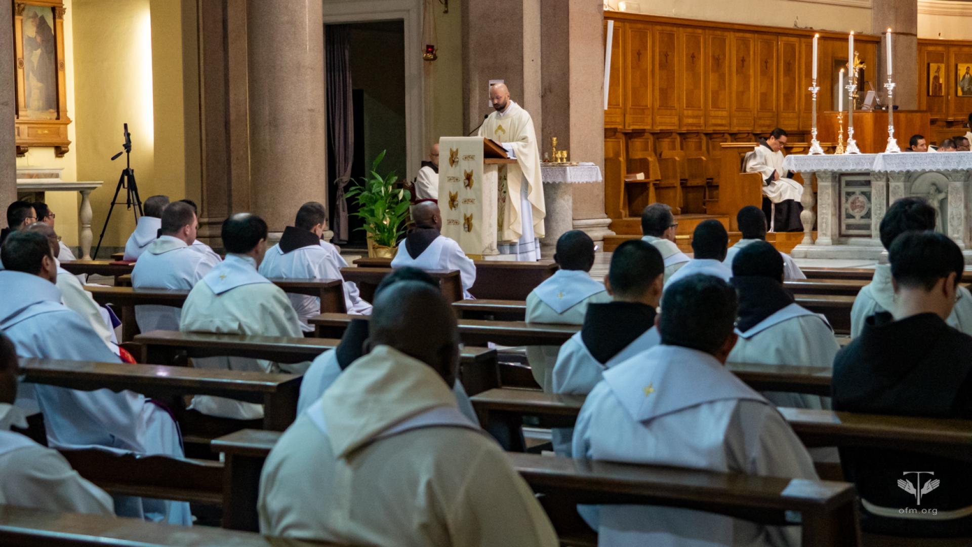 All'inizio della celebrazione il rettore Fr. Angel Montoya ha letto il saluto del Ministro Generale Fr. Massimo Fusarelli. Nel suo messaggio ha detto ai frati: “Desidero ricordarvi la forza mite e incrollabile di questo umile frate minore, che ha attraversato il mondo a partire dal suo piccolo villaggio, per diventare eco e presenza della parola di salvezza del Vangelo”. Ha concluso il saluto dicendo: “Con questi sentimenti vi auguro una buona celebrazione e un bel momento fraterno, perché l'esempio del Beato Gabriele Maria continui a ispirare il tempo che trascorrete a Roma per gli studi, senza mettere tra parentesi la vita evangelica dei frati minori, che è la nostra vocazione e la sorgente della nostra vera gioia, da restituire a molti quando rientrerete nelle vostre Entità”.