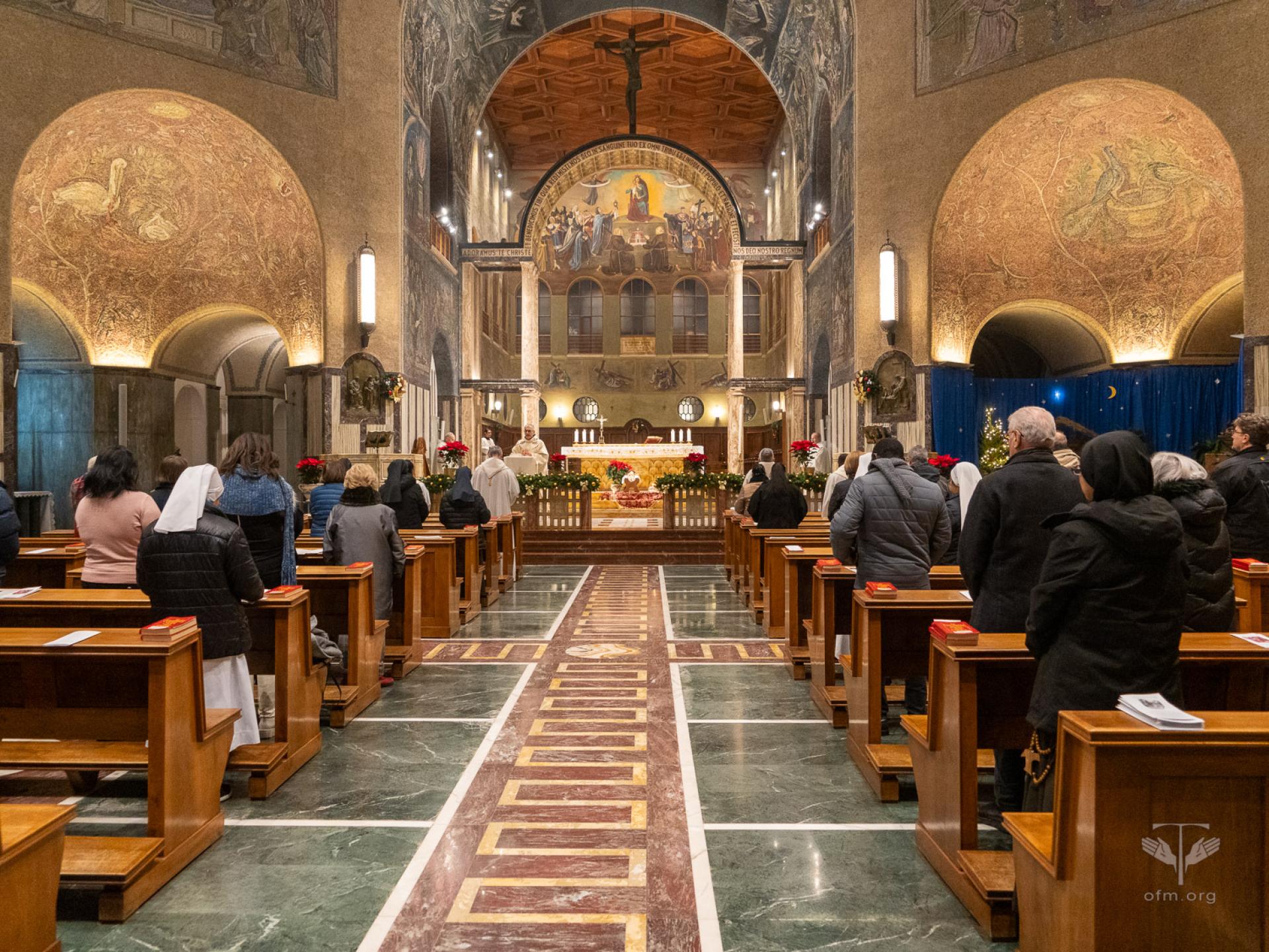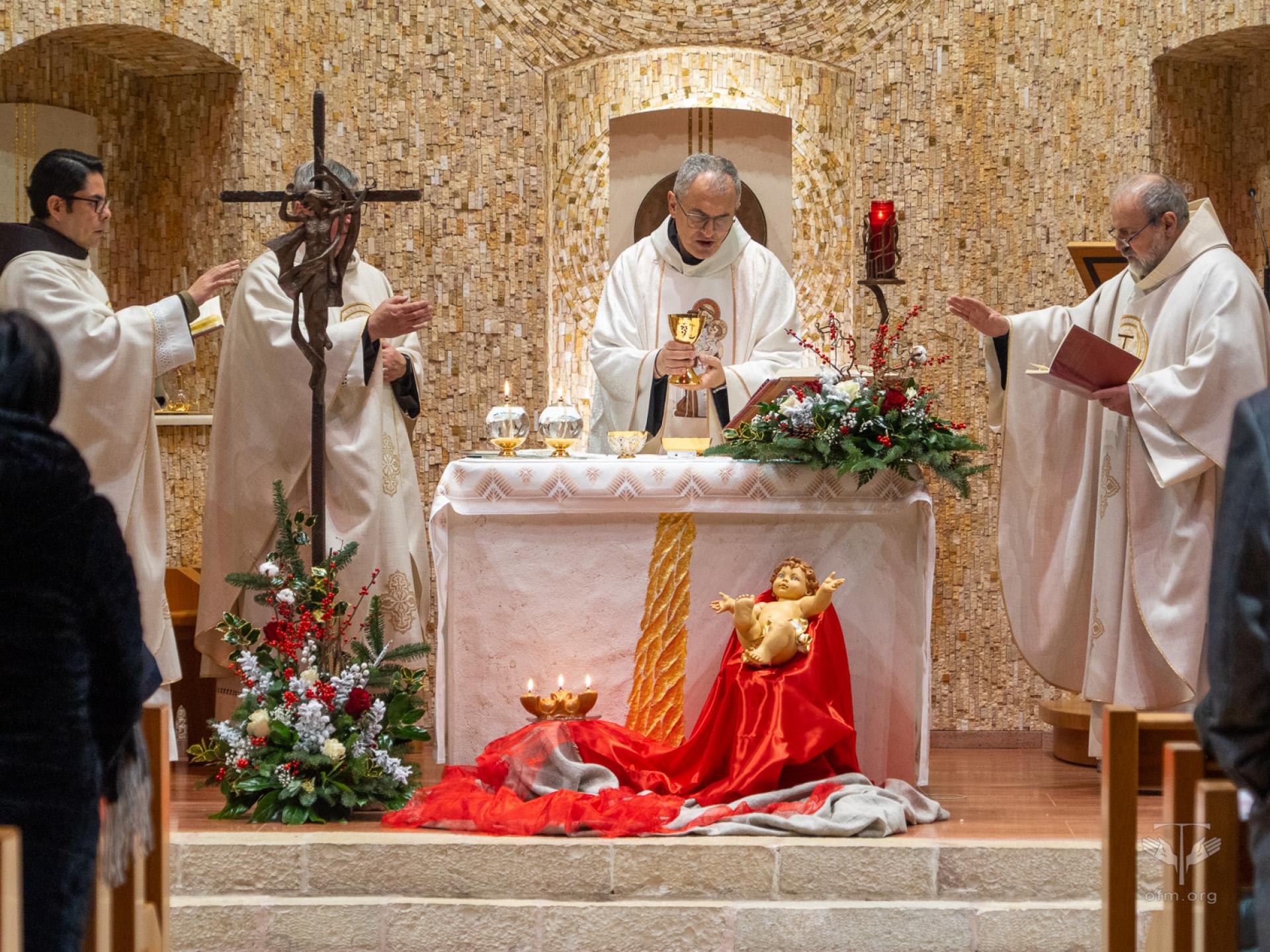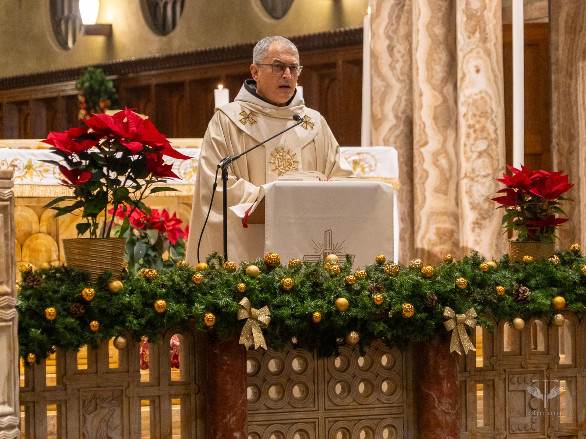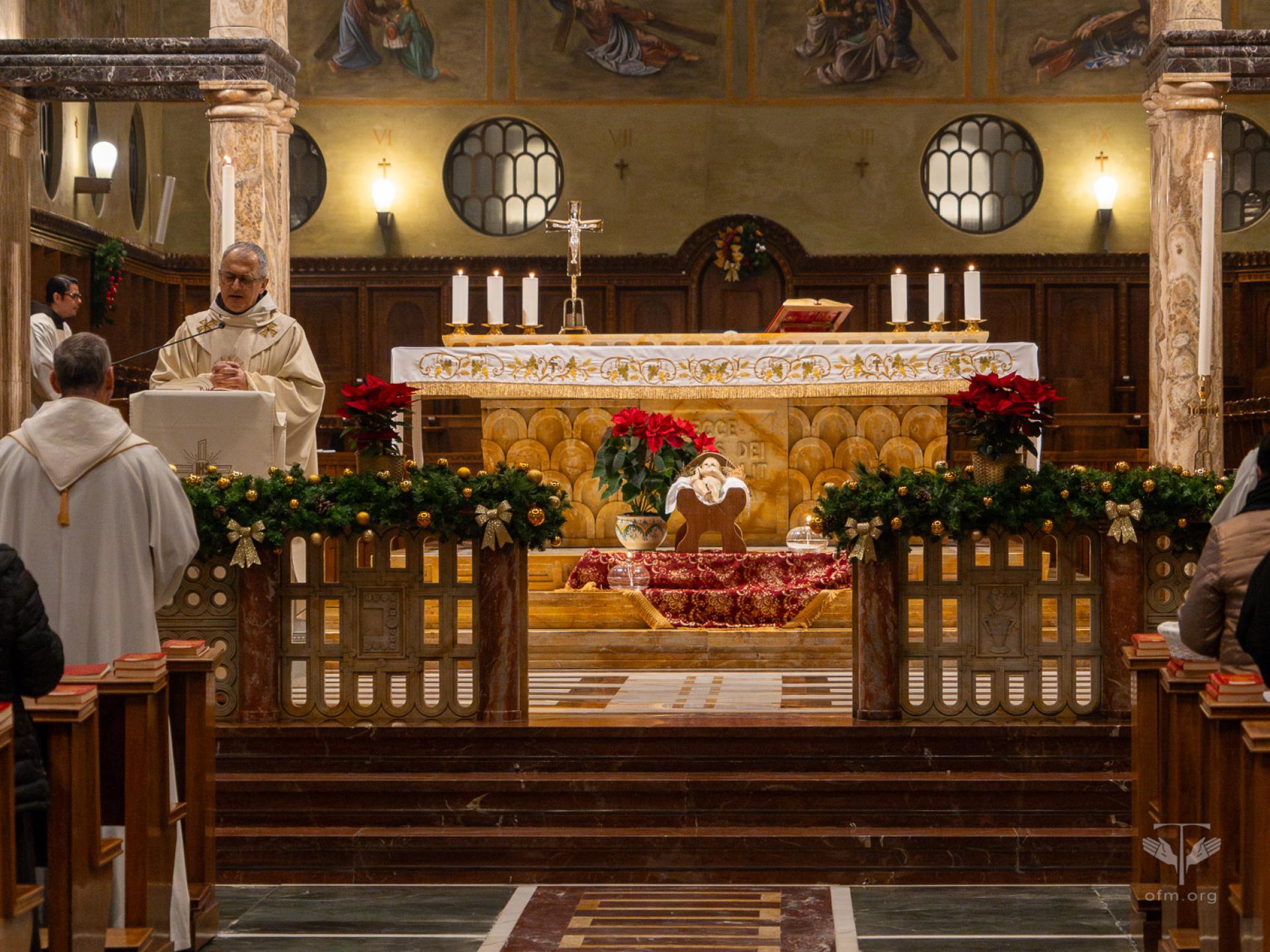 Il 24 dicembre Fr. Massimo Fusarelli ha presieduto la Messa della Vigilia di Natale nella Chiesa di Santa Maria Mediatrice della Curia Generalizia, alla quale hanno partecipato frati della Curia, suore di diverse congregazioni e fedeli che frequentano la chiesa. Nella sua omelia, il Ministro generale ha evidenziato la “Luce” come chiave della liturgia della veglia. Ha iniziato parlando di San Paolo che si rivolge a Tito dicendo che la grazia di Dio è come una luce di amore e di salvezza che brilla nell'attesa di una gloria definitiva. Nel Vangelo ha detto che i pastori sono sorpresi da una luce inaspettata che illumina la loro notte e la loro dura vita, una luce che guida e dà speranza senza sopraffare. “Oggi: ci è detto allora che proprio in mezzo alle tenebre della pace perduta, della tenerezza delle relazioni che si sgretolano; in mezzo al buio di violenze e di non senso che ci sembravano forse archiviati una volta per tutte. In mezzo a tutto, ciò già splende una luce”.