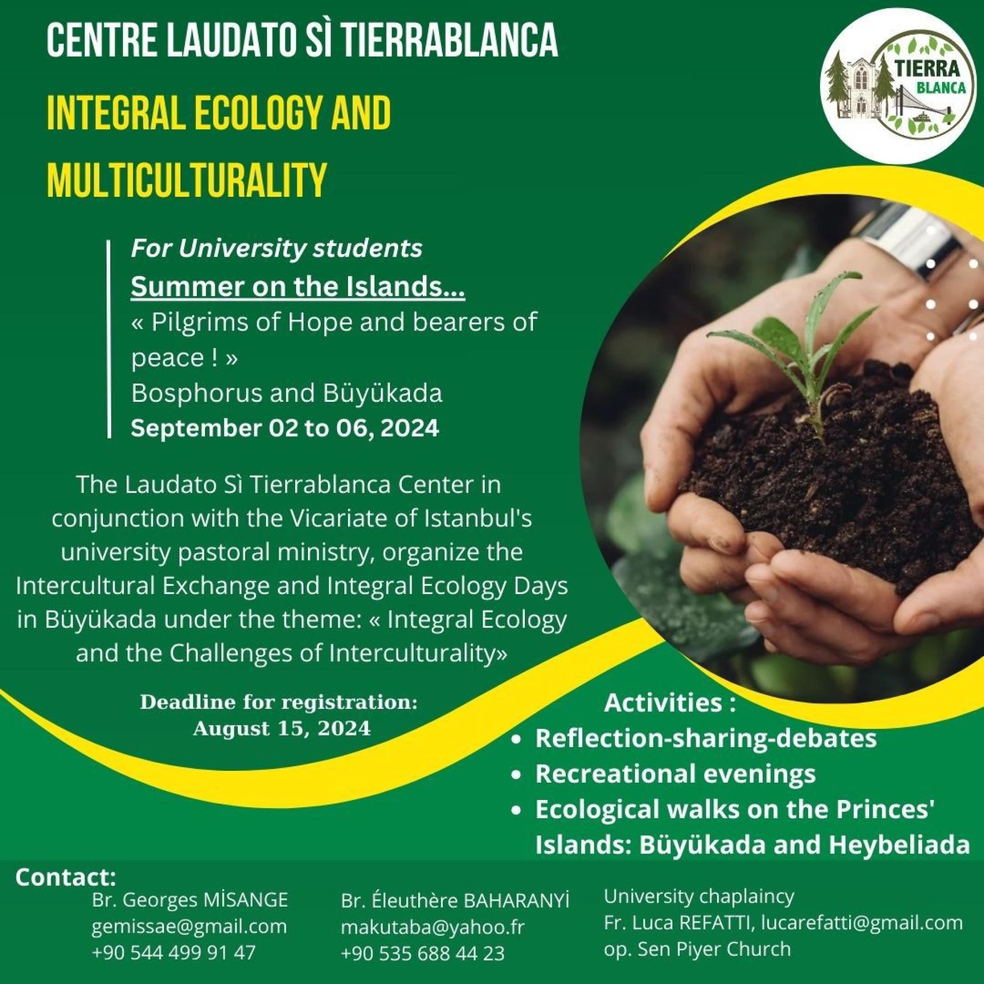 Dal 2 al 6 settembre 2024 si è tenuto un incontro degli studenti del Vicariato Apostolico di Istanbul su iniziativa del “Centro Laudato sì Tierreblanca, ecologia integrale e interculturalità” dei Frati Minori di Santa Maria Draperis, in collaborazione con la pastorale universitaria di cui fa parte Fr. Georges Misange OFM, della Fraternità internazionale per il dialogo di Istanbul. All’incontro hanno partecipato 33 giovani che studiano in Turchia (ad Istanbul, Ankara e Karabük, ma che provengono da diversi paesi (Benin, Burundi, Camerun, Ciad, Costa d’Avorio, Gabon, Indonesia, Iran, Iraq, Libano, Tanzania, Repubblica Democratica del Congo, Ruanda, Sud Sudan).
