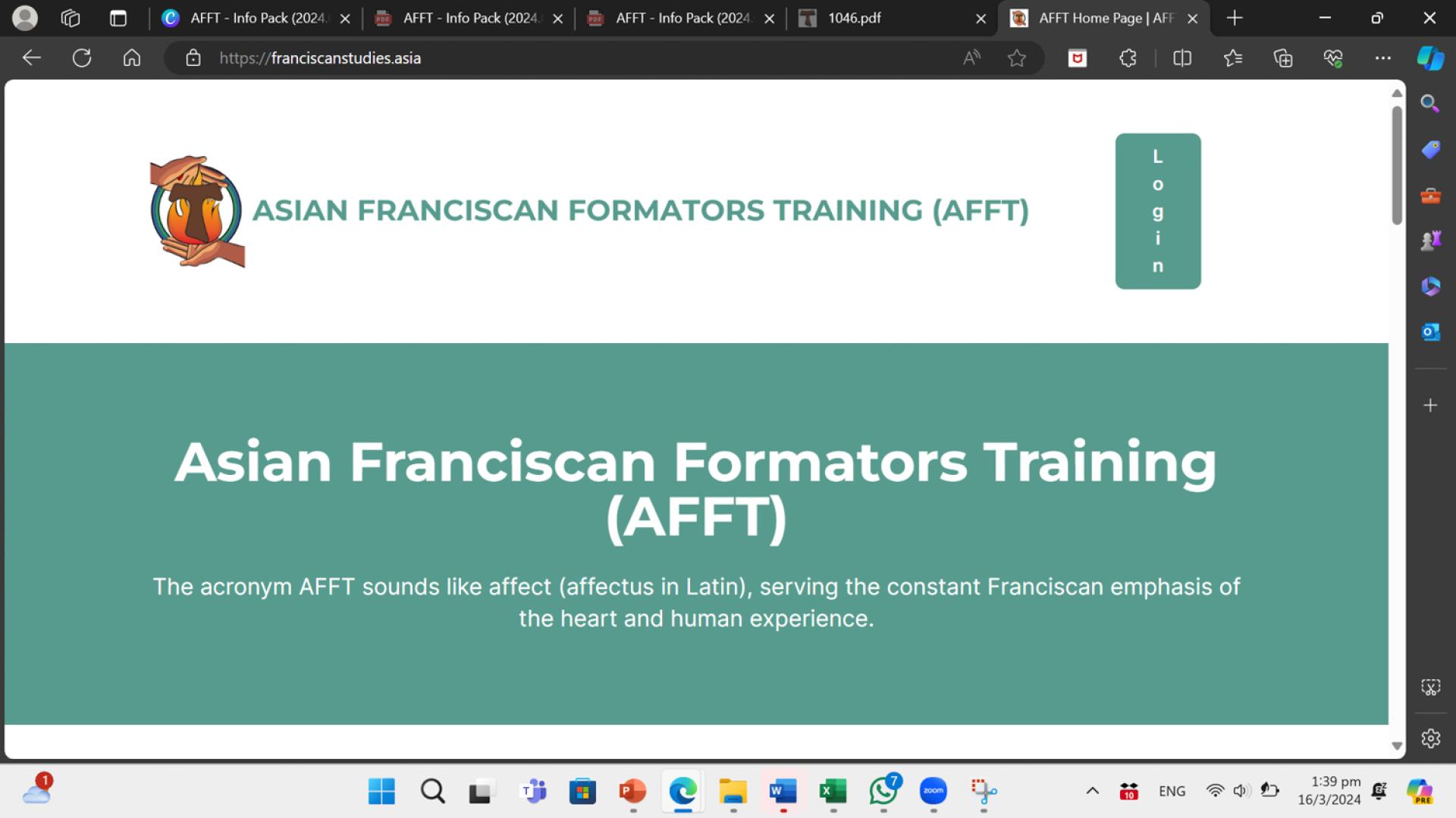 L’11 marzo è stato lanciato il programma Asian Franciscan Formators Training (AFFT) con la diffusione del video introduttivo del primo modulo. Questo corso per formatori è stato proposto e approvato dai Ministri della FCAO (Conferenza Francescana dell’Asia-Oceania) nel maggio 2023.