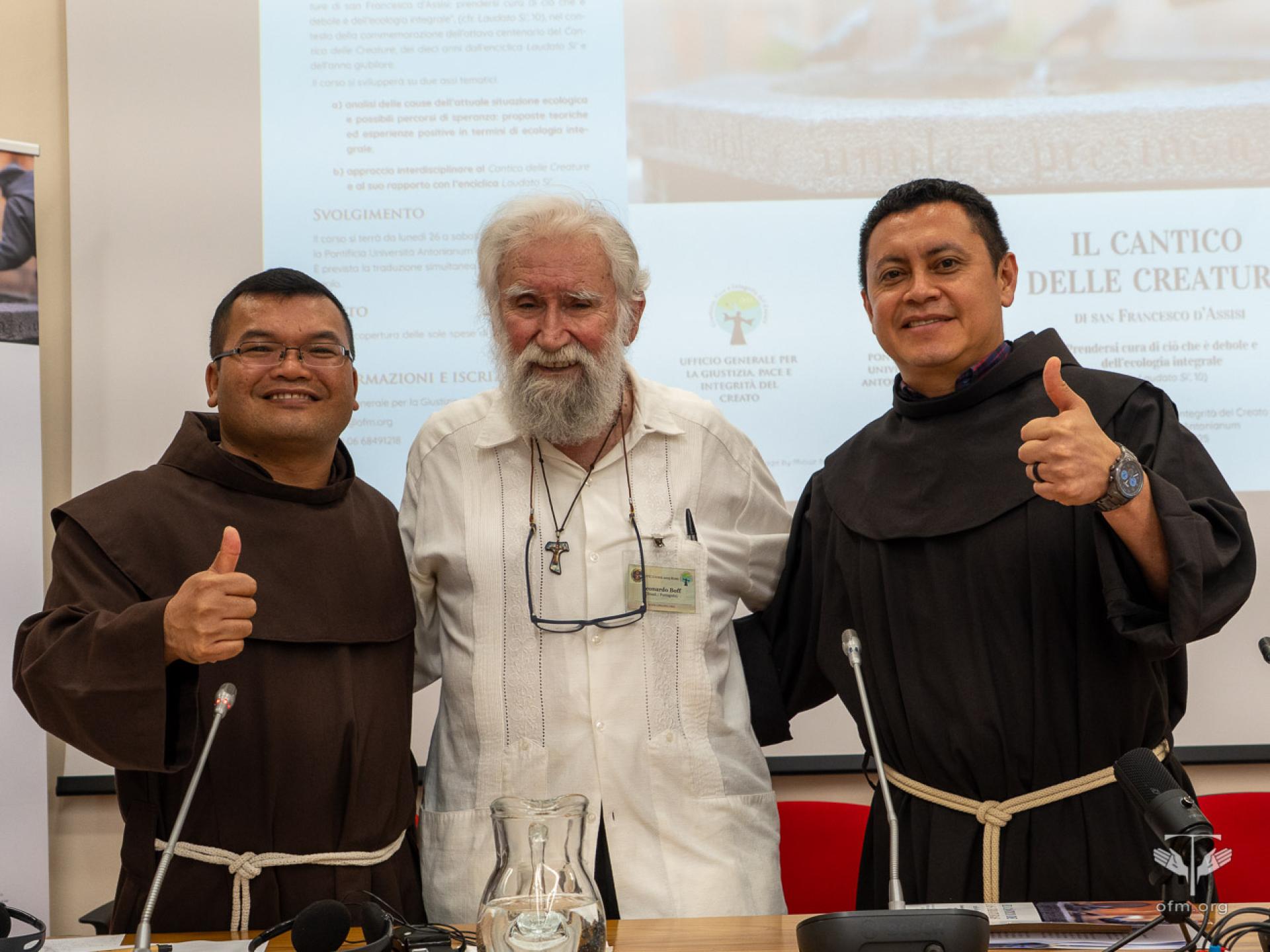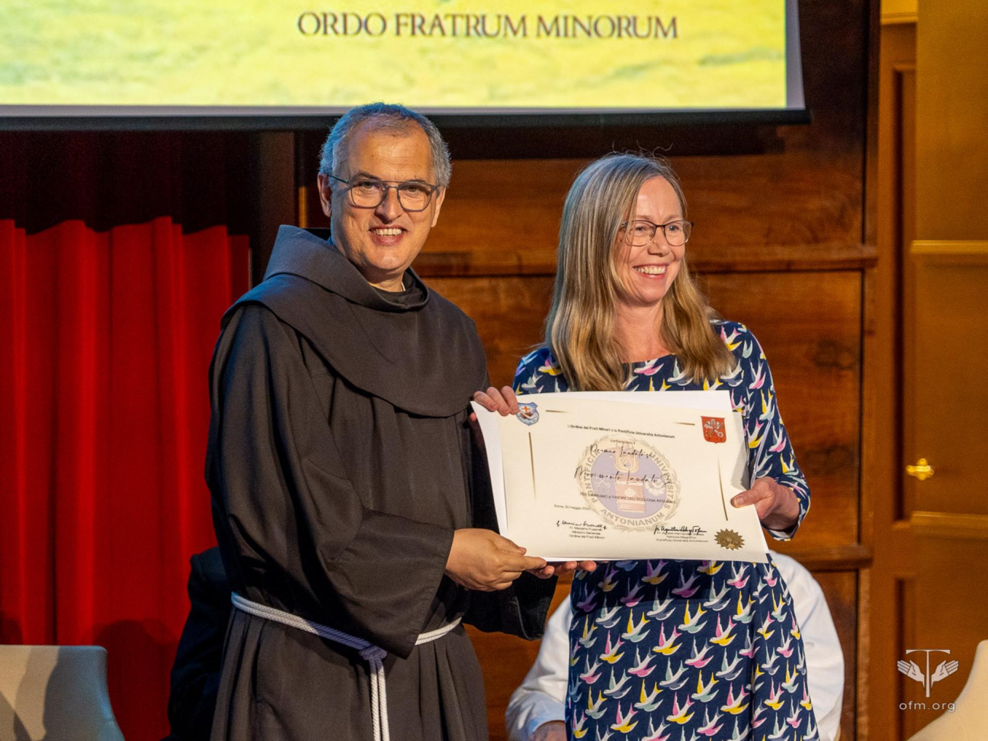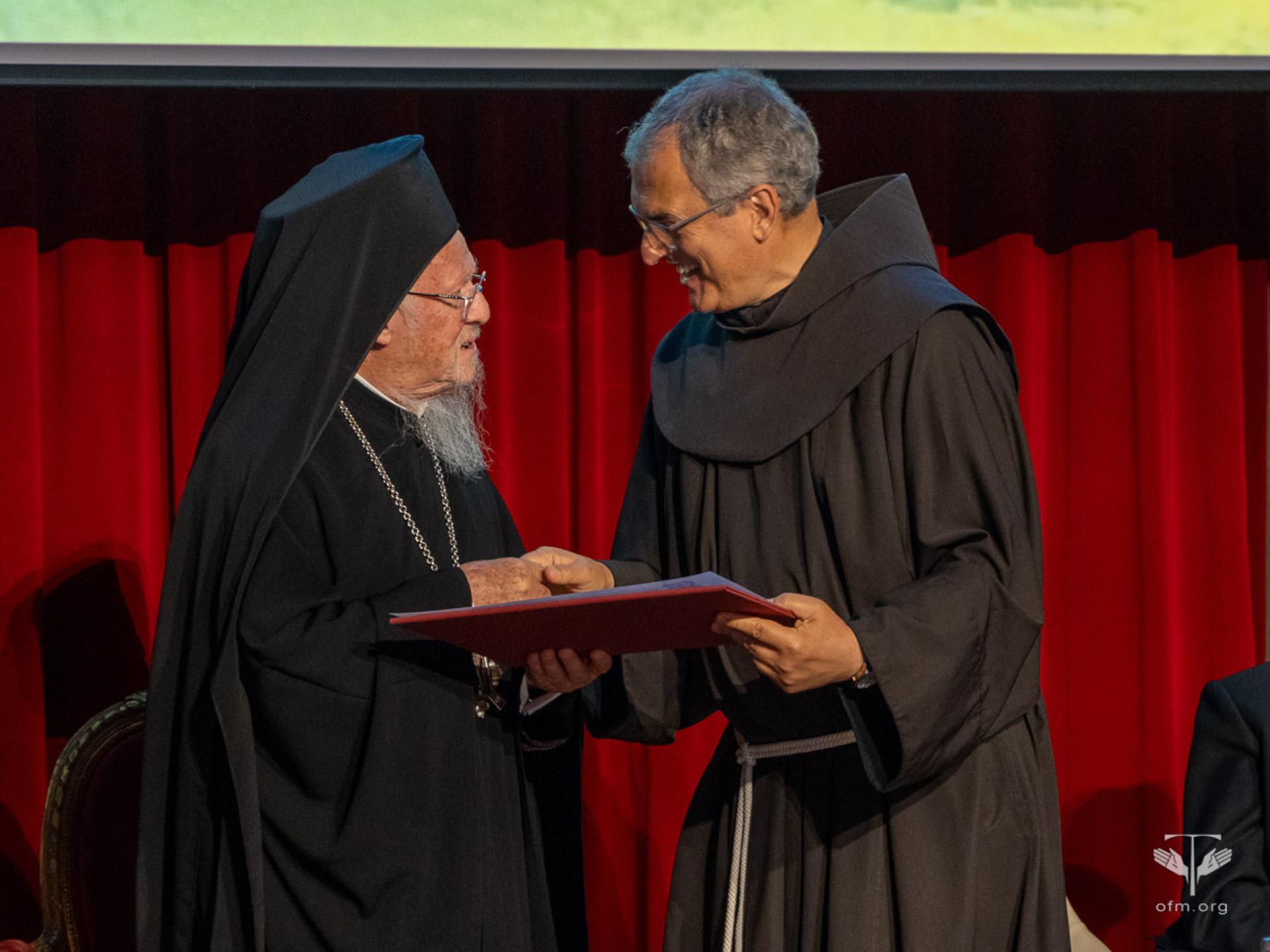 Venerdì 30 maggio l’Ordine dei Frati Minori e la PUA, nella persona di Fr. Massimo Fusarelli, Ministro generale dell’OFM e Gran Cancelliere della PUA, hanno conferito un riconoscimento a persone e istituzioni che si sono distinte per il loro impegno a favore dell’ecologia integrale. Si tratta del Patriarca Bartolomeo I, Leonardo Boff, la Rete Ecclesiale Panamazzonica, il Movimento Laudato Si’. “Cari premiati, voi non ricevete oggi solo un riconoscimento, ma se mi permettete di dire, avete una responsabilità ancora maggiore: continuare ad essere una voce profetica, in un mondo che spesso, troppo spesso, preferisce il profitto al bene comune. A tutti voi rivolgo allora questo invito finale: tornate per favore alle vostre comunità, portando con voi il seme della conversione ecologica integrale. Che il Cantico delle Creature risuoni nelle nostre case, che la Laudato si' ispiri le nostre scelte quotidiane, anche piccole. Il futuro della terra, dono di Dio, è anche nelle nostre mani, ma soprattutto nei nostri cuori”, ha detto Fr. Massimo al termine della consegna dei premi.