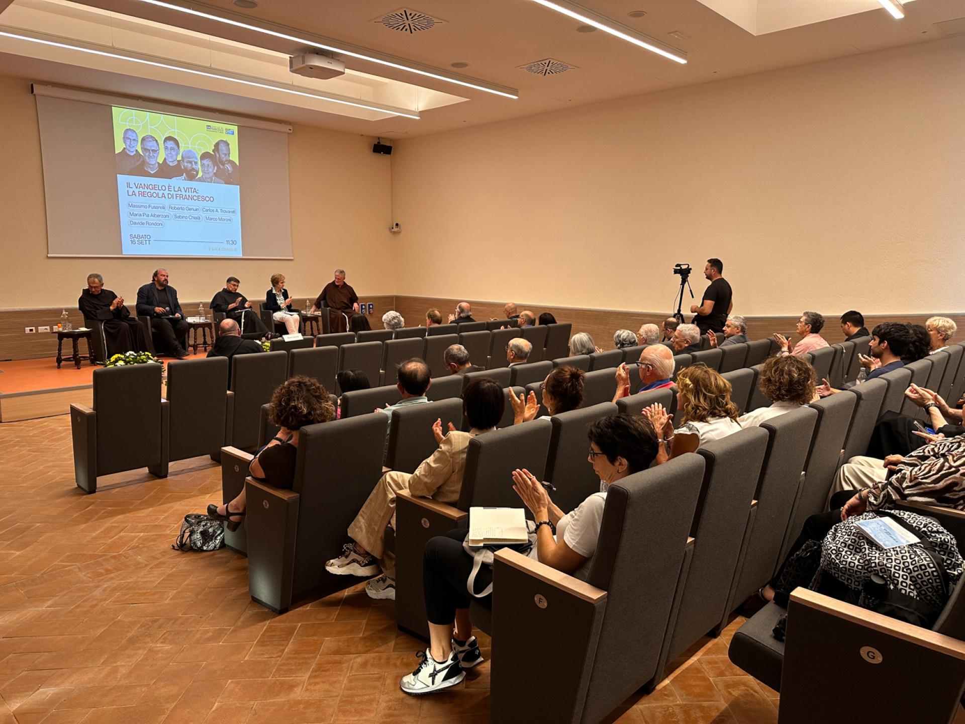 Sabato 16 settembre, nel Sacro Convento di San Francesco ad Assisi, si è tenuta una tavola rotonda sul tema "Il Vangelo è vita: la Regola di Francesco", che ha visto la partecipazione dei tre Ministri generali: Fr. Massimo Fusarelli dell'Ordine dei Frati Minori, Fr. Roberto Genuin dell'Ordine dei Frati Minori Cappuccini e Fr. Carlos Alberto Trovarelli dell'Ordine dei Frati Minori Conventuali. All’incontro, moderato da don Marco Moroni, custode del Sacro Convento, hanno partecipato anche la professoressa Maria Pia Alberzoni, storica ed esperta di francescanesimo, e lo scrittore Davide Rondoni.