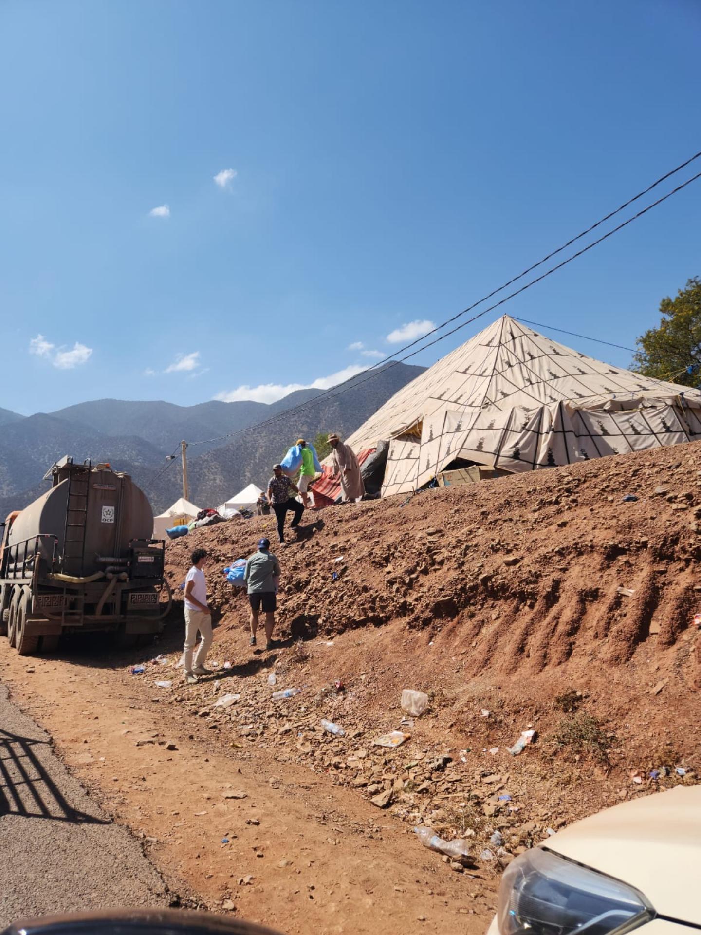 Lunedì 11 settembre abbiamo organizzato il primo convoglio umanitario sulle montagne del Basso Atlante. Siamo saliti con quattro veicoli carichi di beni di prima necessità, cibo, vestiti, articoli da toilette e prodotti per l'igiene personale, tende, generatori elettrici... La strada verso la montagna è stata davvero triste nel vedere come la distruzione aumentasse man mano che ci si avvicinava all'epicentro del terremoto che ha colpito l'intera regione sull'asse Marrakech-Taroudant. Siamo arrivati in un primo villaggio che ci aspettava grazie ad alcuni contatti di membri della nostra comunità parrocchiale, dove abbiamo avuto il tempo di fermarci, di ascoltare, di condividere, di accompagnare alcuni malati all'ospedale da campo, di aiutare a montare le tende.