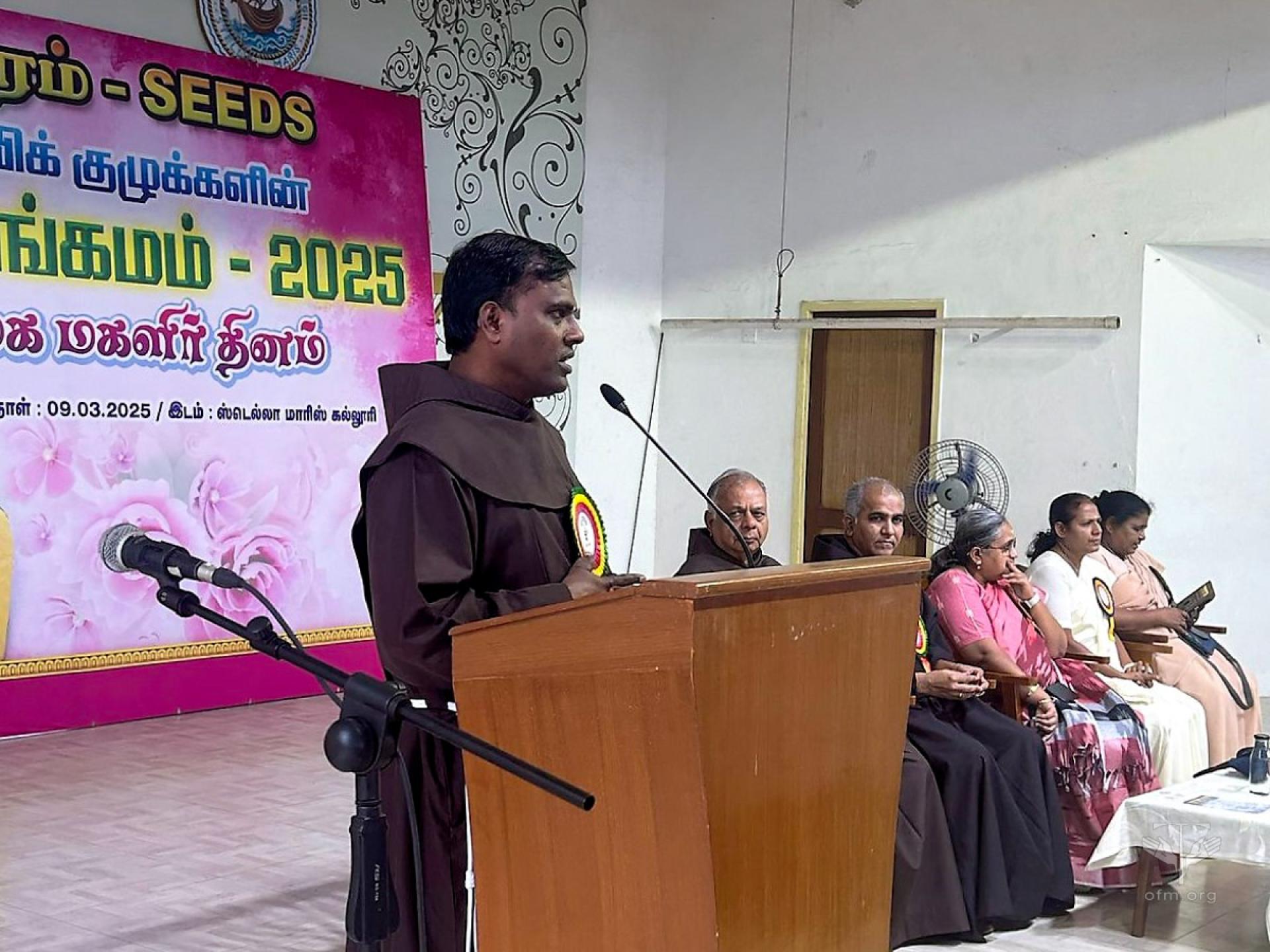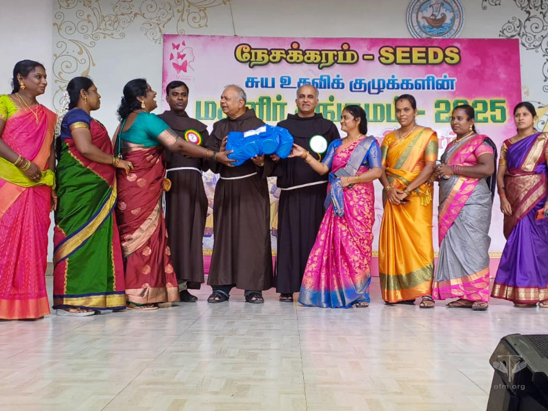 Br. Pushparaj Savarimuthu, the director of SEEDS, welcomed the gatherings and delivered the inaugural address. He was appreciative of the groups that were not taking loans from the banks and yet they have a sound financial footing through their savings. Friar Xavier Durairaj, OFM spoke on women empowerment and encouraged them to be Sakthi (Power) for transformation of the society. And the Advocate spoke of women’s right and their responsibilities from legal viewpoint to play a complementing role in the family and society.