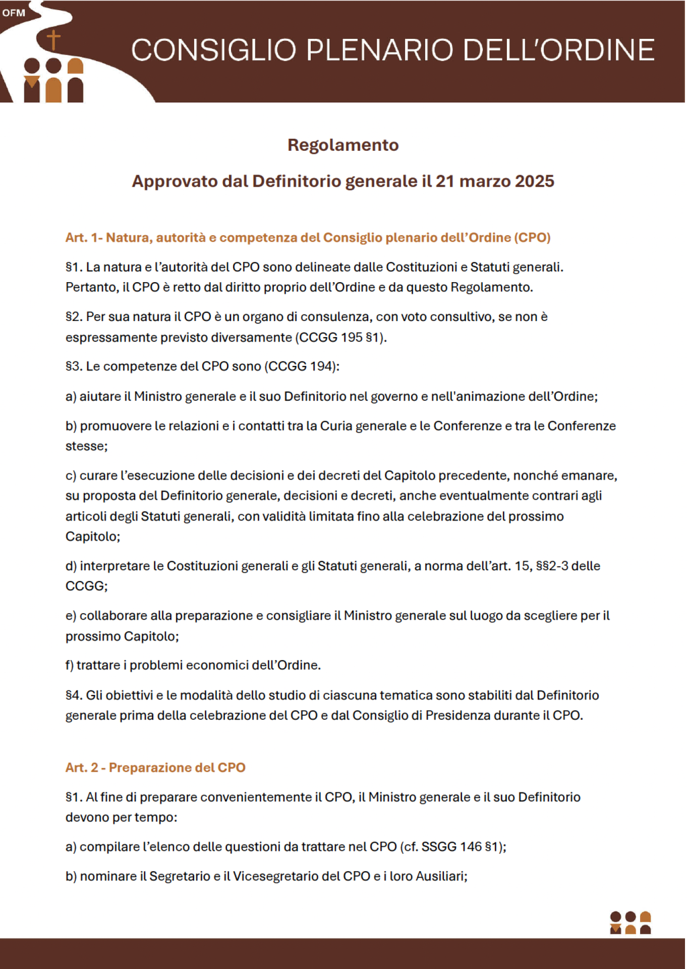 De hecho, después de la aprobación del Reglamento y la escucha del Ministro general, el primer paso del CPO será aprobar el texto del Documento final del CdE como propuesta para el Capítulo general de 2027.