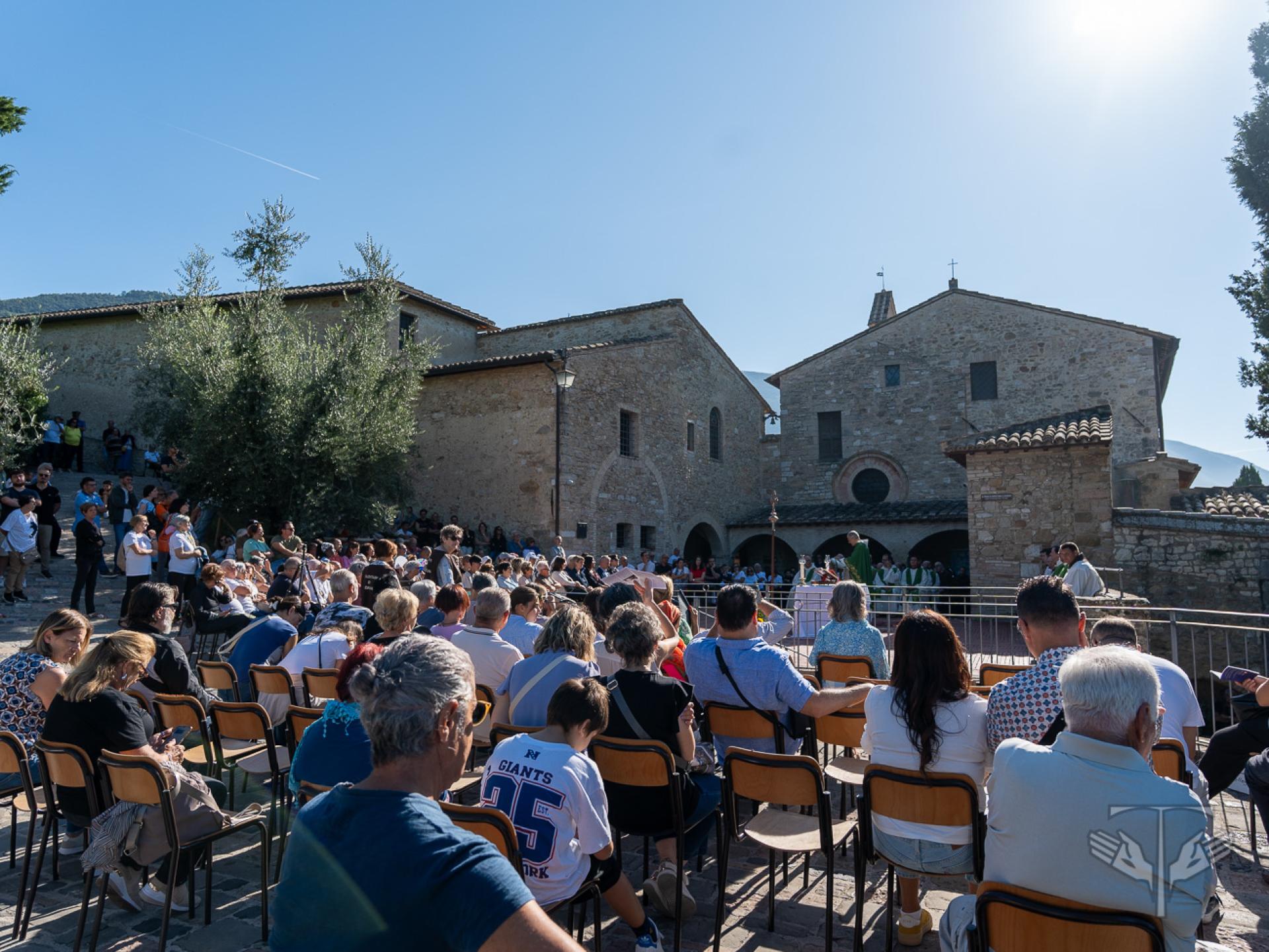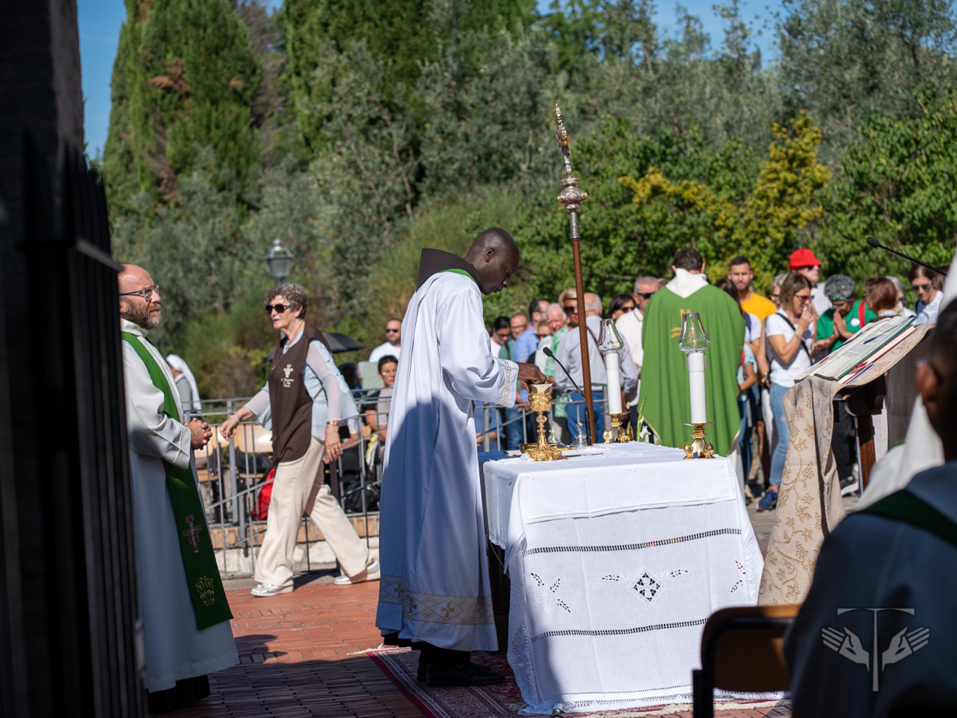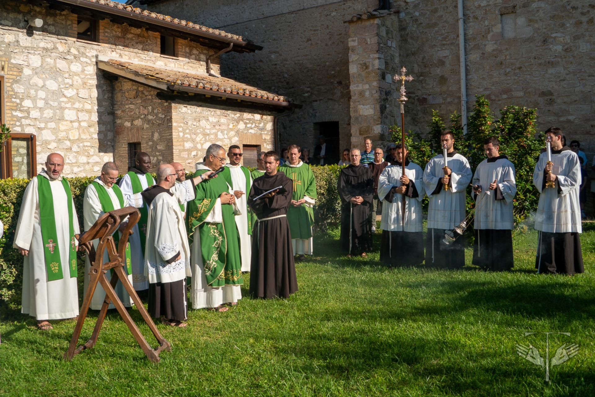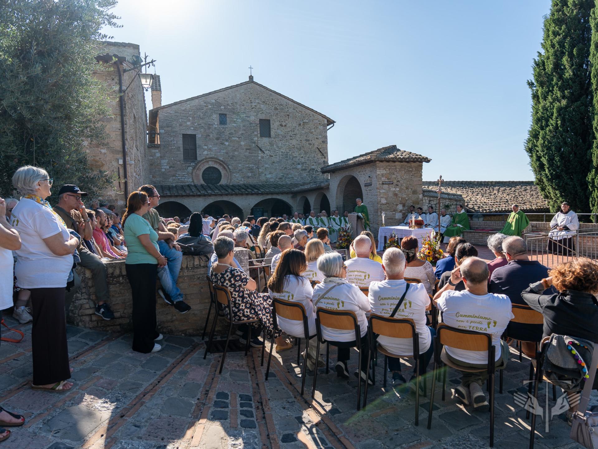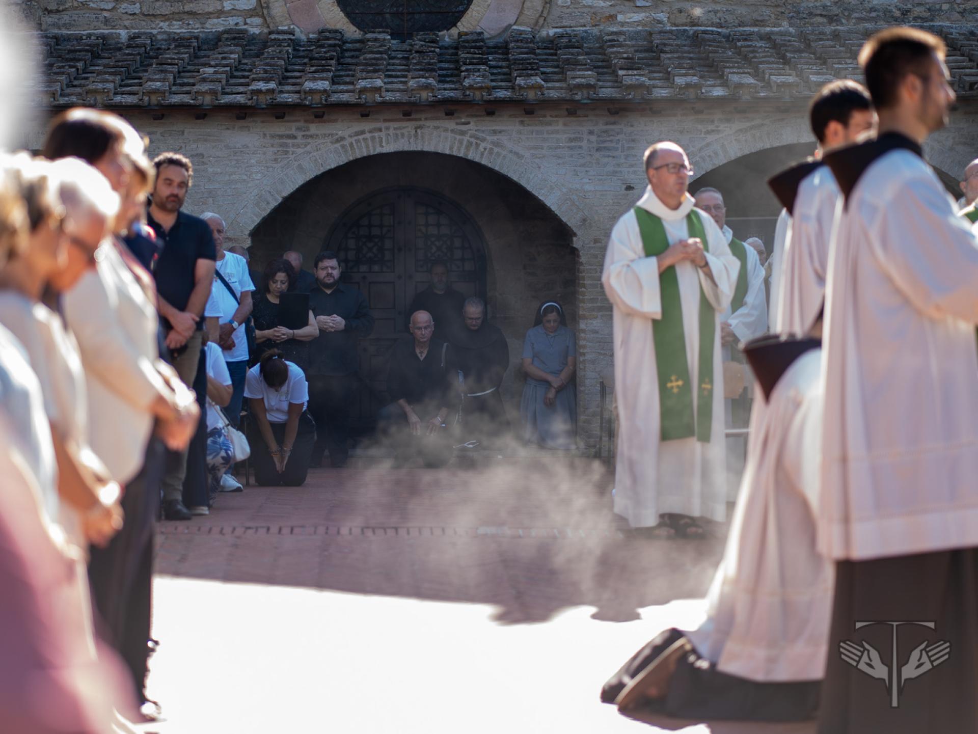 All’inizio della celebrazione è stato proclamato un brano dalle Fonti Francescane sulla composizione del Cantico, letto proprio nel Giardino del Cantico, là dove 800 anni fa San Francesco scrisse quei versi. Dopo la lettura, è partita la processione verso l’atrio della chiesa di San Damiano, dove si è celebrata l’Eucaristia sotto un sole luminoso che ha accolto tutti i partecipanti.
