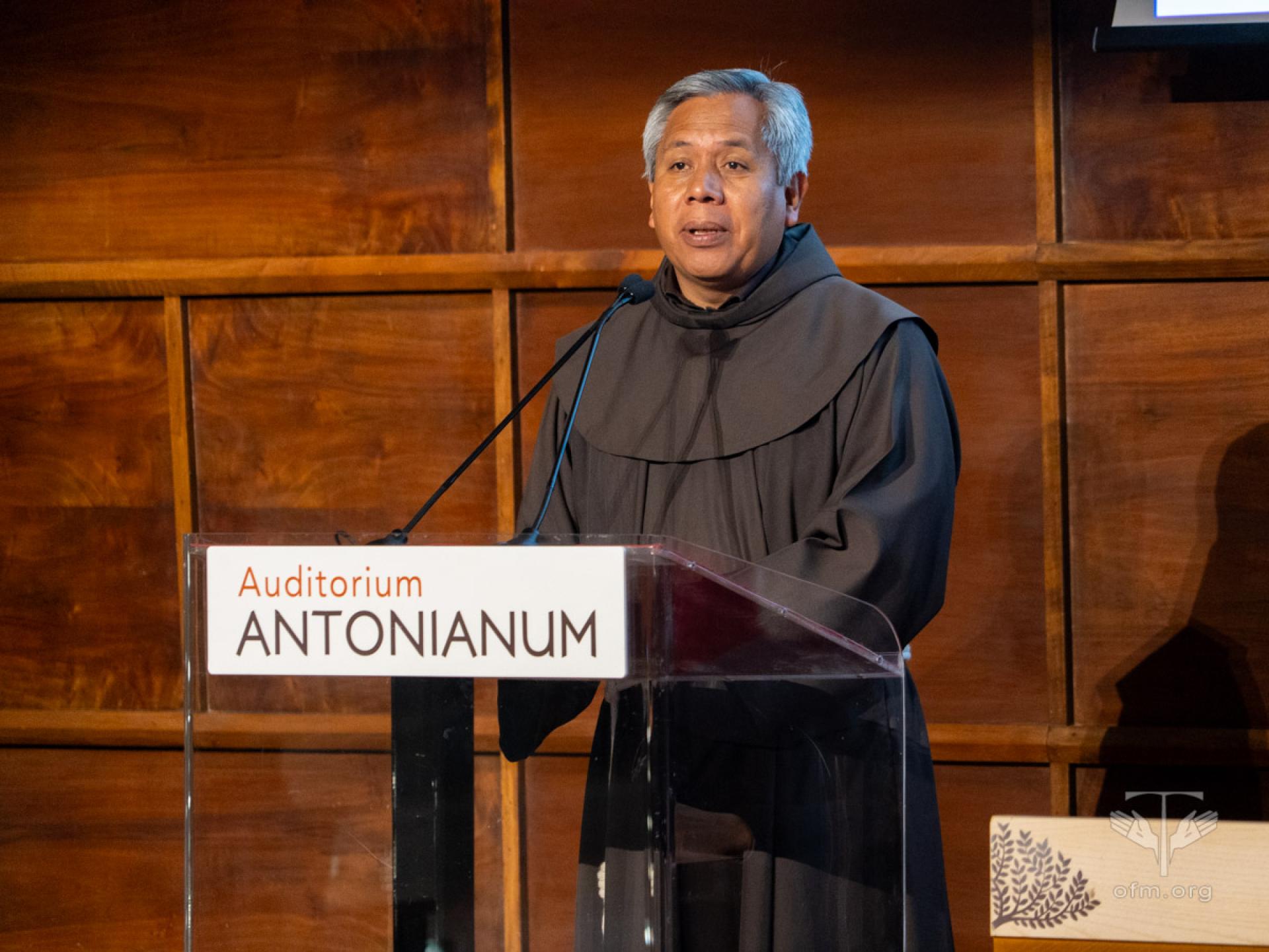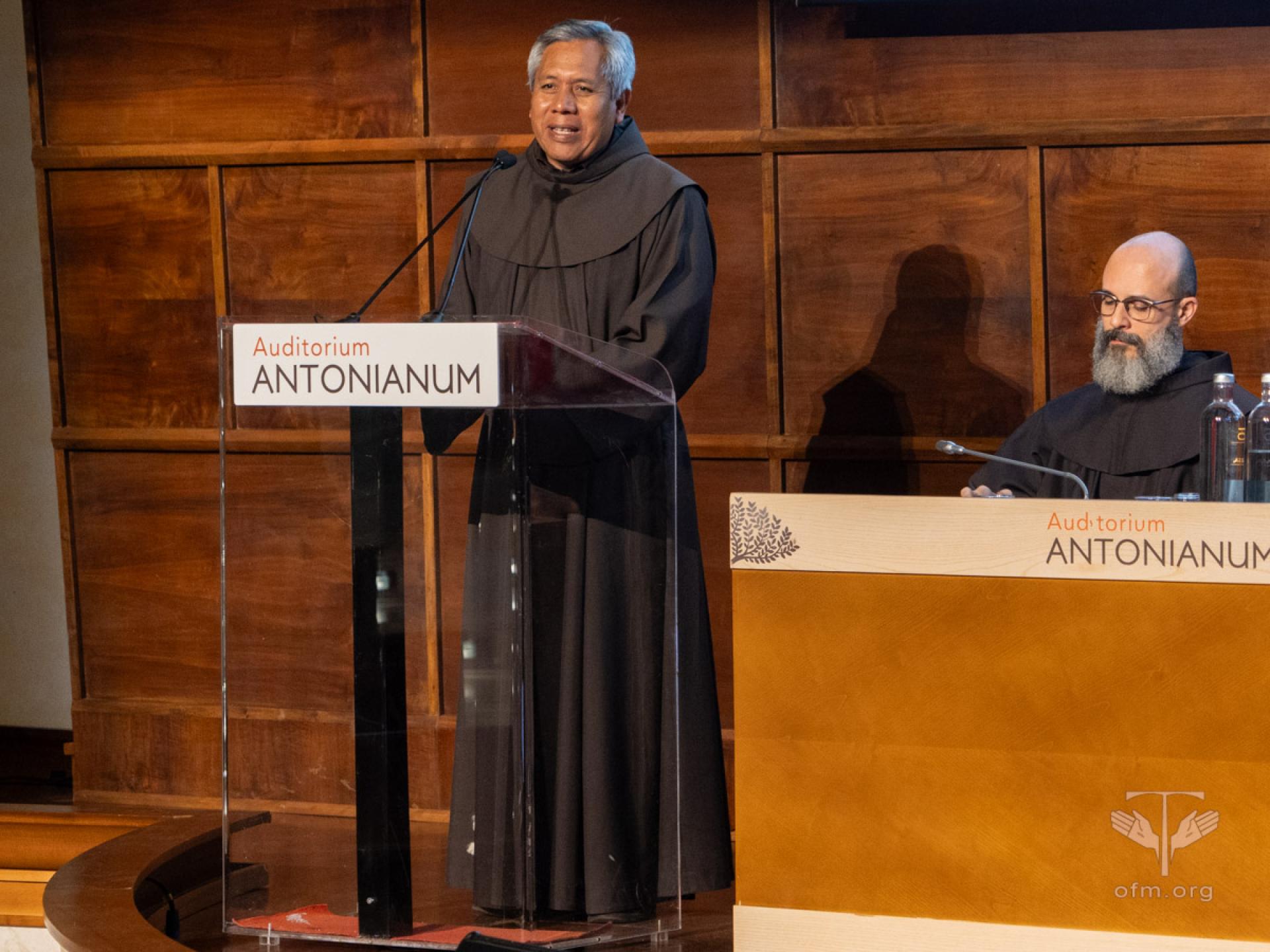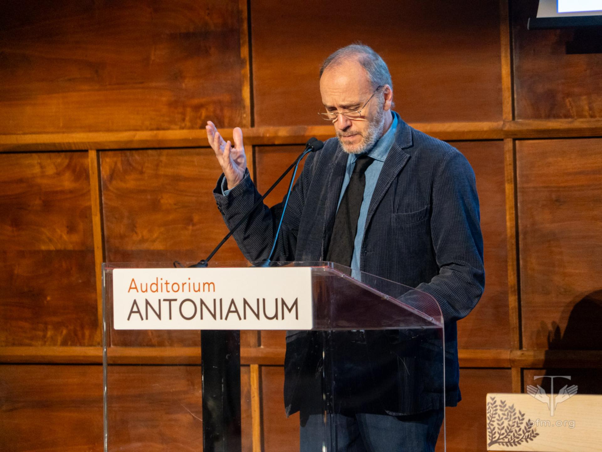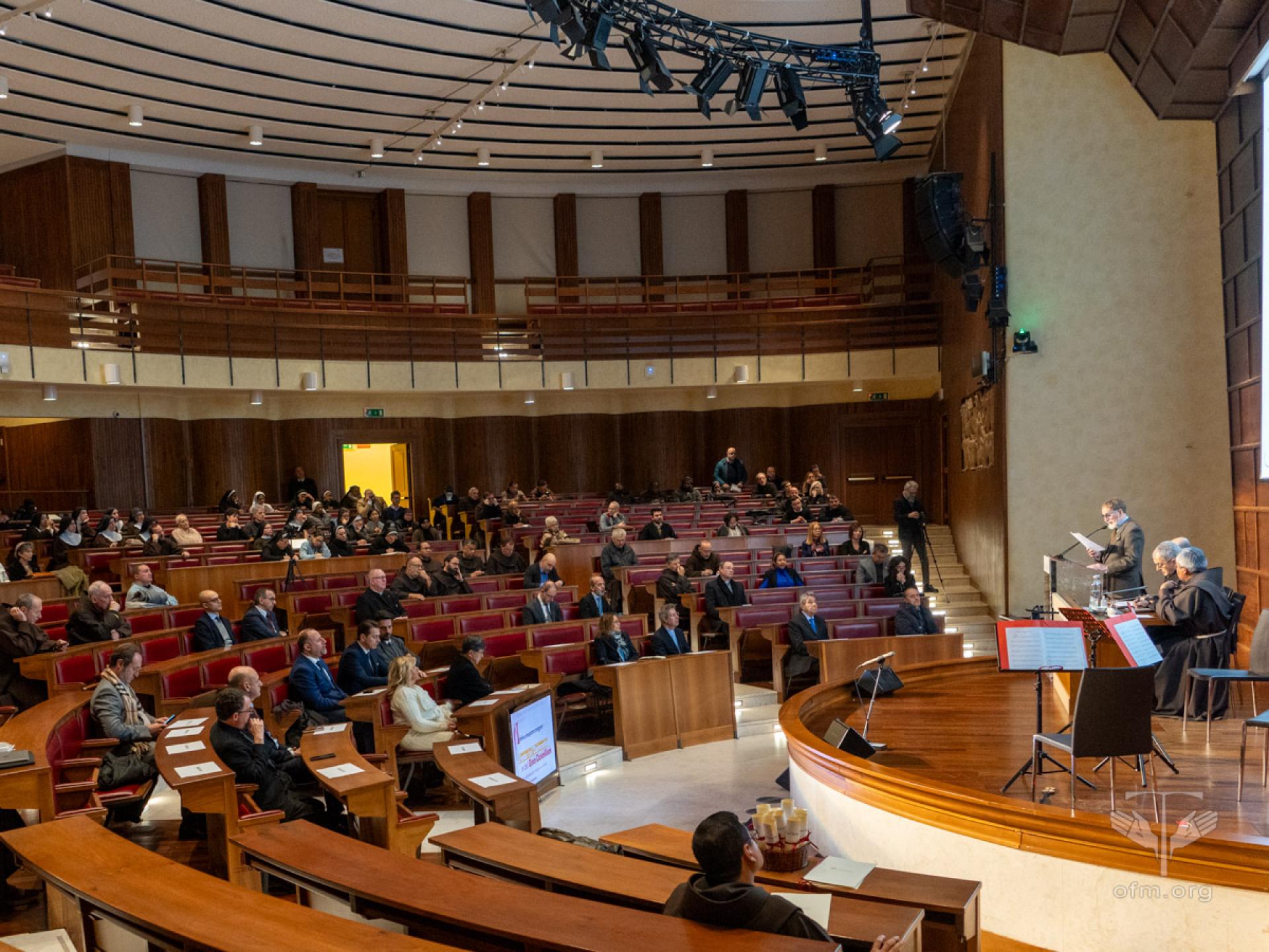 Dopo la prof.ssa Flavia Marcacci, dell’Università degli Studi di Urbino “Carlo Bo”, che ha affrontato il tema “Cielo e terra si incontreranno, natura e creazione si baceranno: dallo sguardo di Francesco allo sguardo dei filosofi della natura”, è intervenuto Fr. Massimo Fusarelli, Gran Cancelliere della PUA e Ministro generale dell’Ordine dei Frati Minori, con una relazione dal titolo “Il Cantico delle creature: nel gioco delle relazioni degli esseri viventi”.