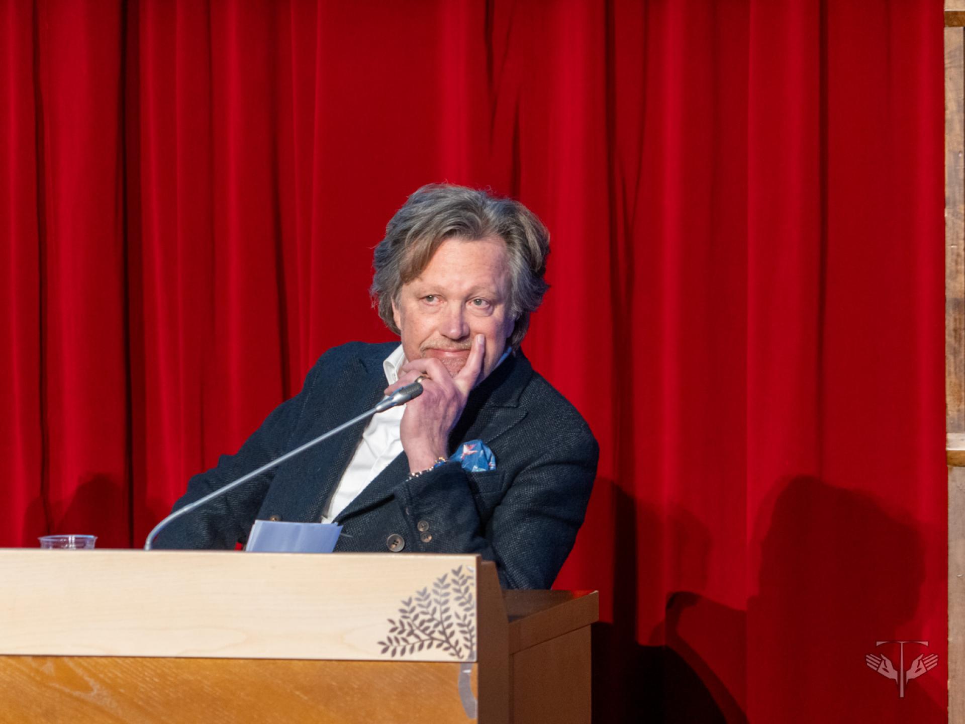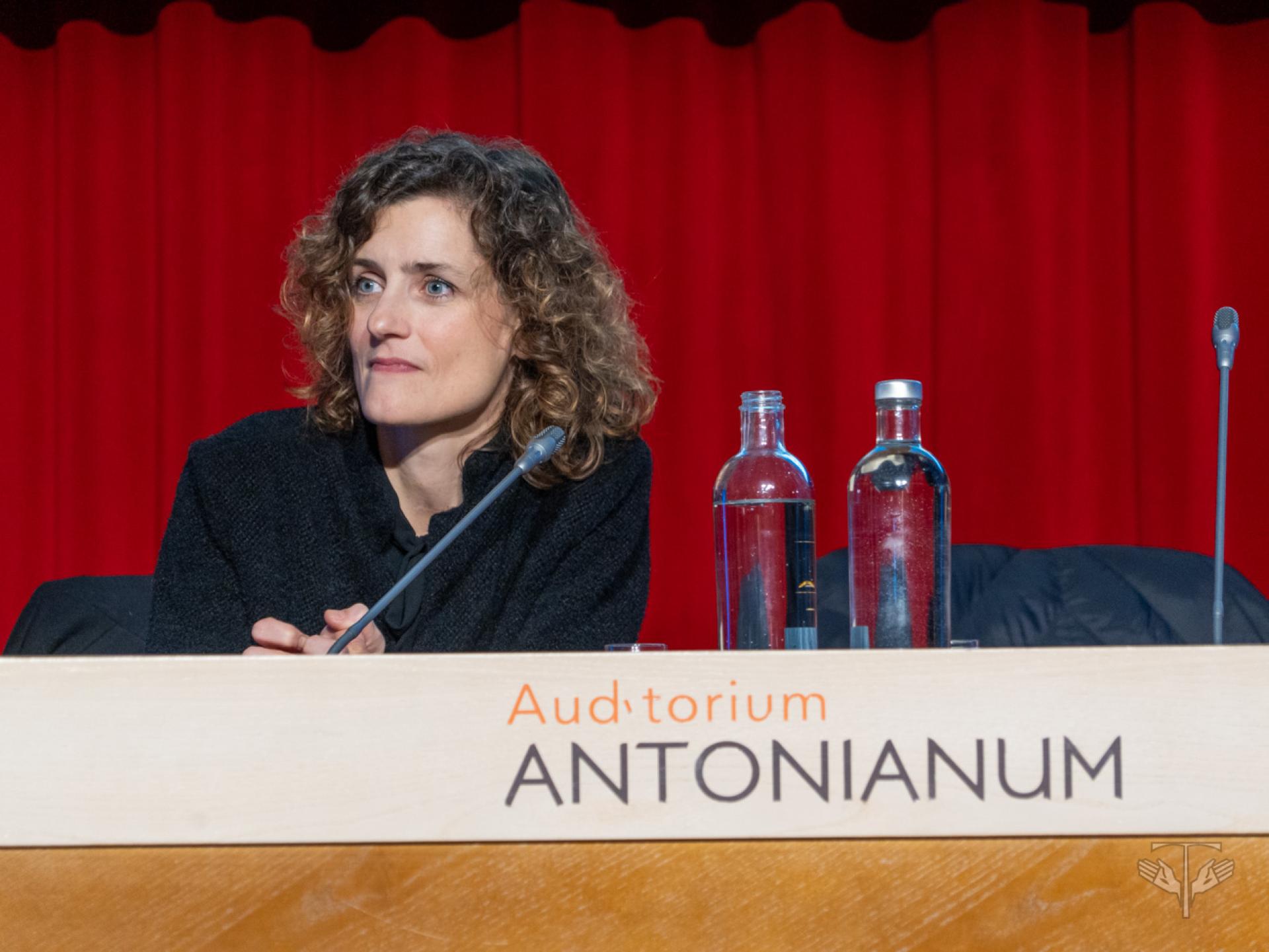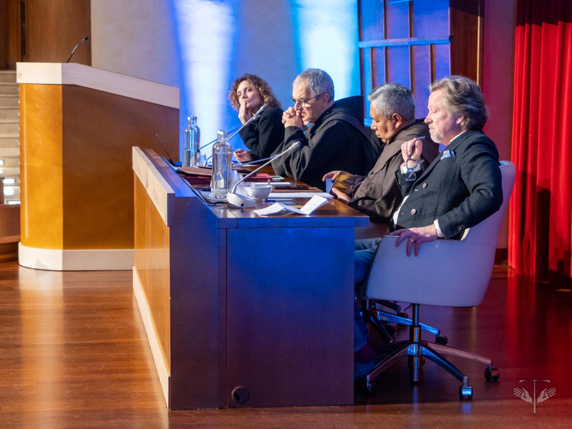 La parola è poi passata al prof. Daniele Menozzi, professore emerito della Scuola Normale Superiore, che ha tenuto una videoconferenza su “San Francesco d’Assisi nell’insegnamento di papa Francesco”, mettendo in luce come il Papa guardi al Poverello come figura esemplare di povertà, pace ed ecologia integrale. A seguire, l’artista Berger Mosbach ha presentato la sua opera “La Morte di San Francesco”, esposta al piano superiore dell’Università, raccontando come la testimonianza discreta e concreta dei frati, in particolare accanto ai più poveri, abbia ispirato il suo lavoro.