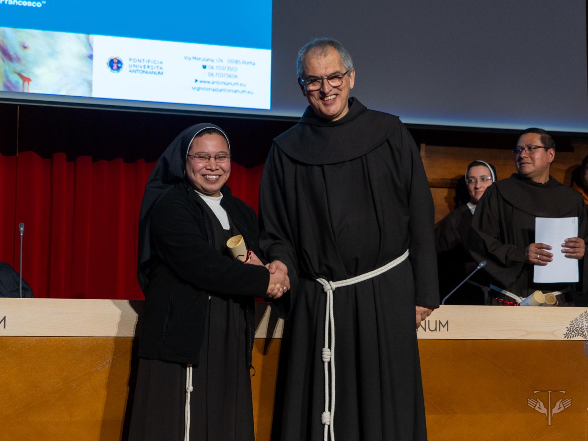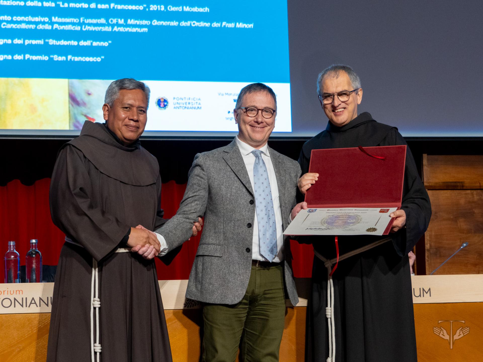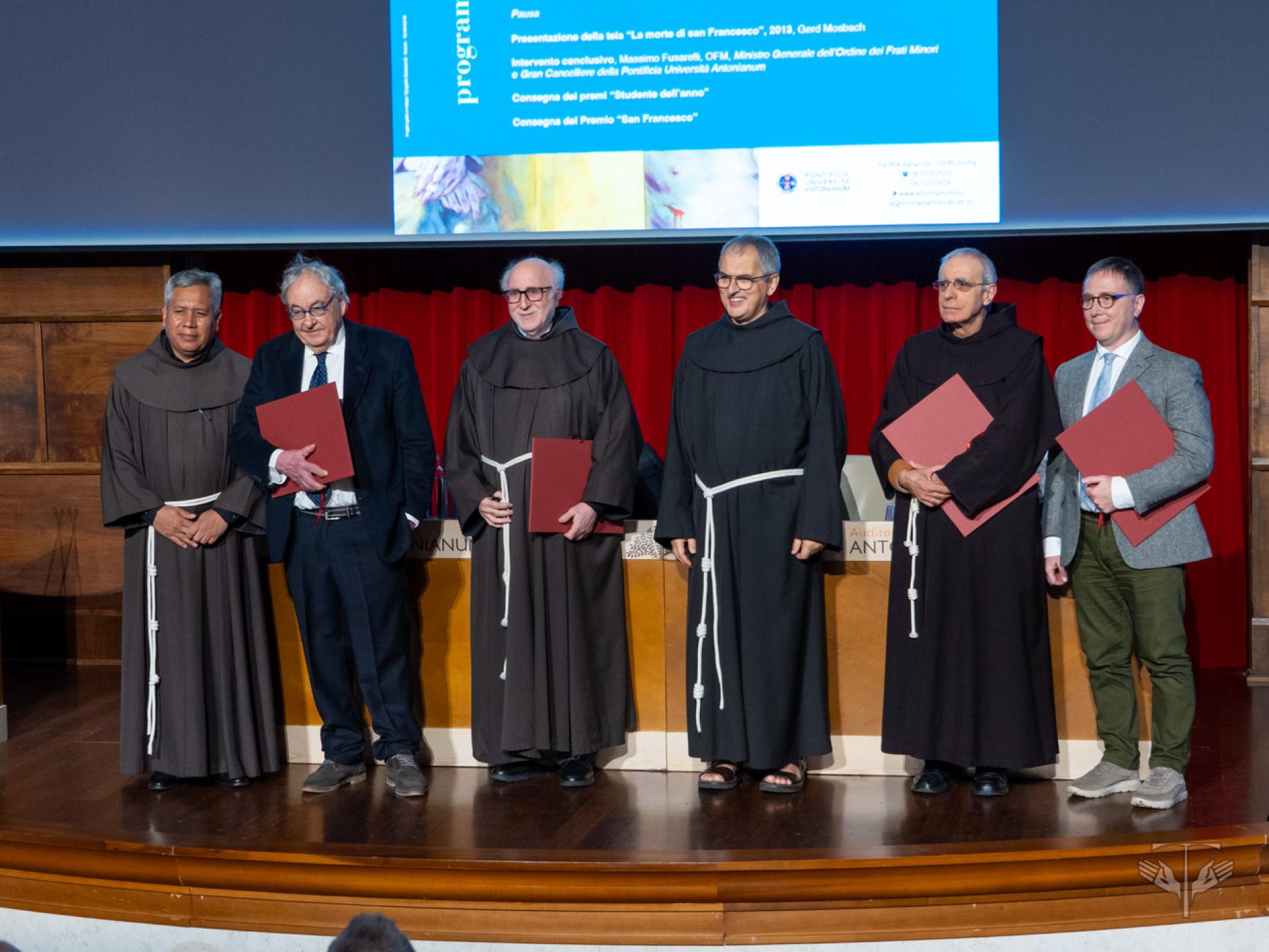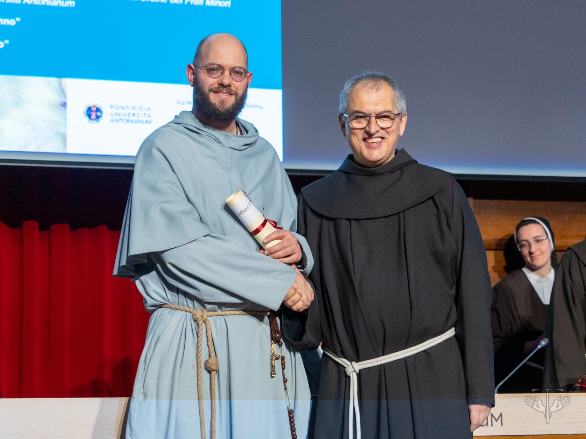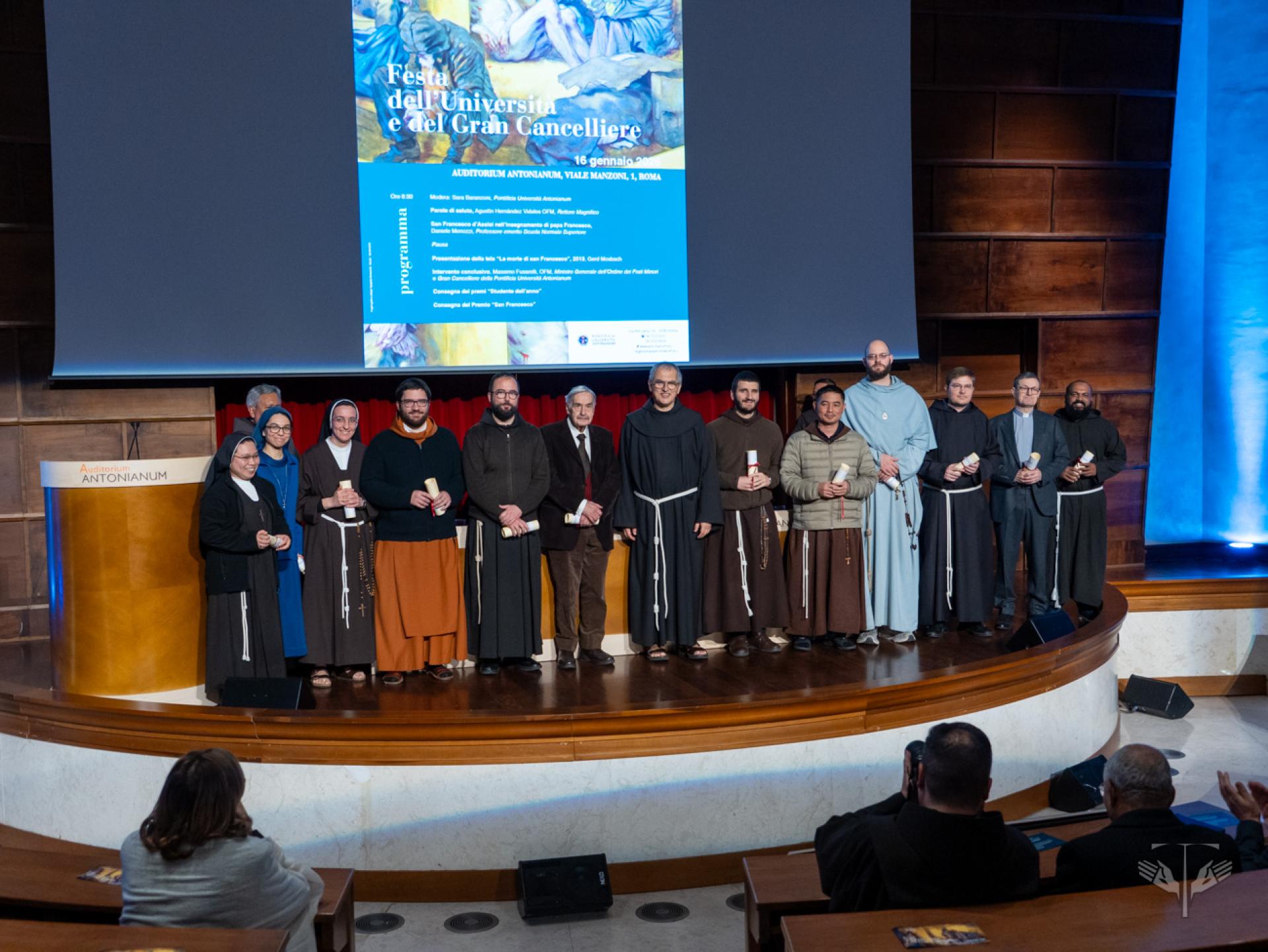 La giornata si è conclusa con la consegna dei premi “Studente dell’anno” a dottorandi in teologia, teologia fondamentale e spiritualità, istituiti grazie alla donazione di Fr. Vito Possetti, OFM, e con la proclamazione dei vincitori del Premio “San Francesco” per le opere di ricerca sulle fonti e sulla teologia francescana. I premiati hanno espresso gratitudine all’Antonianum, alle proprie fraternità e ai centri di studio che li sostengono, ricordando come il lavoro paziente sui testi sia un servizio alla Chiesa e alla Famiglia francescana.