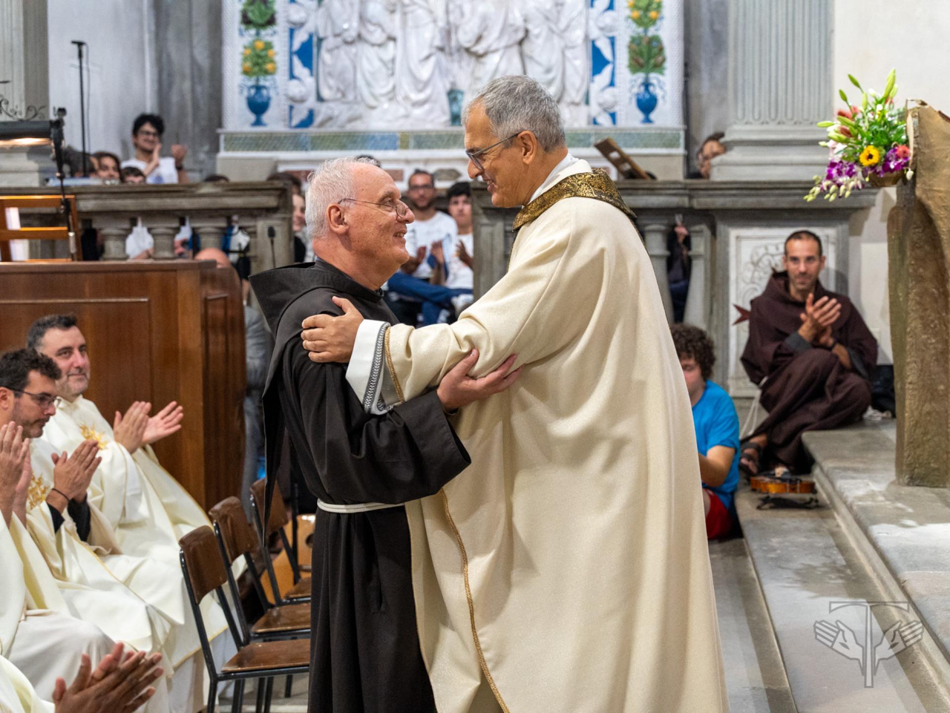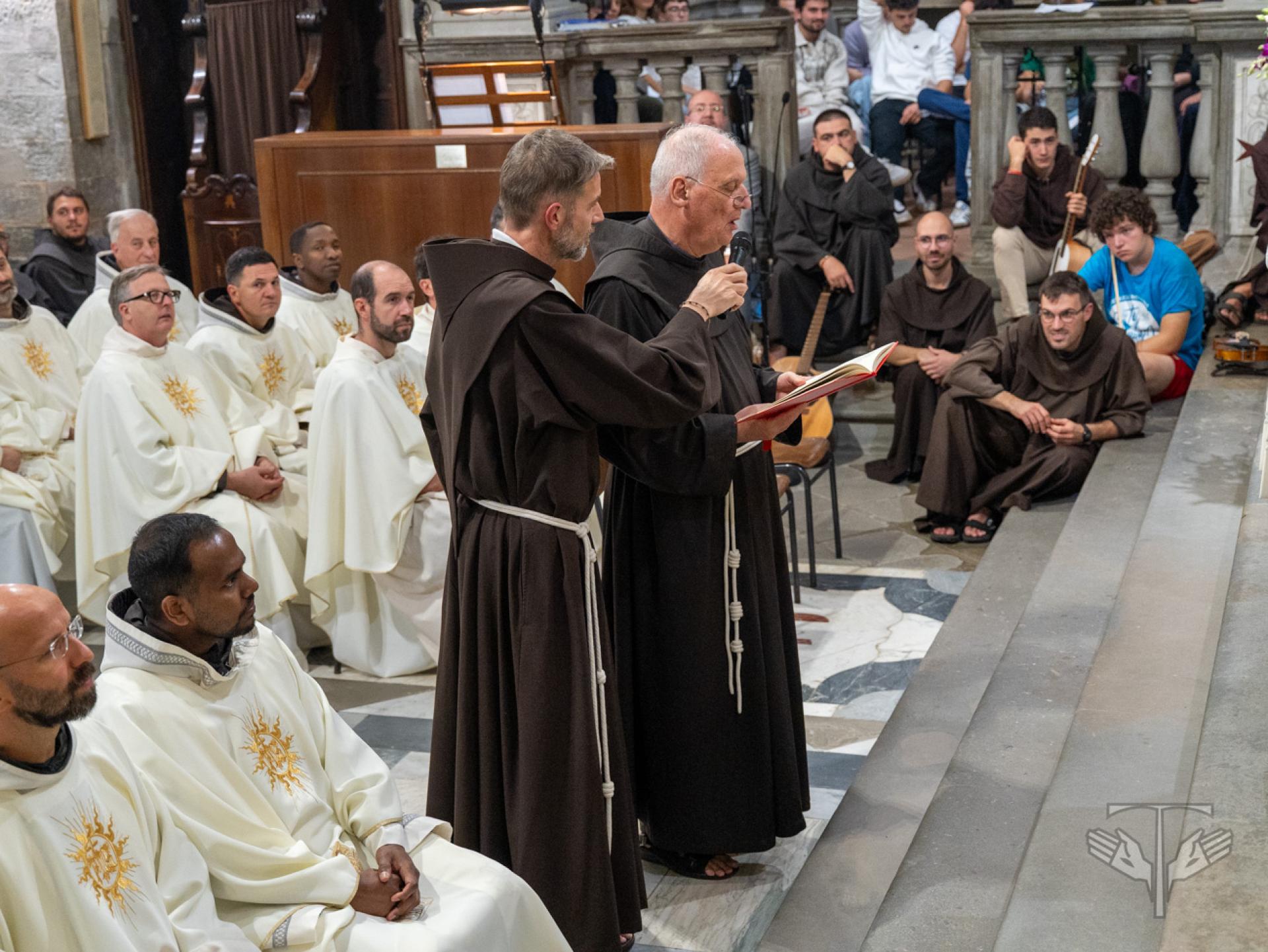 Alla fine dell'Eucaristia, il Ministro generale si è congratulato con Fr. Cesare Vaiani per i suoi 50 anni di professione e con sei frati polacchi che stanno celebrando il 25° anniversario di professione.