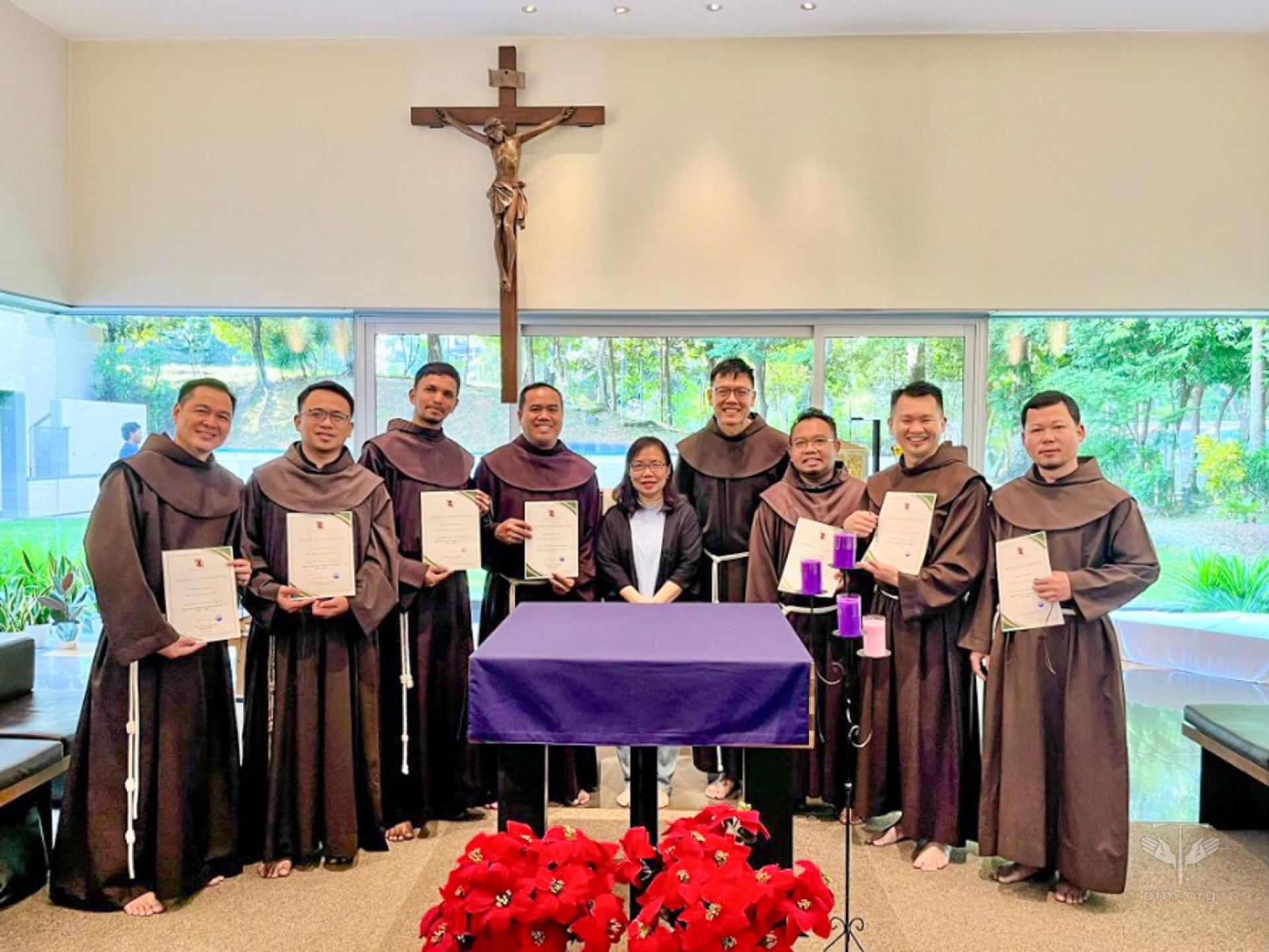 Dopo 9 mesi di cammino insieme, il 7 dicembre 2024 8 frati provenienti da tutta l’Asia hanno completato il primo programma AFFT - Asian Franciscan Formators Training. Fr. Derrick Yap, coordinatore del corso, ha consegnato i certificati di partecipazione durante la Messa di chiusura nel convento di Sant’Antonio, a Singapore, al termine del programma conclusivo di 2 settimane.
