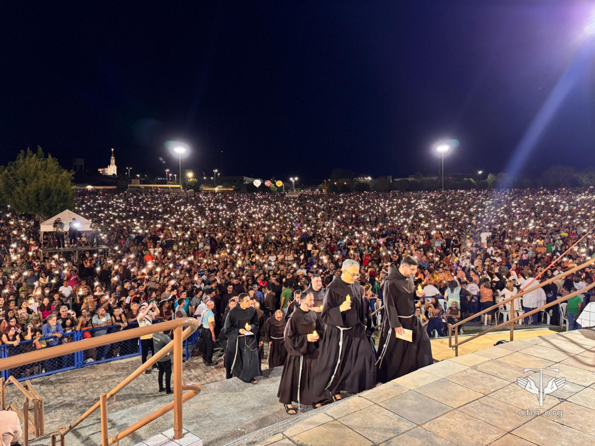 L'ultimo appuntamento del Ministro generale è stato quello di partecipare al Transito celebrato con migliaia di pellegrini nella Plaza Praça dos Romeiros. Fr. Massimo ha iniziato la sua omelia volendo parlare al cuore dei fedeli, anche se il suo portoghese era limitato, e ha sottolineato di essere venuto a Canindé “come pellegrino, non dimenticando le nostre ferite, ma affrontandole in modo diverso, credendo che il Signore cammina con il suo popolo”. Durante la sua riflessione, seguita con attenzione dai fedeli, Fr. Massimo ha anche ricordato le varie ferite presenti nel nord-est del Brasile: ha chiesto a tutti di presentarle a San Francesco e ha augurato “che le nostre ferite possano aprirsi a nuova vita, perché il Signore vuole questo per noi”.