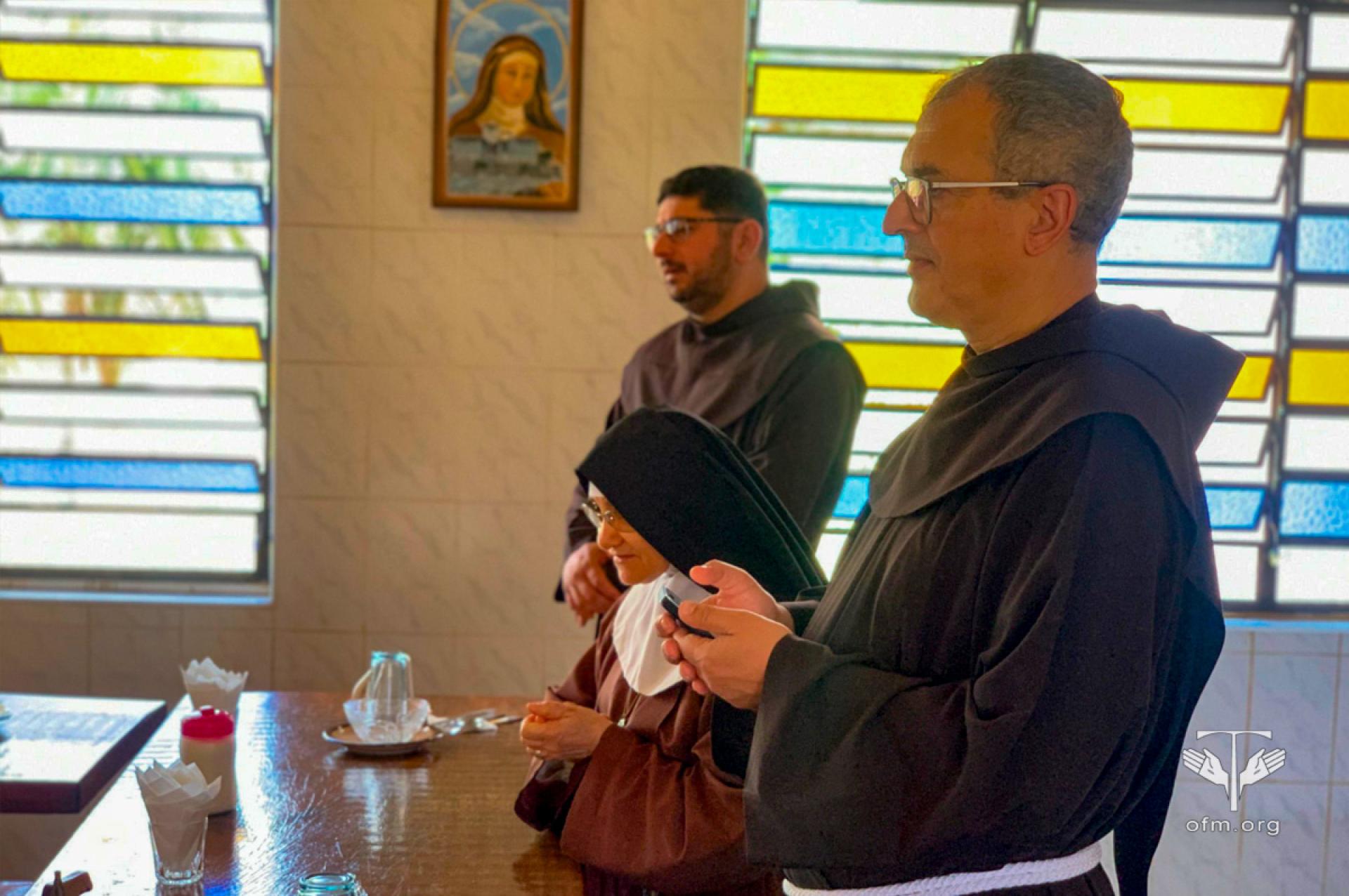 Giovedì mattina Fr. Massimo ha incontrato le Sorelle Clarisse ed ha presieduto l'Eucaristia, seguita da un caffè fraterno e da un lungo dialogo con le religiose, nel quale hanno condiviso le sfide e le speranze di vivere il carisma di Santa Chiara oggi. Il secondo incontro della mattinata si è svolto nel Convento di Sant'Antonio, con le novizie che hanno contribuito attivamente alla Festa di San Francesco. Hanno condiviso le loro realtà vocazionali e hanno ascoltato il discorso incoraggiante del Ministro.