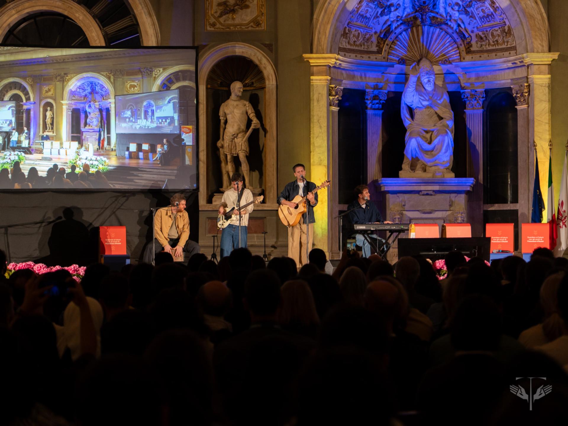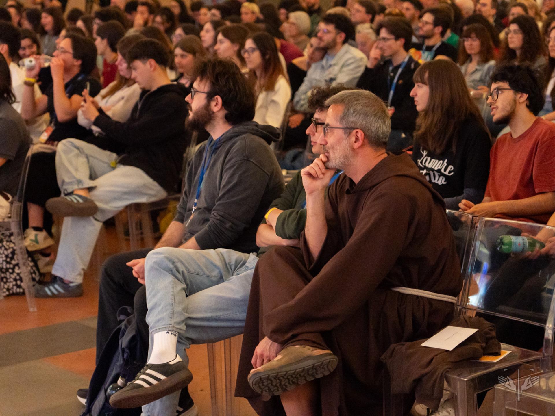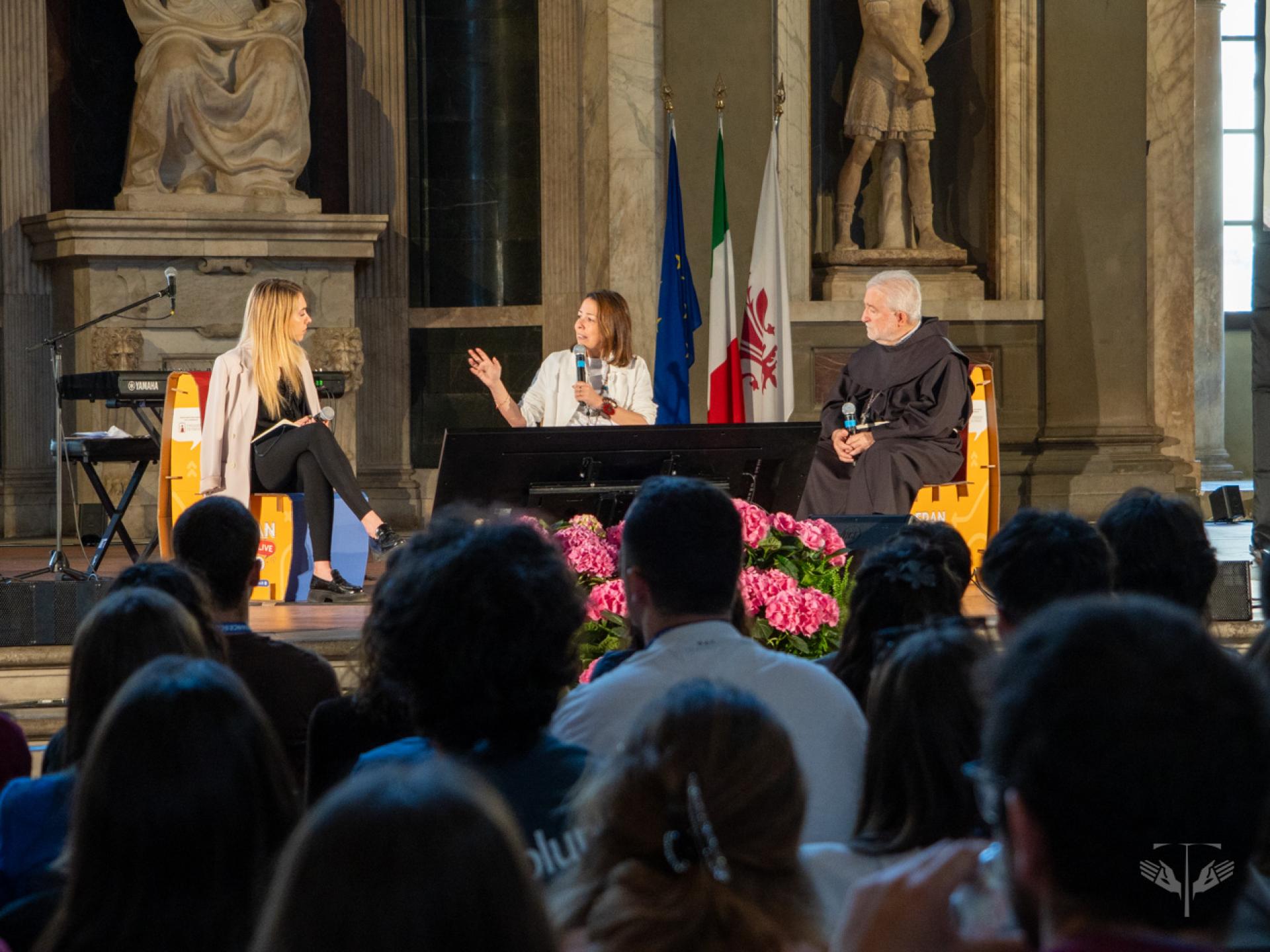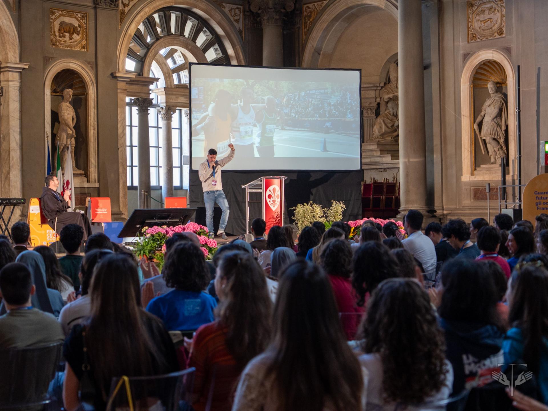 L’avvio del festival, nel Salone dei Cinquecento di Palazzo Vecchio, è stato segnato dall’intervento di Fr. Matteo Brena, OFM, che ha presentato la ricorrenza del centenario come un “transito” che invita a guardare, abitare e attraversare i limiti. A questo orizzonte si sono uniti i saluti istituzionali di Letizia Perini, assessora alle politiche giovanili, ed Eugenio Giani, presidente della Regione Toscana, sottolineando il legame tra la tradizione di pace della regione e l’ispirazione francescana. Nello stesso contesto, la parola di Fr. Roberto Pasolini, OFMCap, predicatore della Casa Pontificia, ha aiutato a smontare l’idea che il limite sia solo sconfitta, mentre la presenza musicale di Eugenio in Via Di Gioia ha offerto un linguaggio di bellezza e di cura del creato, capace di unire riflessione e festa.