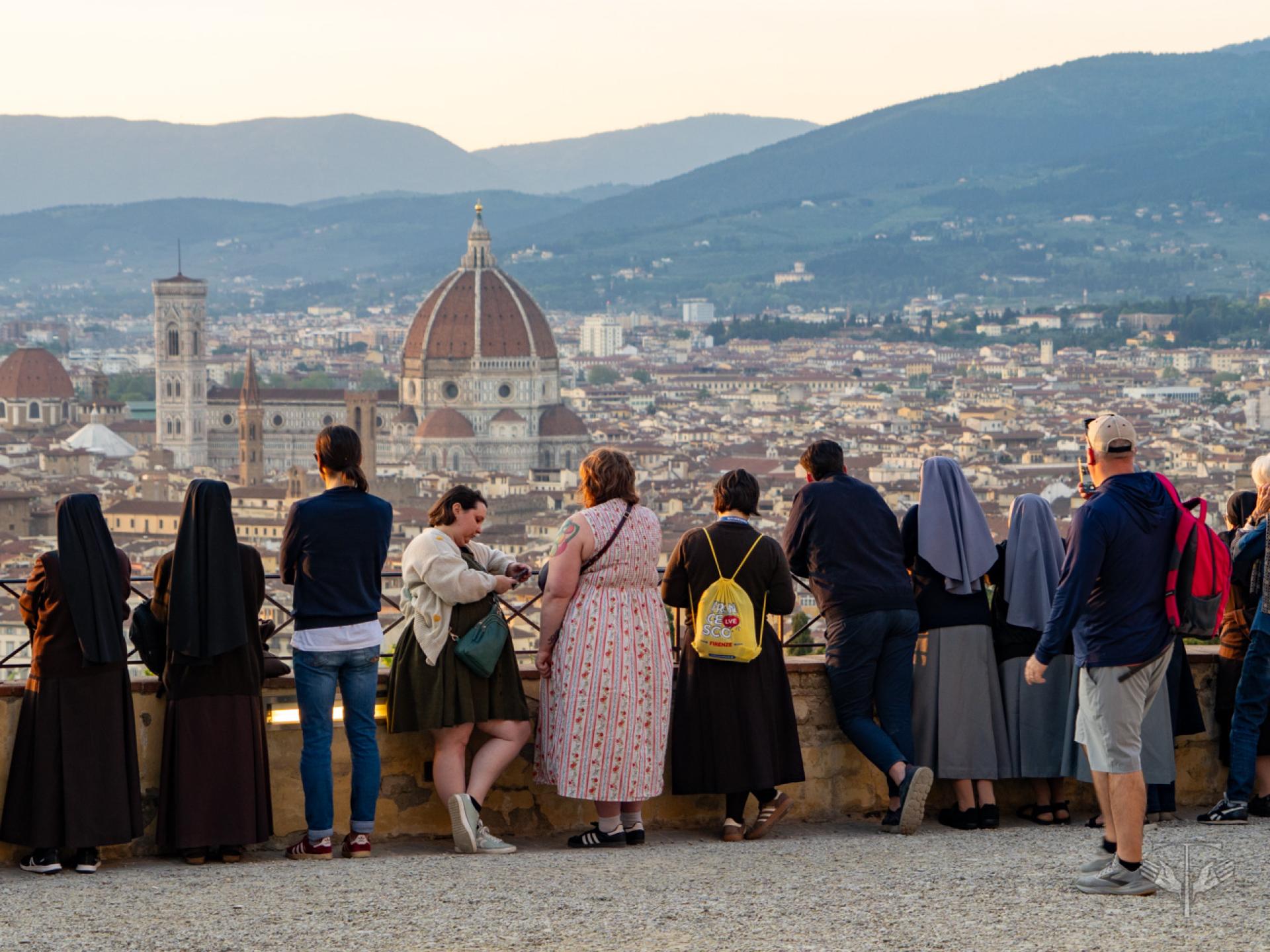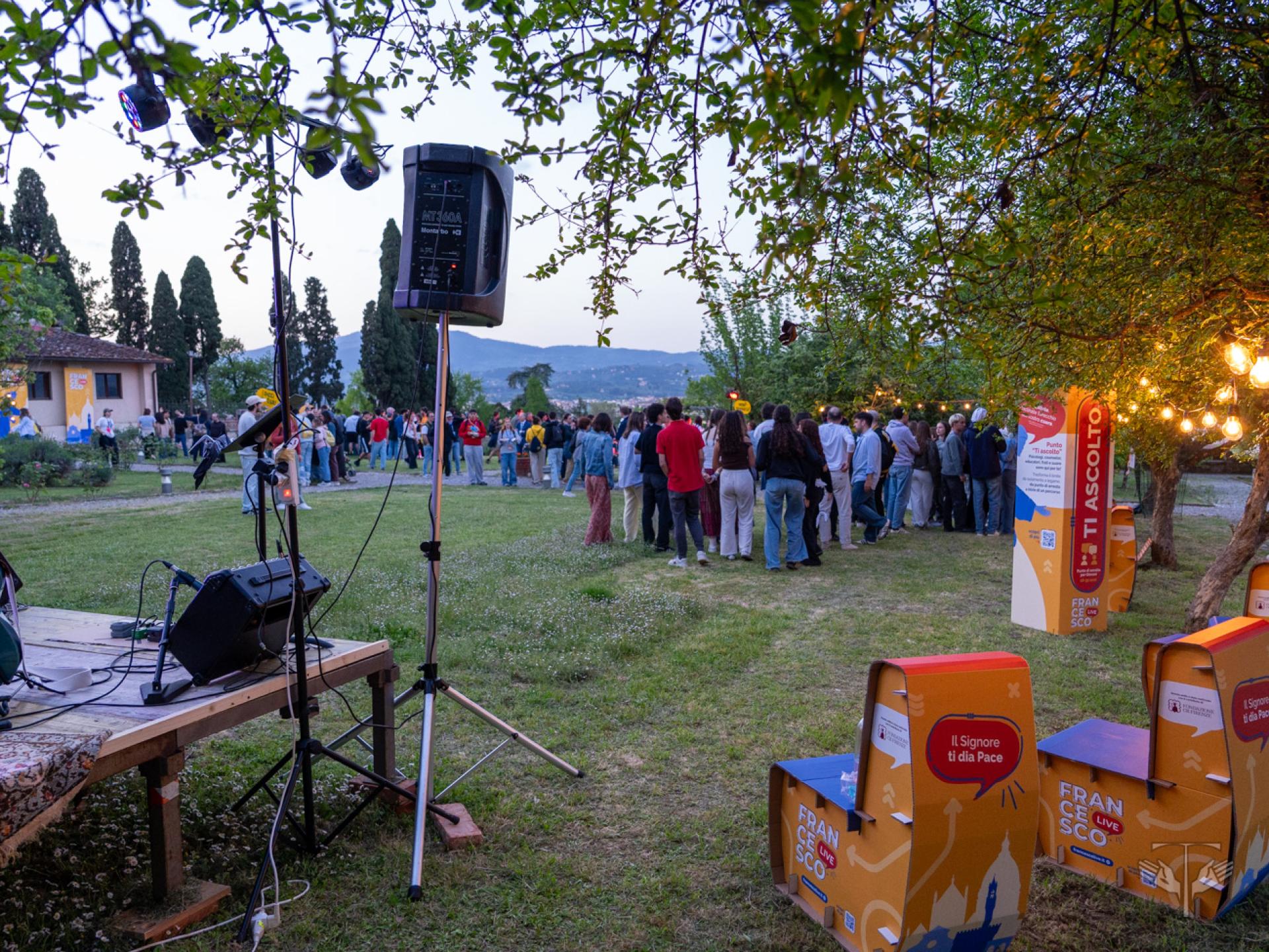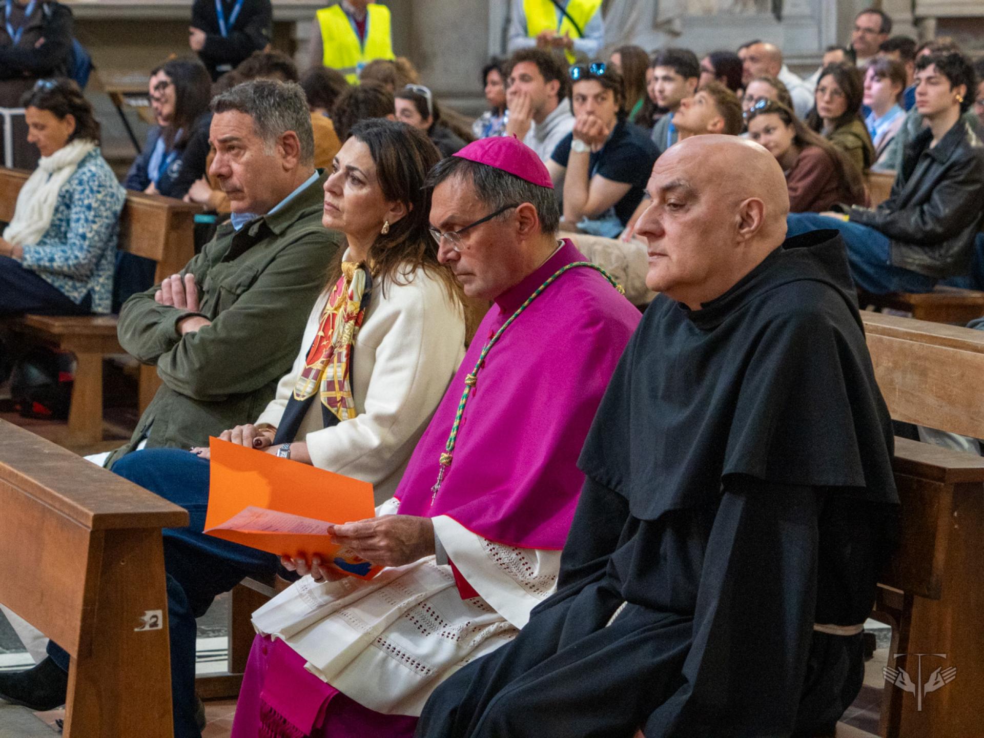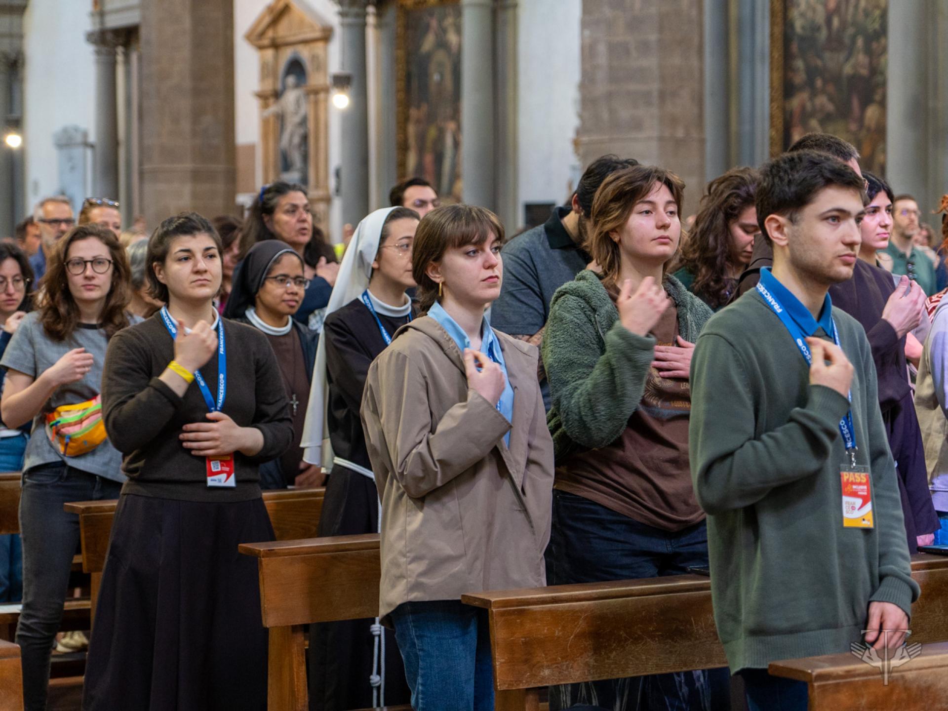 Nel tessuto urbano di Firenze, intanto, sono rimasti aperti i punti “Ti ascolto” tra Piazza della Signoria, San Firenze e Santa Croce, con la presenza di frati, religiose, psicologi e counselor, offrendo uno spazio perché le ferite del cuore e della mente potessero essere accolte. Si è svolta inoltre un’invocazione per la pace sulla scalinata di San Miniato al Monte, con la partecipazione di realtà come Rondine Cittadella della Pace, la Fondazione Giovanni Paolo II, la Pastorale Giovanile dell’Arcidiocesi di Firenze e il Centro La Pira. In questo stesso orizzonte si sono ascoltate le testimonianze di giovani provenienti da terre ferite dalla guerra.