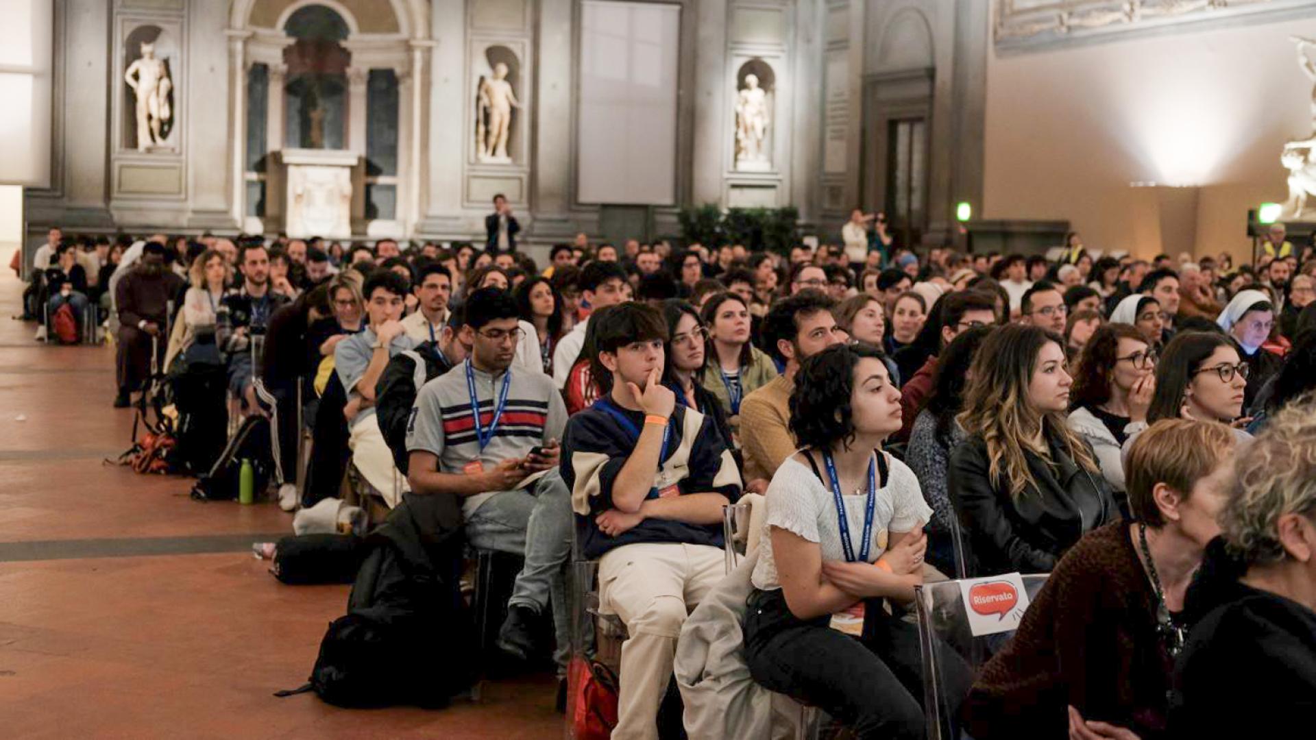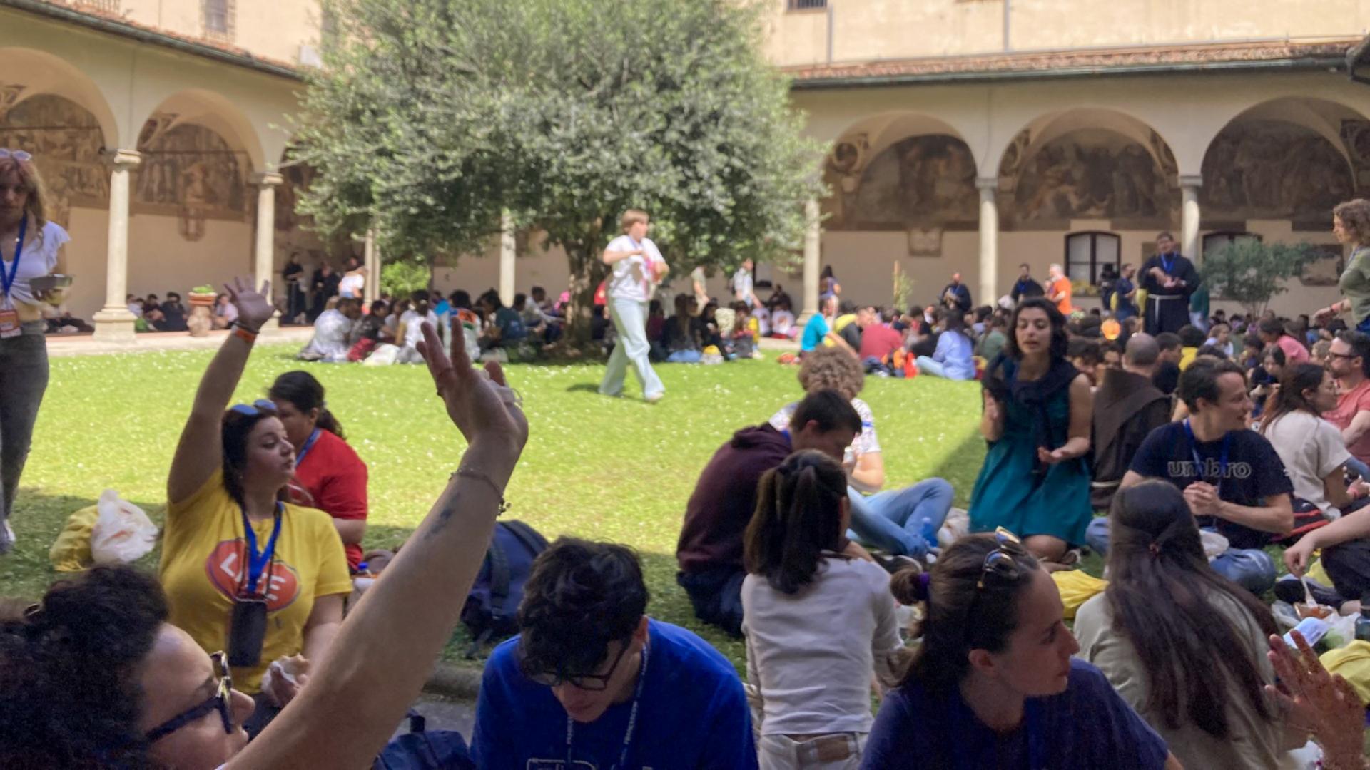 Venerdì 12, nella Basilica di Santa Croce, si è tenuto l’incontro in plenaria sull’Ecologia integrale, dove i giovani hanno potuto approfondire la tematica grazie alla presenza del prof. Stefano Mancuso, docente presso l’Università di Firenze, fondatore della neurobiologia vegetale, membro dell’Accademia dei Georgofili e direttore scientifico del Pianeta Terra Festival; della prof.ssa Chiara Giaccardi, docente di sociologia presso l’Università Cattolica di Milano che si occupa di processi comunicativi e trasformazioni culturali; del giovane attivista Giorgio Brizio, 22 anni, che da quattro anni si occupa di crisi climatica e migrazioni portando avanti battaglie politiche e opere di sensibilizzazione.