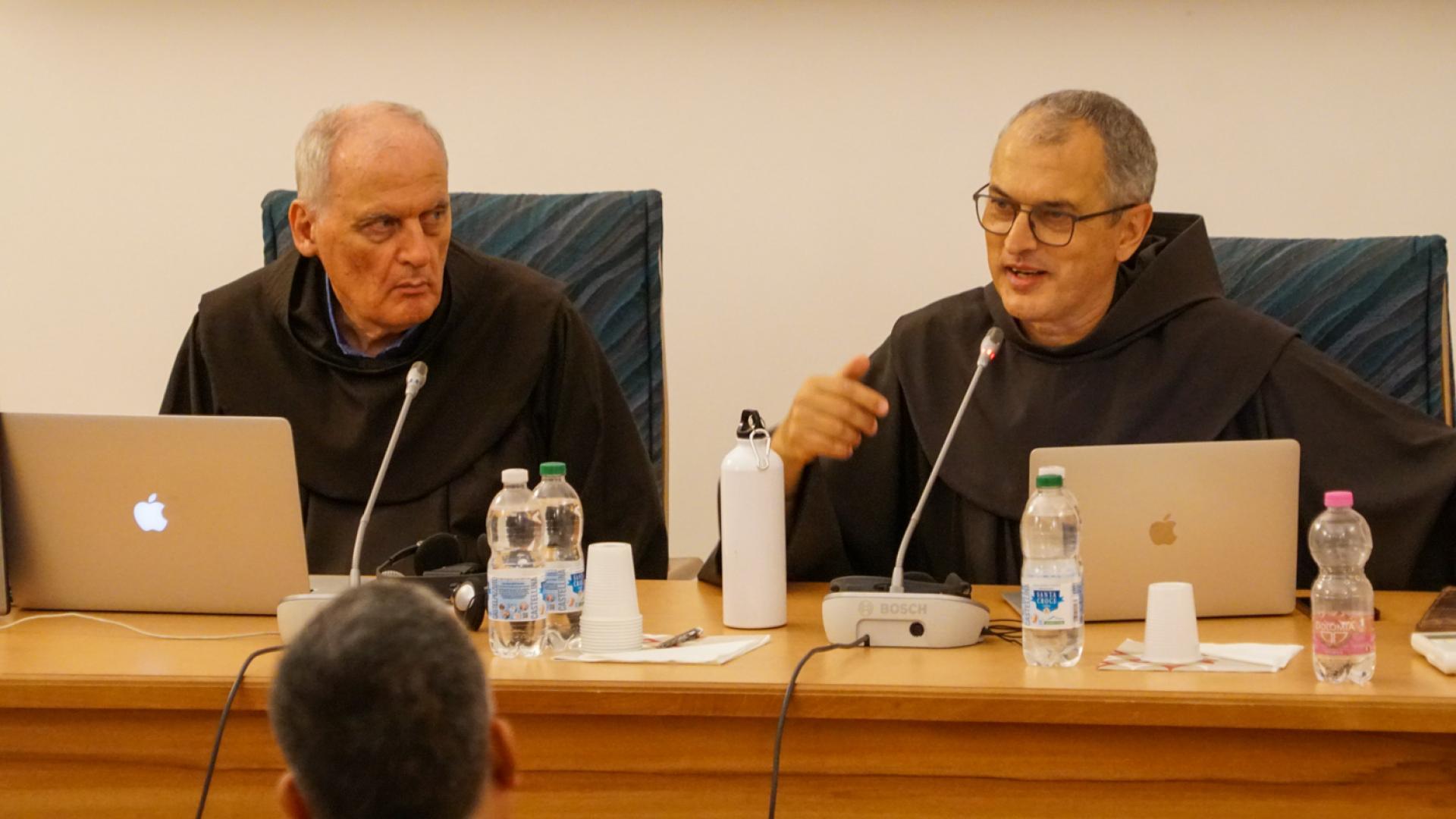 Sul tema dell’unione delle Conferenze, il Ministro generale, Fr. Massimo Fusarelli, ha fatto una panoramica storica del ruolo che le Conferenze hanno avuto, e hanno tuttora, all’interno della struttura dell’Ordine. Ha sottolineato soprattutto che le Conferenze, al di là della loro forza giuridica, devono essere uno spazio di vita che sostiene i Ministri e il governo dell’Ordine nel loro compito di animazione dei frati. Ha sottolineato anche, sebbene l’origine di questo processo di unione sia stata la minorità imposta dalla riduzione dei frati e delle province, che noi frati dobbiamo vivere questo momento come un “kairos”, un momento significativo, un’opportunità, uno spazio di grazia attraverso il quale collaborare alla vocazione e alla missione a cui il Signore ci ha chiamati all’interno dell’Ordine.