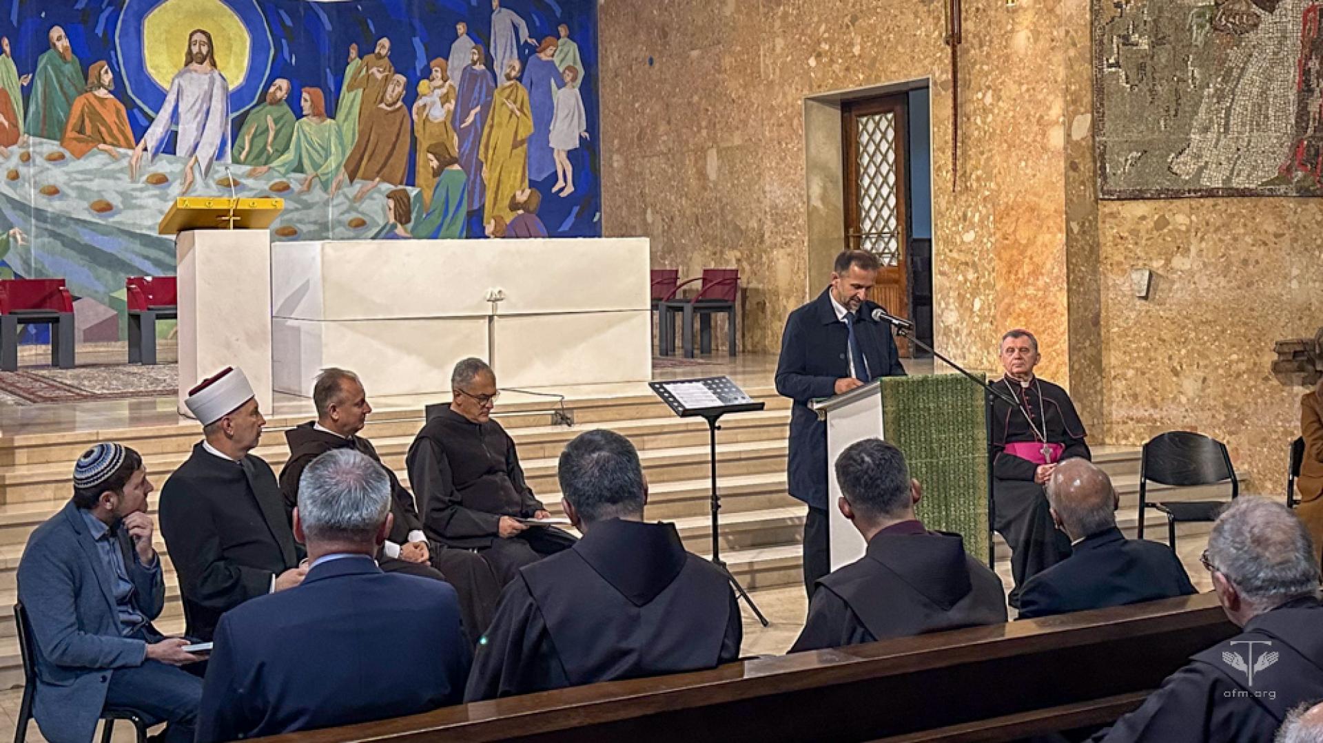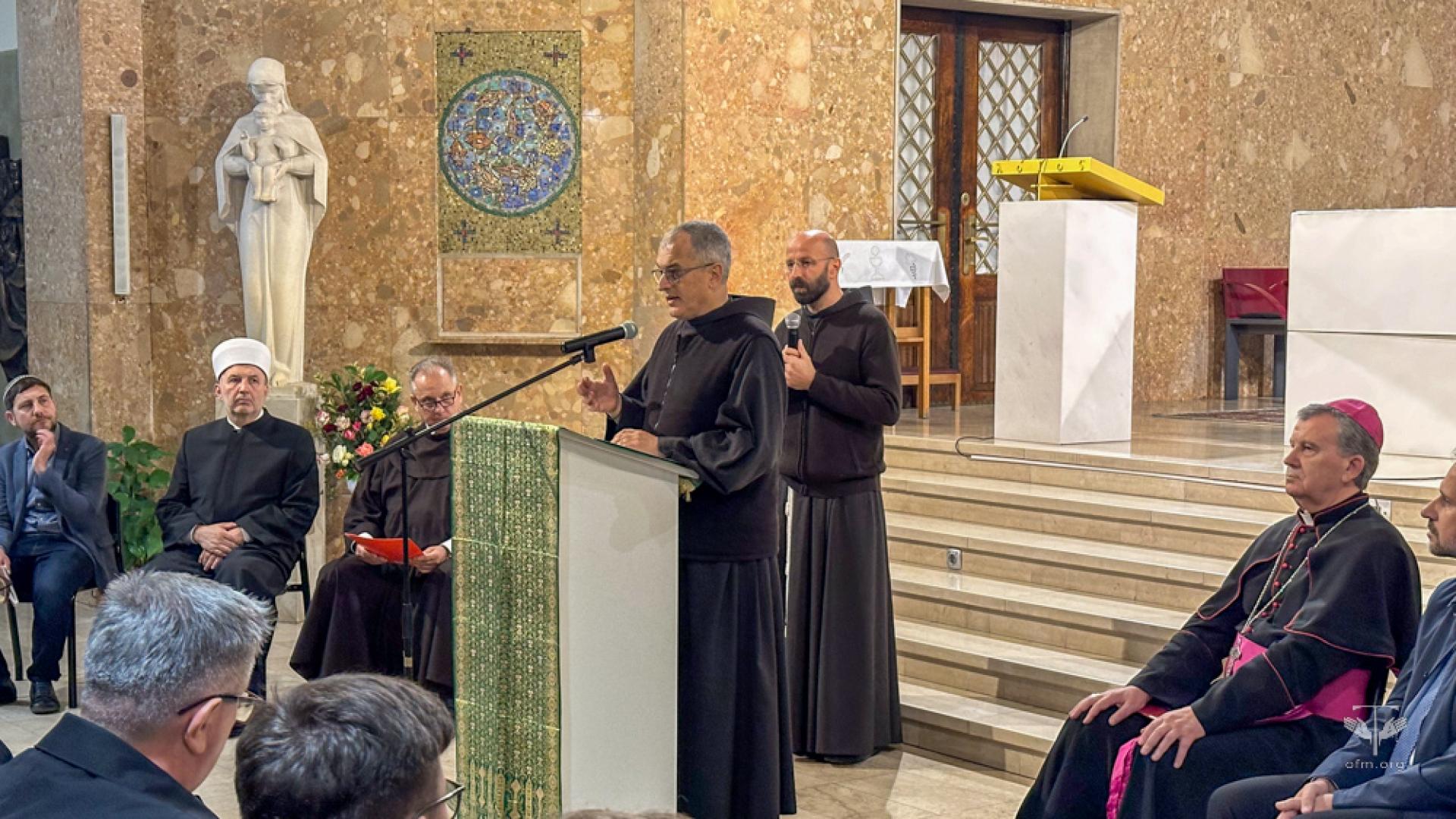 Fr. Ivan ha dato il benvenuto ai rappresentanti delle comunità religiose, oltre che ai rappresentanti della vita sociale, politica e culturale del nostro Paese. Nel suo discorso, ha sottolineato come le guerre in Medio Oriente e in Ucraina, insieme ai conflitti su molti campi di battaglia dimenticati in tutto il mondo, rappresentino profonde sconfitte per l’umanità e per i credenti di fronte al male. Ha descritto questo incontro interreligioso in Bosnia ed Erzegovina come un atto di responsabilità e un invito a tutti i fedeli a pregare e a impegnarsi attivamente per la pace e la comprensione. Ha rivolto un saluto speciale a Fr. Massimo Fusarelli, ringraziandolo per la sua presenza e invitandolo a rivolgere un saluto ai presenti. Fr. Massimo ha sottolineato che la preghiera per la pace è una vocazione fondamentale per ogni uomo, e in modo speciale per noi francescani, sull’esempio di San Francesco d’Assisi.