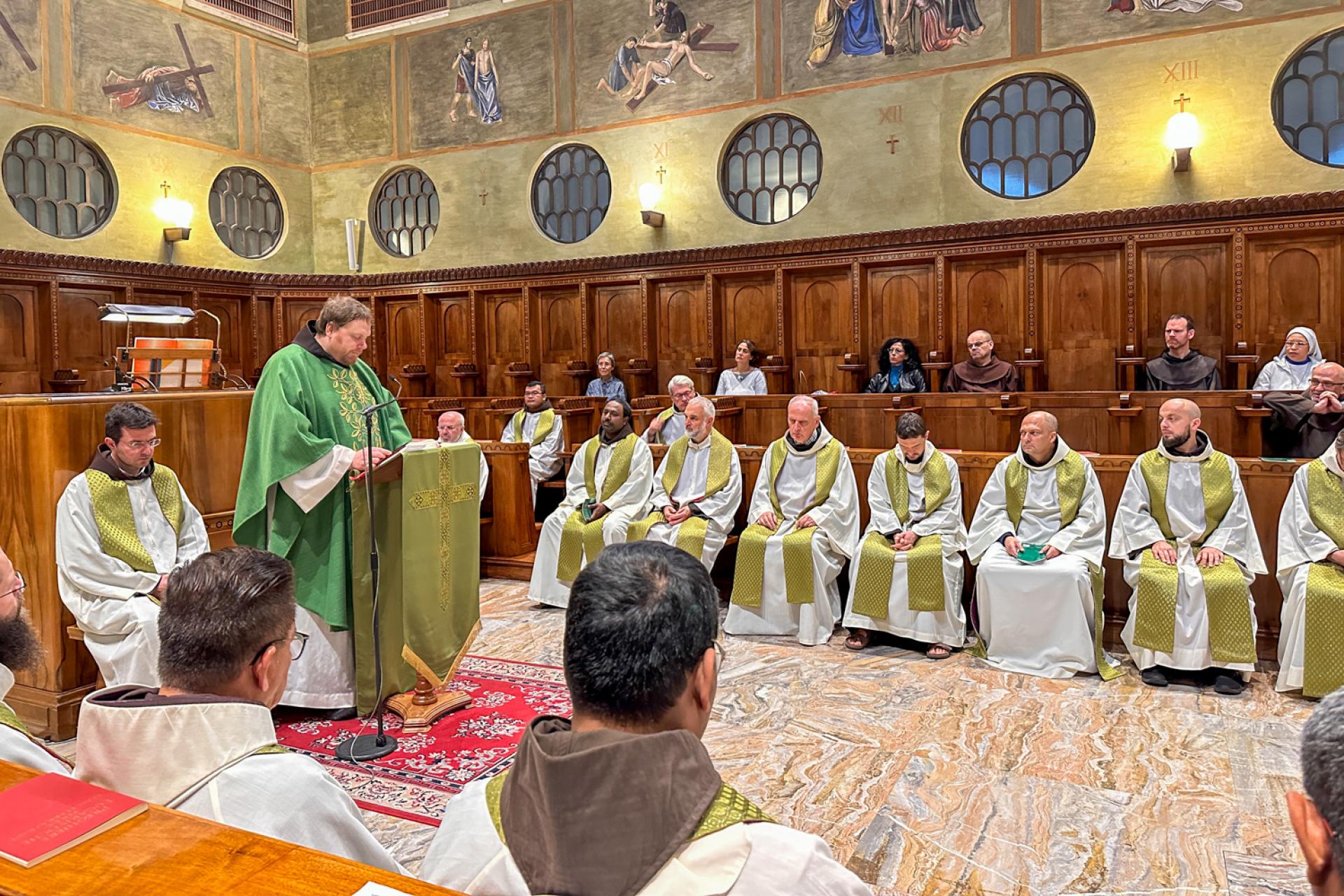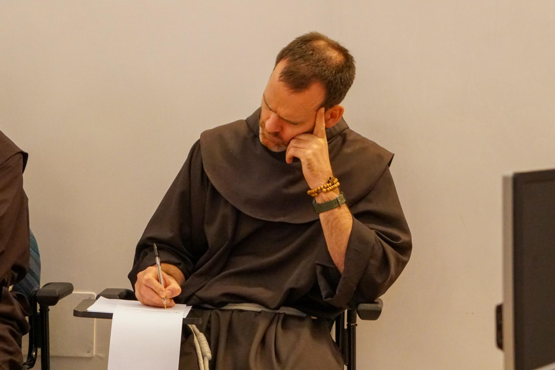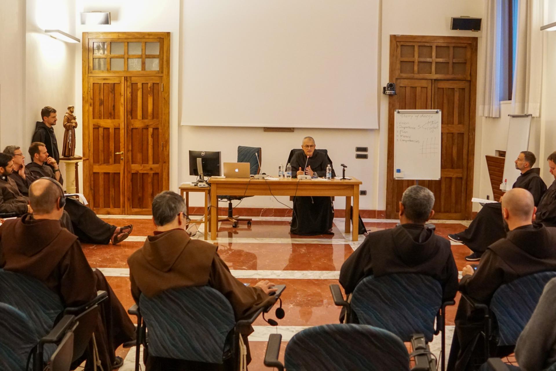 La mattina di mercoledì 8 novembre Fr. Alessandro Ciamei ha tenuto una relazione circa “Le nostre relazioni fraterne relativamente all’Evangelizzazione”, indicando come siano le stesse relazioni, vissute a partire dalla condivisione del progetto di vita ispirato alla Regola, a diventare il modo dell’Evangelizzazione delle nuove realtà. A seguire è stato interessante ascoltare, nella condivisione per gruppi linguistici, le gioie e le difficoltà nel rapporto tra i frati che portano un desiderio di rinnovamento e le proprie Province di appartenenza.