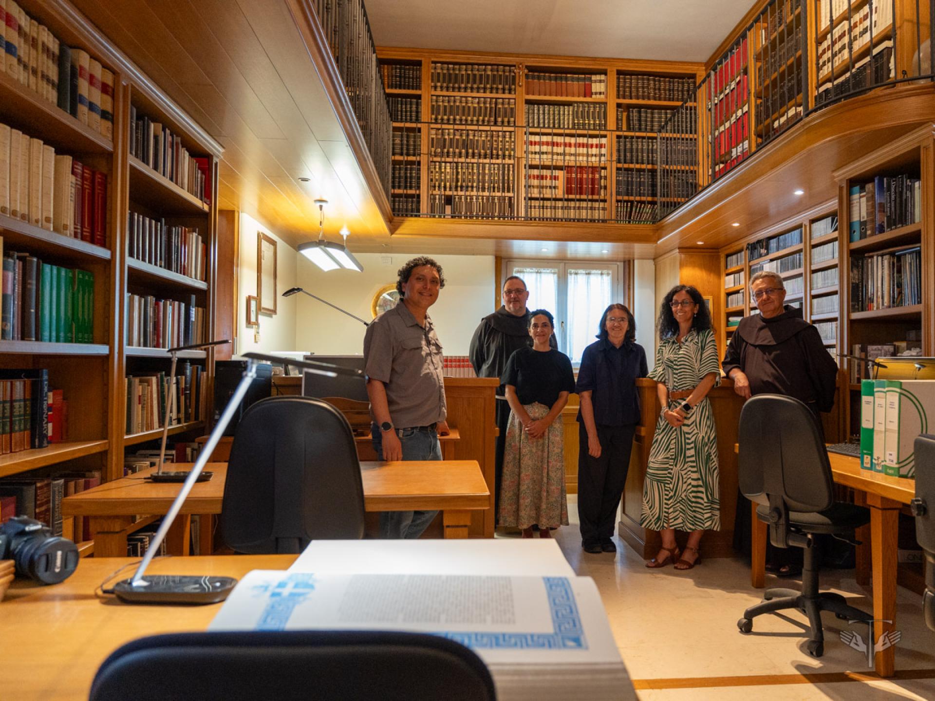 Entrando si viene accolti nella sala studio, che ogni anno riceve centinaia di studiosi – frati, religiosi, ricercatori laici, professori e dottorandi – provenienti da tutto il mondo. L’oggetto delle loro ricerche non sempre è a sfondo religioso: alcuni, ad esempio, attraverso i documenti possono ricostruire l’evoluzione della propria lingua natìa; altri sono interessati all’urbanistica o all’architettura di determinate parti del mondo; altri ancora cercano… l’alimentazione tipica dei frati in un determinato contesto storico e geografico!
