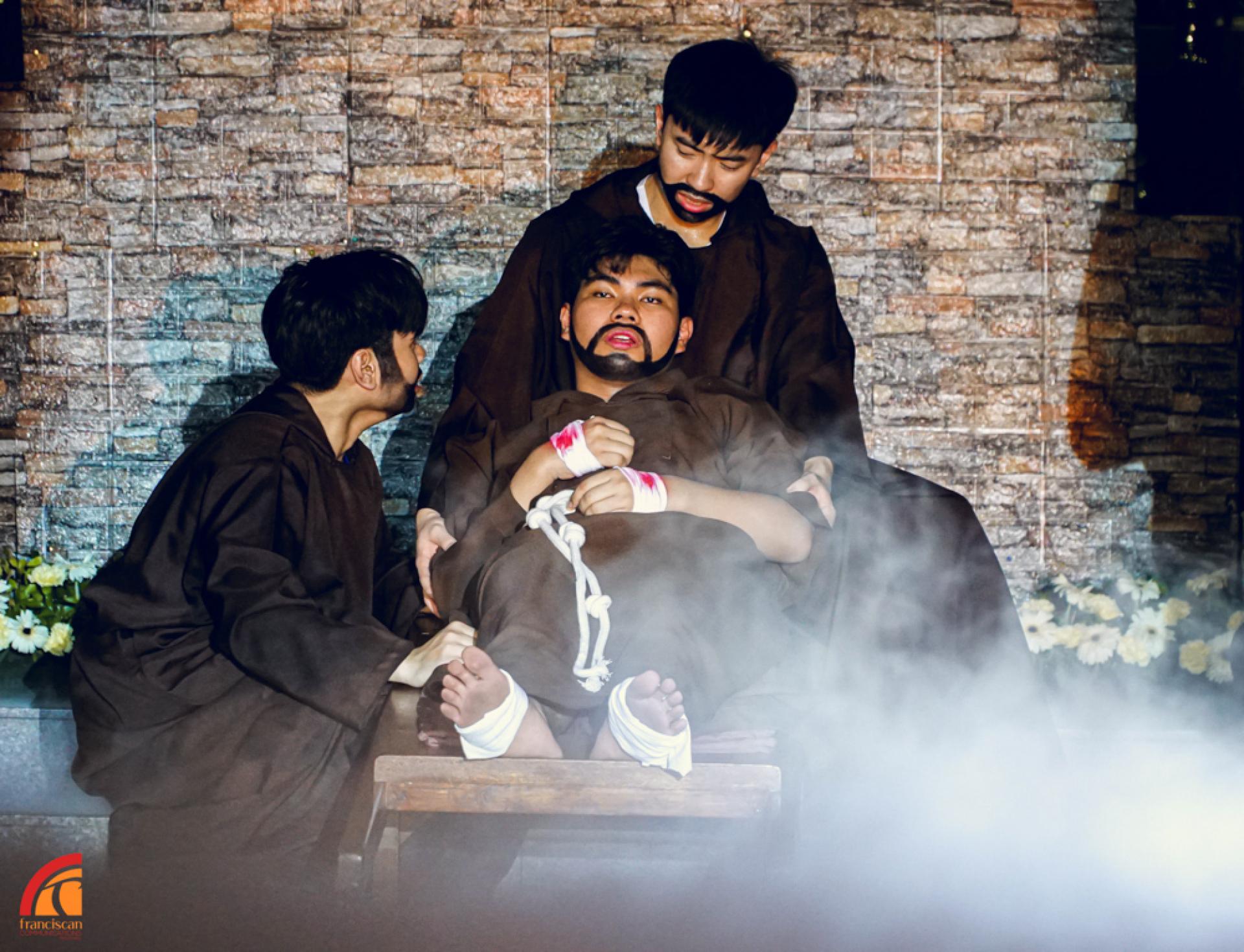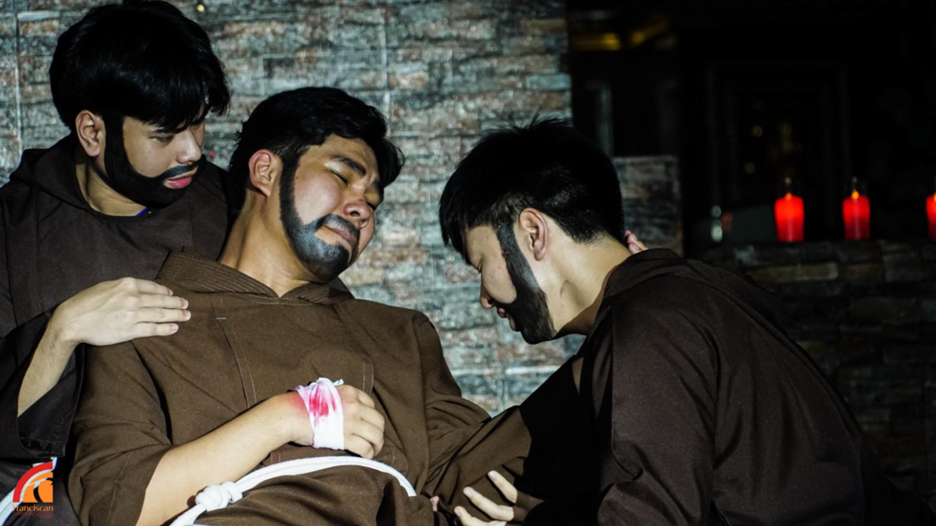 Gli studenti della Lourdes School di Mandaluyong hanno poi rievocato teatralmente il Transito, iniziando dal viaggio di Francesco alla Porziuncola e terminando con il suo abbraccio a Sorella Morte e al Cristo Crocifisso.