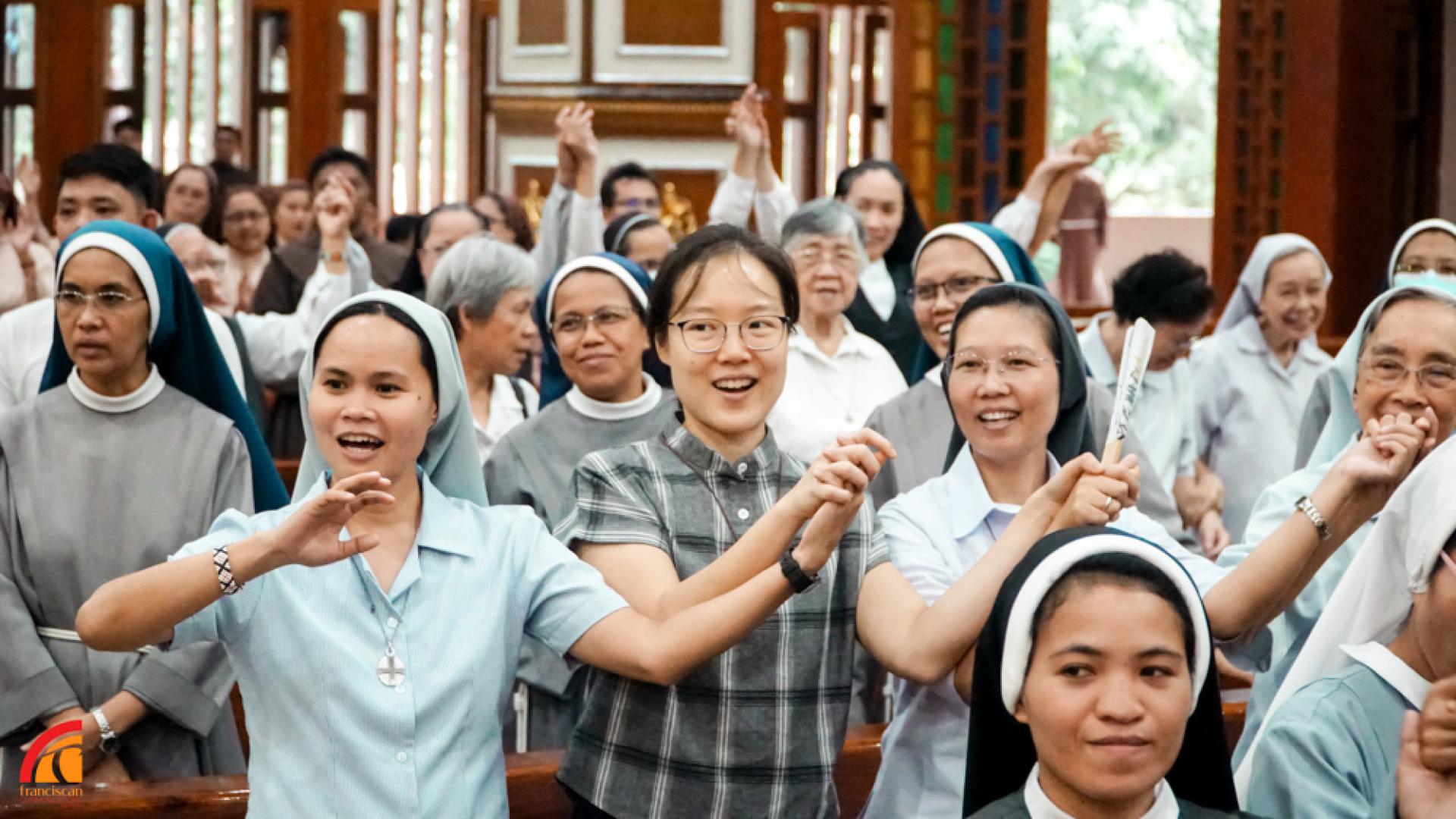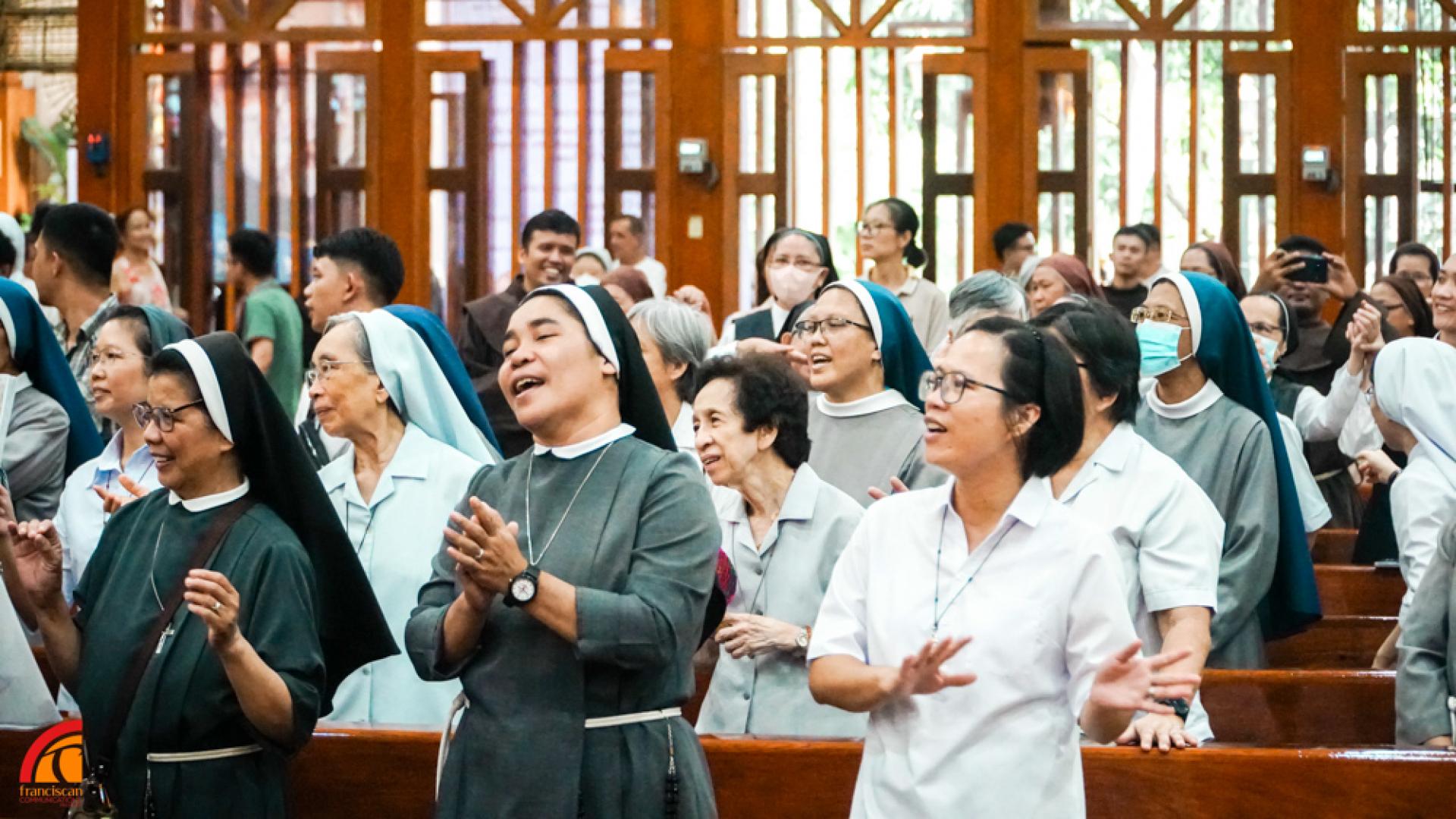 La celebrazione ha preso inizio con la presentazione delle varie comunità religiose e delle fraternità OFS. È seguito un breve discorso sul tema “Rallegratevi, pregate incessantemente, rendete grazie in ogni circostanza: emulare la vita esemplare di San Francesco” di Fr. Christopher Dominic Lim, OFMConv, Presidente dell’IFMC, che ha sottolineato che la preghiera è un dono di Dio. La partecipazione attiva alla liturgia non significa solo rispondere durante la celebrazione, ma che le nostre stesse vite dovrebbero essere una preghiera. Ha incoraggiato tutti i francescani presenti a fare della preghiera parte della propria vita quotidiana.
