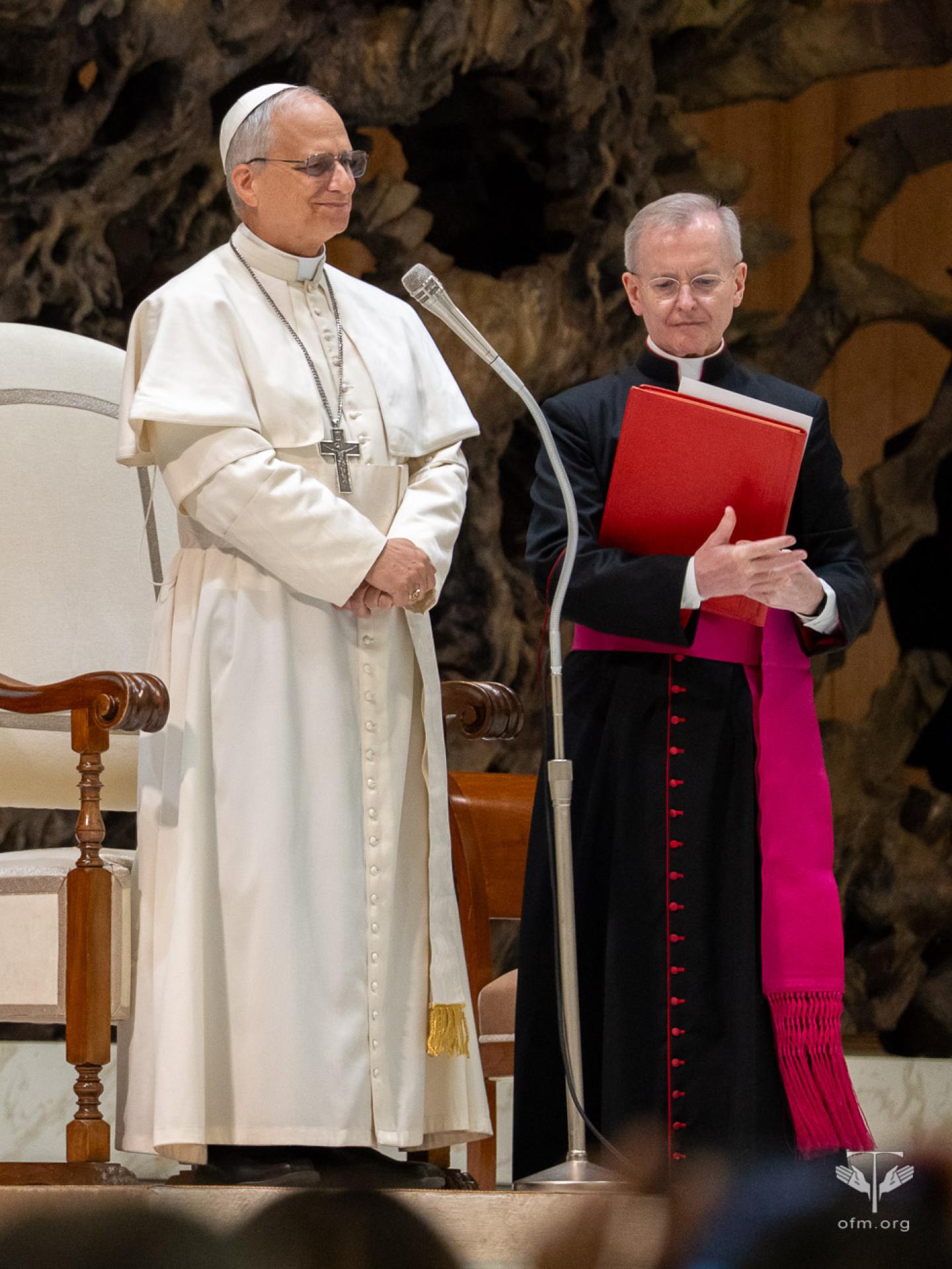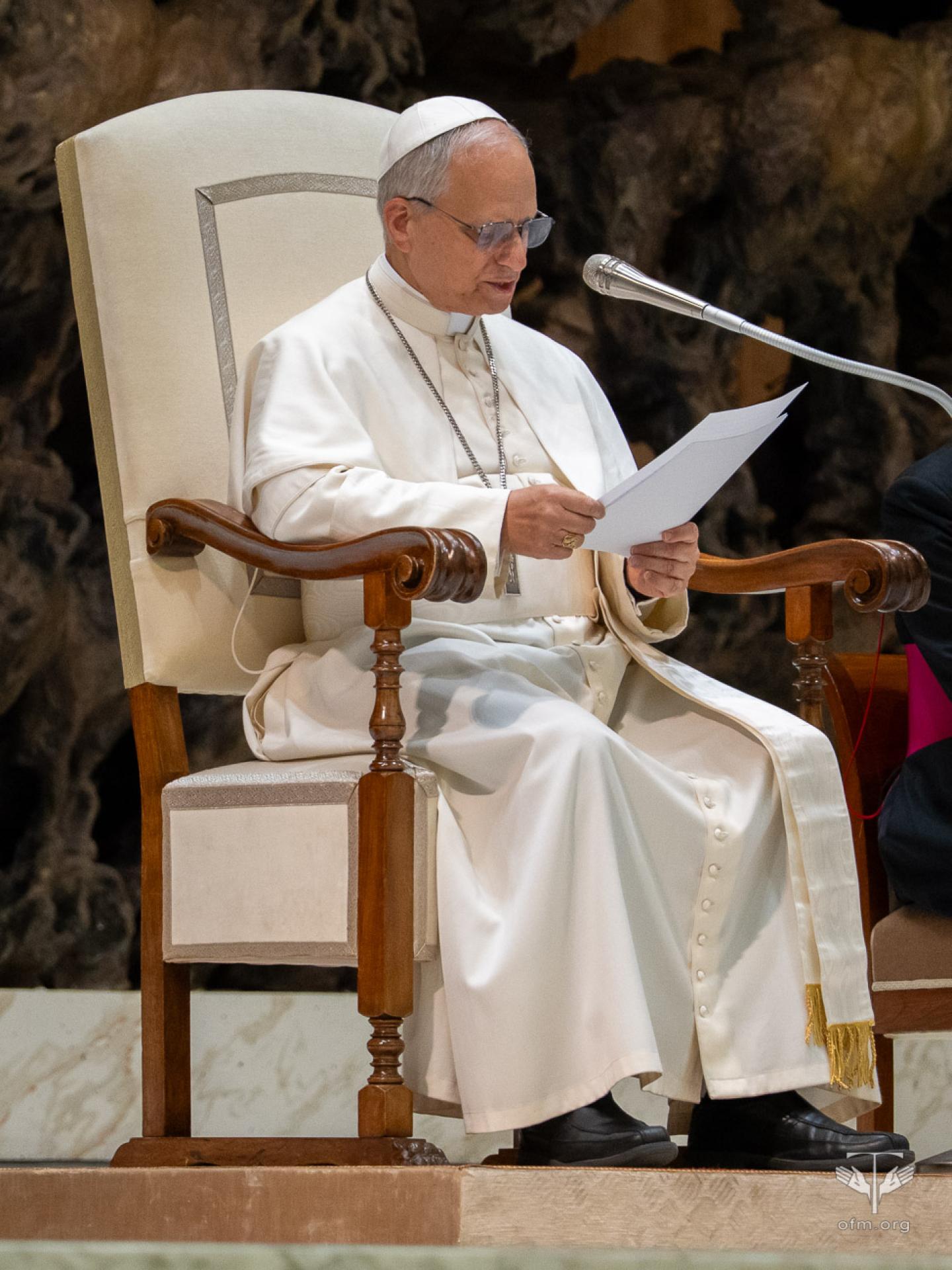 Riprendendo il brano delle Beatitudini e nello specifico gli operatori di pace (Mt 5,9), Papa Leone ha invitato tutti i presenti a sentirsi “sfidati” da questa parola, in quanto chiama “ciascuno all’impegno di portare avanti una comunicazione diversa, che non ricerca il consenso a tutti i costi, non si riveste di parole aggressive, non sposa il modello della competizione, non separa mai la ricerca della verità dall’amore con cui umilmente dobbiamo cercarla. La pace comincia da ognuno di noi […]: dobbiamo respingere il paradigma della guerra”.
