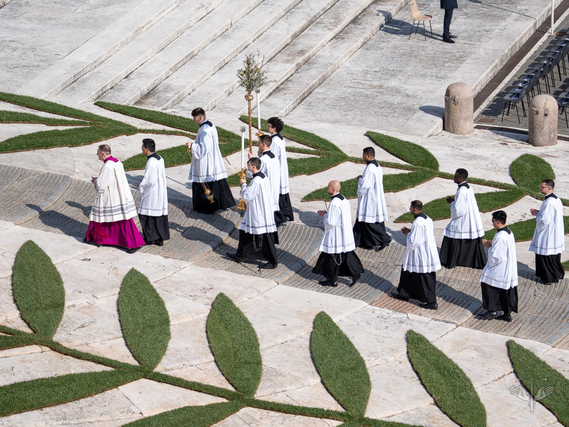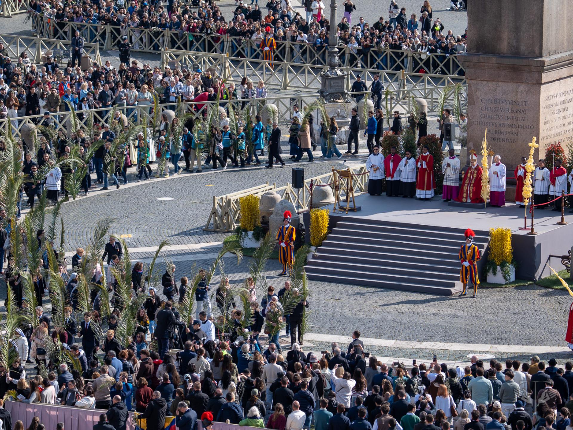 Domenica 29 marzo alle ore 10.00, in Piazza San Pietro, la Chiesa ha aperto la Settimana Santa con la Commemorazione dell’ingresso del Signore in Gerusalemme. Davanti all’Obelisco, è stato proclamato il Vangelo dell’entrata di Gesù in Gerusalemme e si è svolta la benedizione delle palme; quindi la processione ha accompagnato i fedeli verso l’altare per la celebrazione dell’Eucaristia.