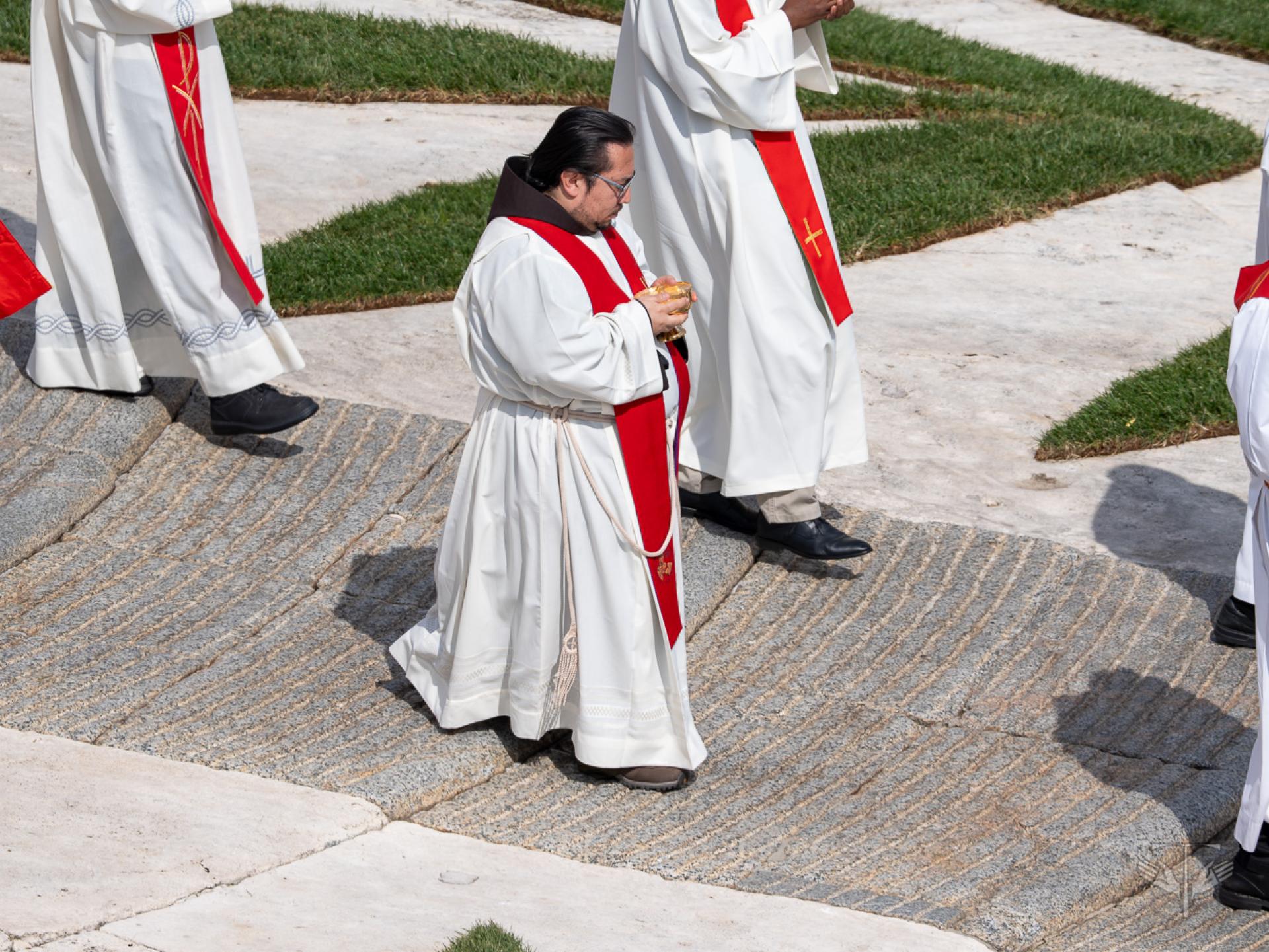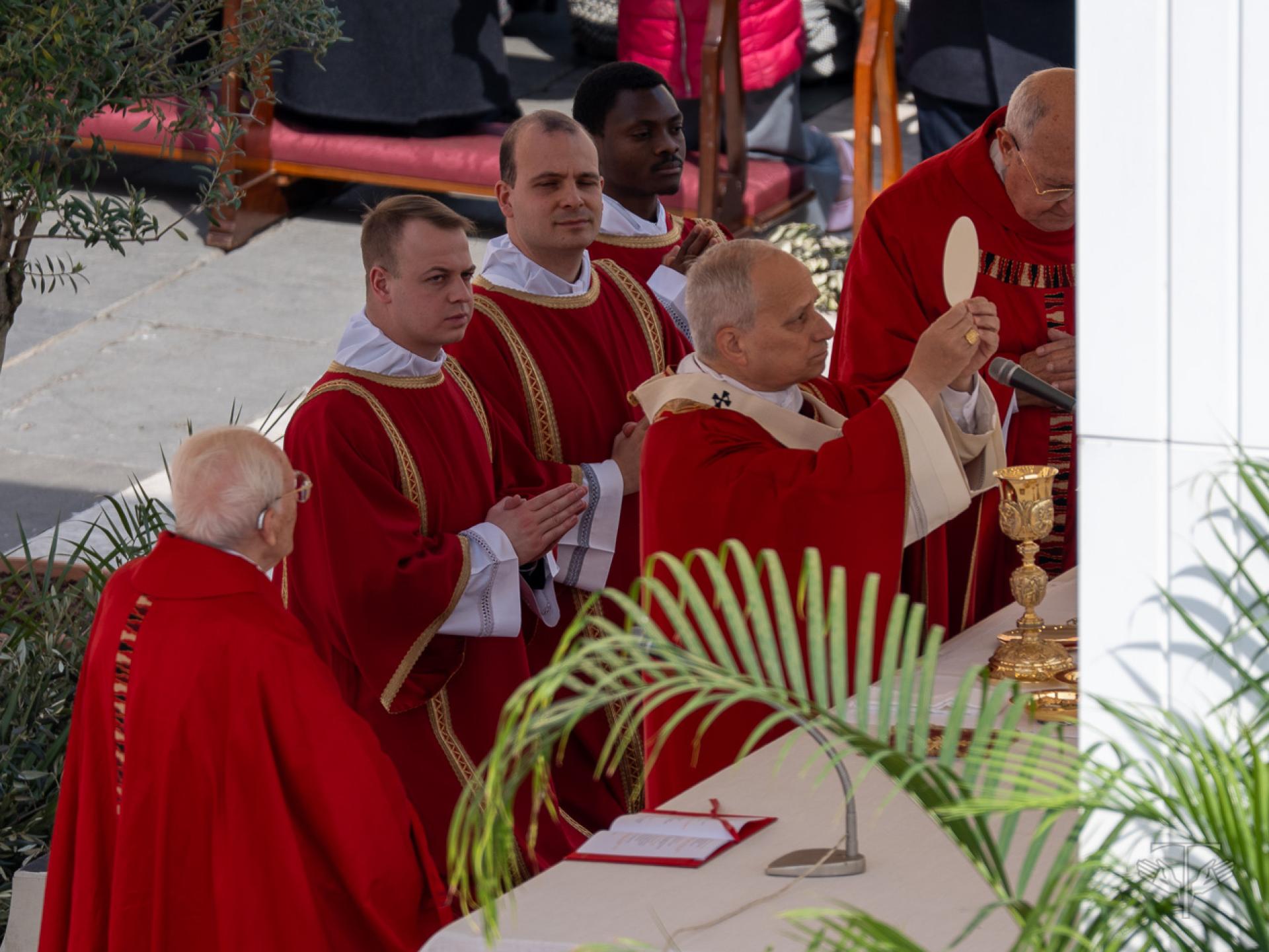 L’omelia ha poi contemplato la Passione come rivelazione della mitezza di Dio: Gesù, “caricato delle nostre sofferenze e trafitto per le nostre colpe”, “non aprì la sua bocca” e, invece di salvarsi, “si è lasciato inchiodare alla croce”, per abbracciare “tutte le croci piantate in ogni tempo e luogo nella storia dell’umanità”. Da qui l’appello che attraversa la celebrazione: “Cristo, Re della pace, grida ancora dalla sua croce: Dio è amore! Abbiate pietà! Deponete le armi, ricordatevi che siete fratelli!”.